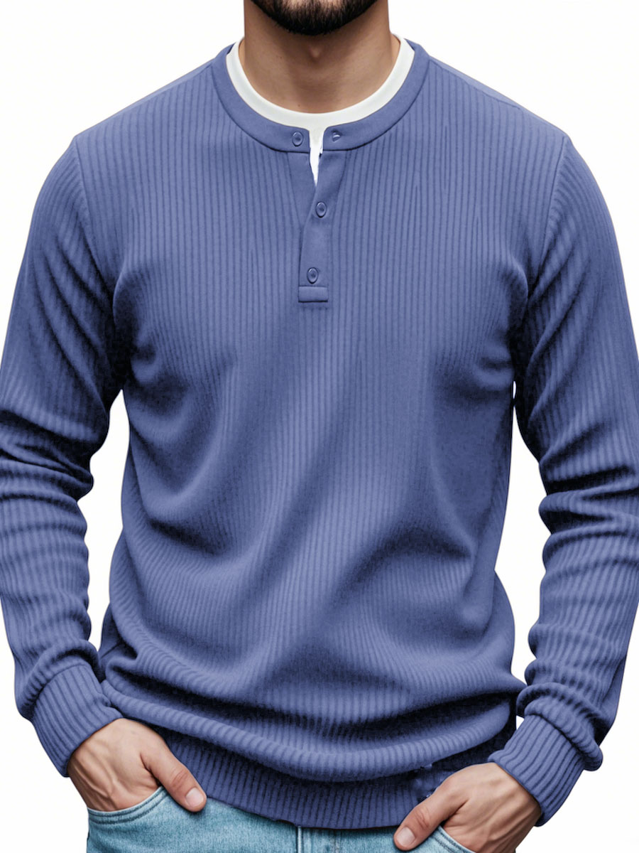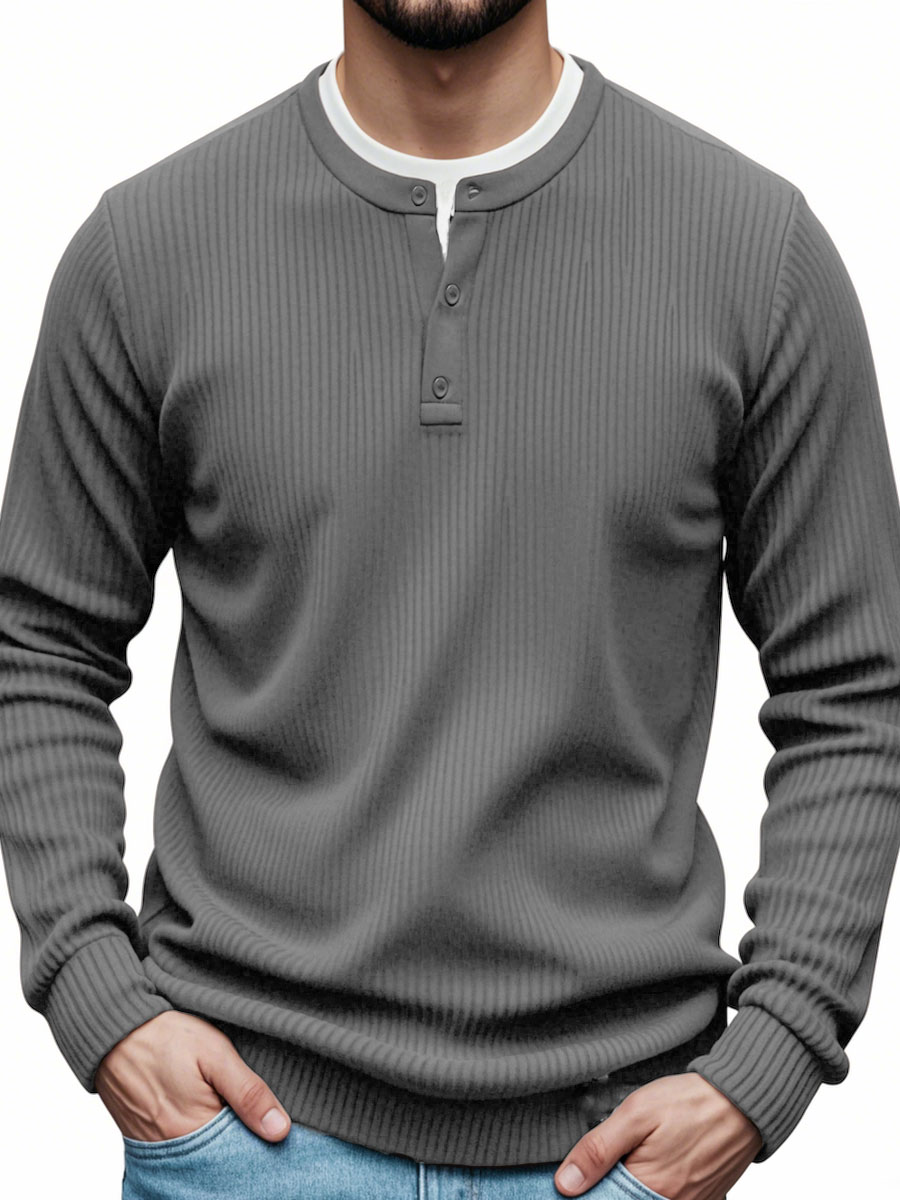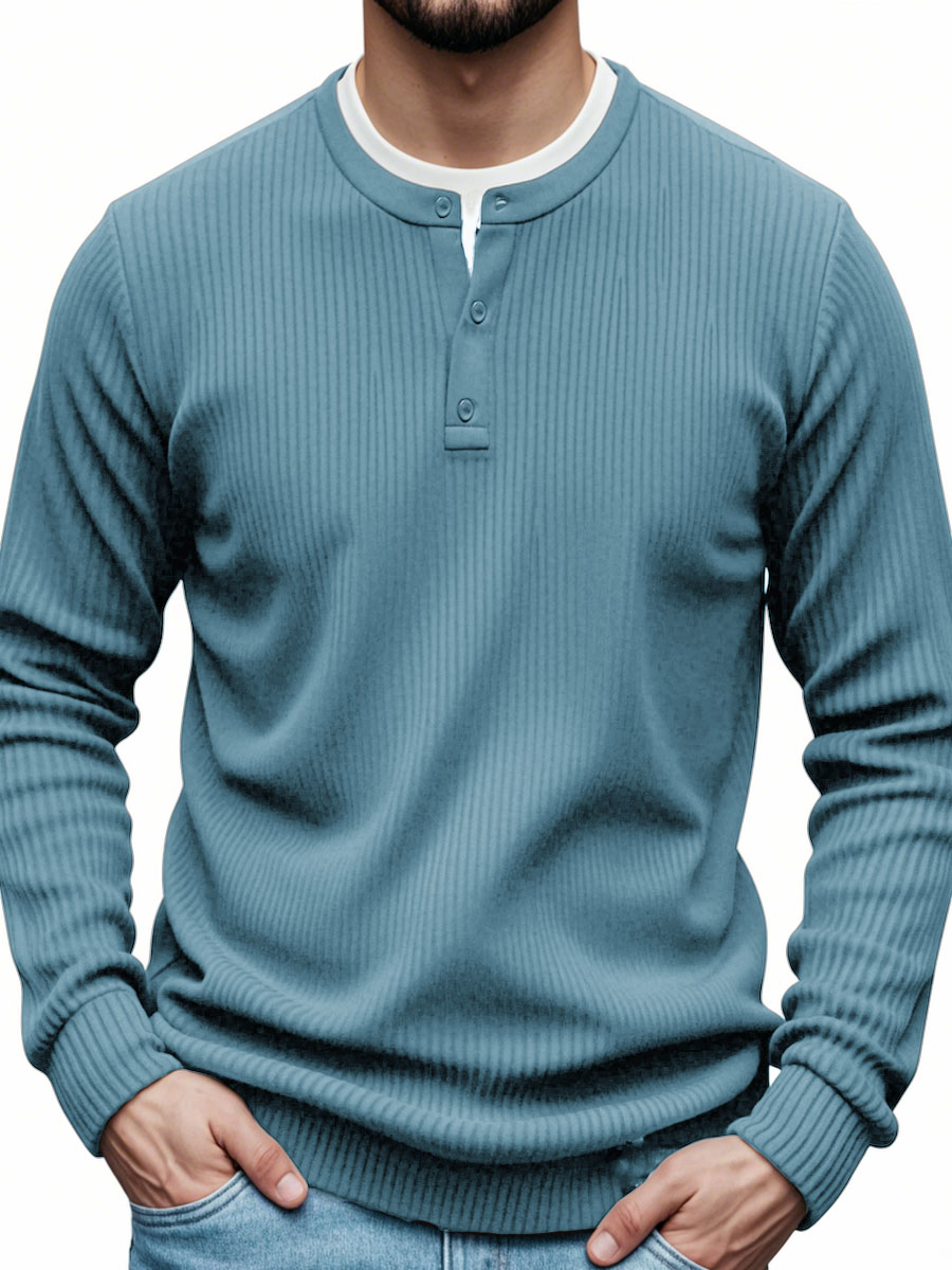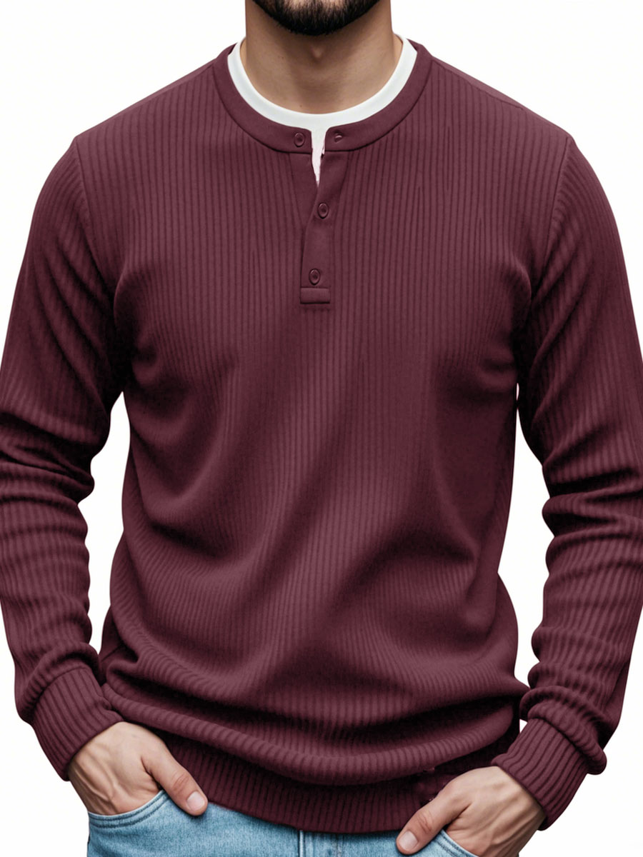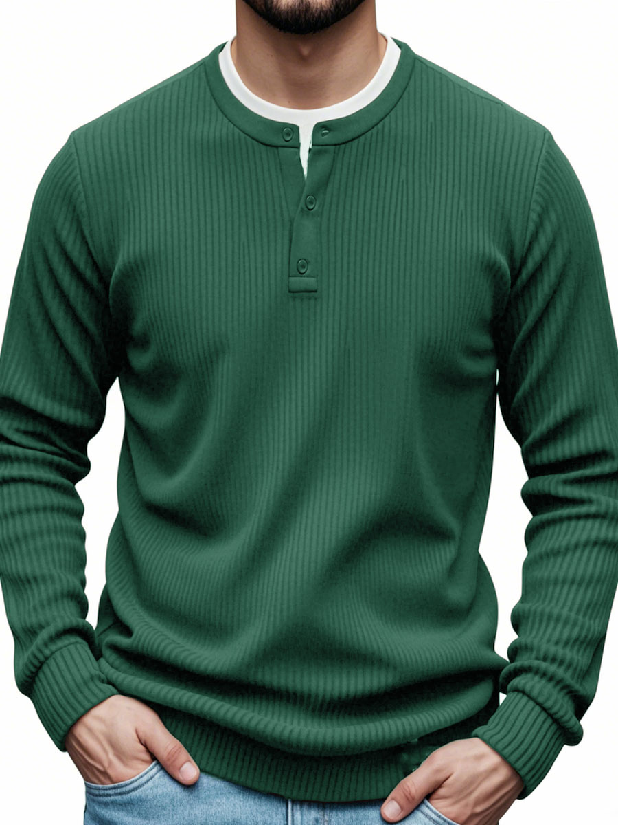 �Men's Fashion Casual Retro Ribbed Fabric Long Sleeve Henley Shirt