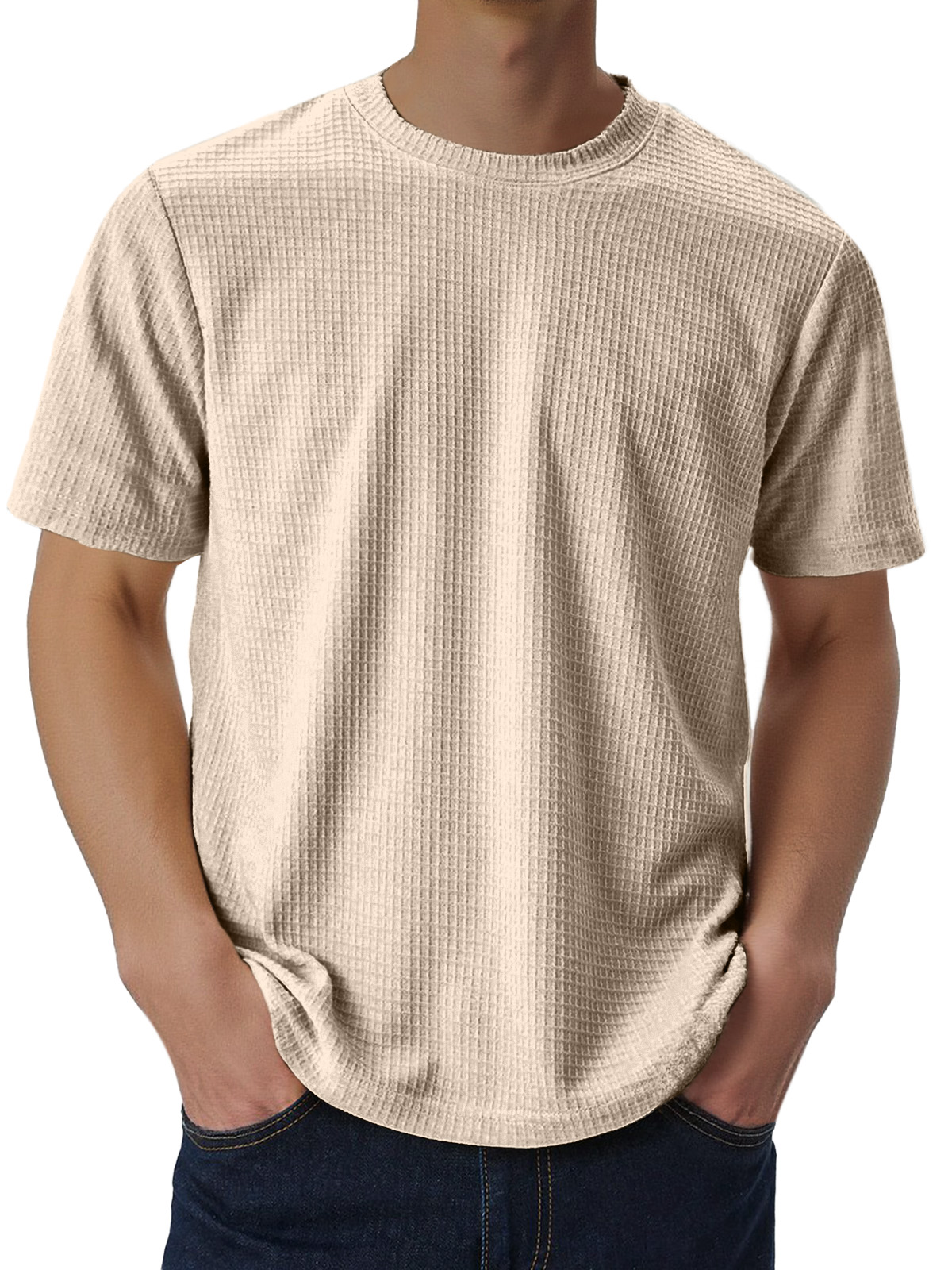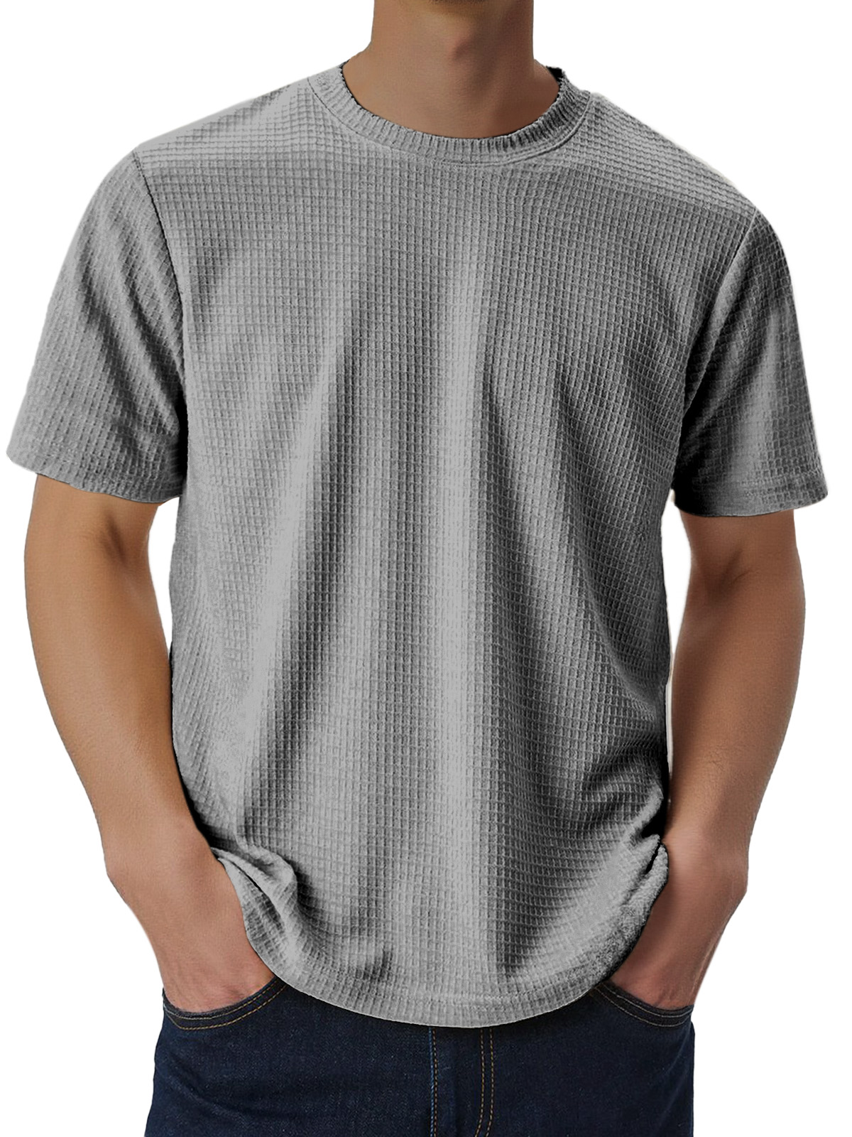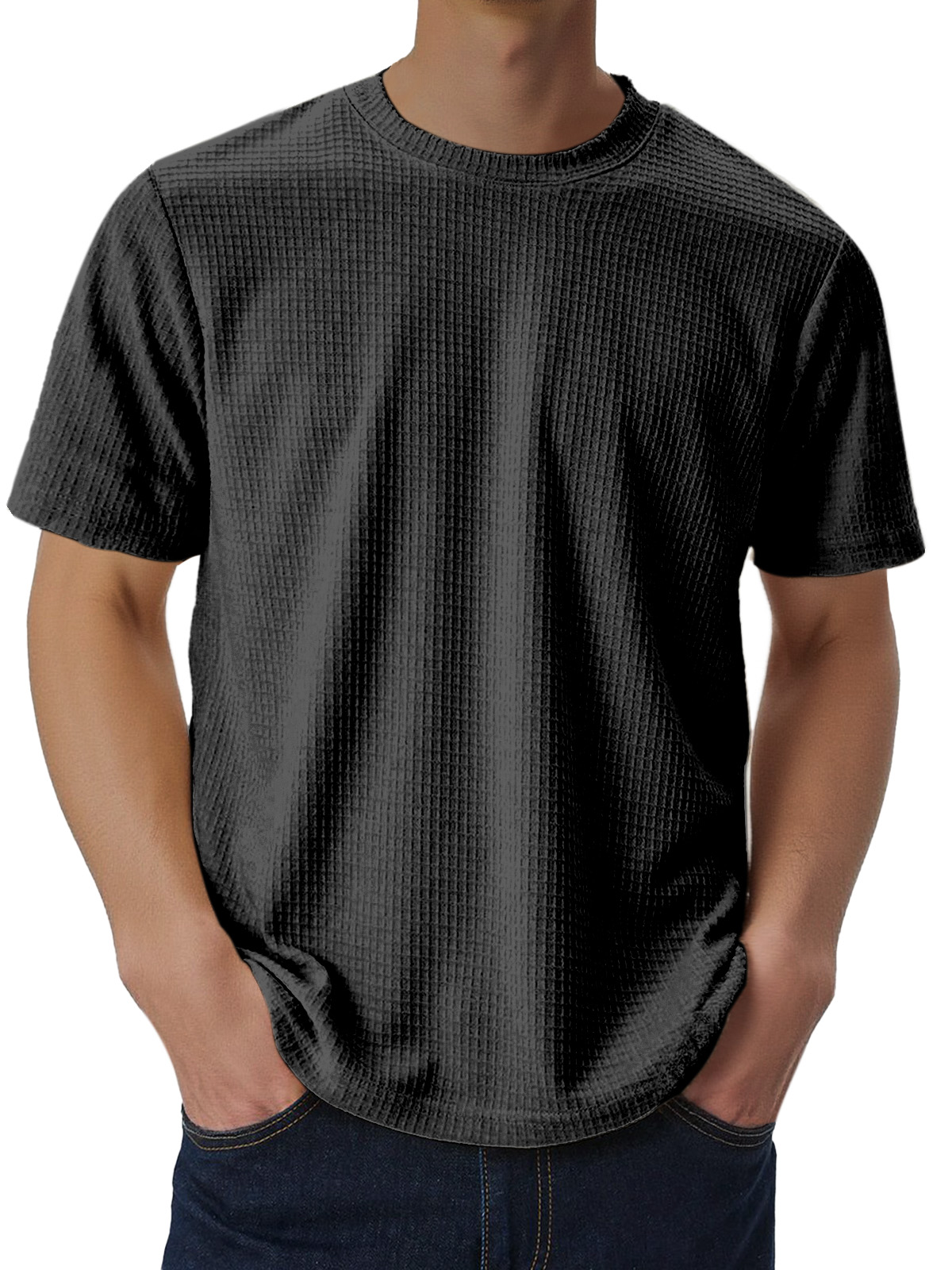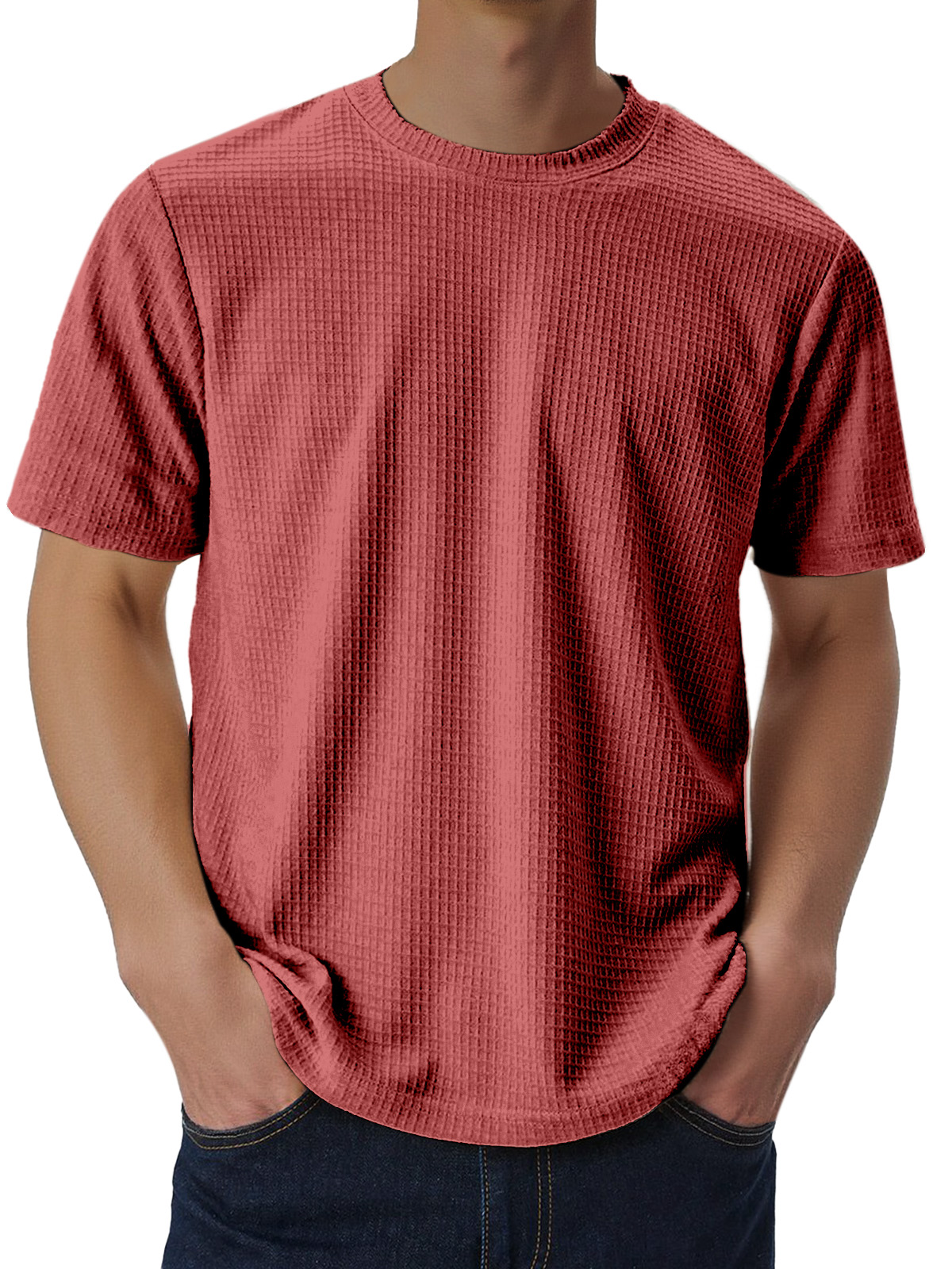 • Men's Casual Loose Comfortable Waffle Short Sleeve T-shirt