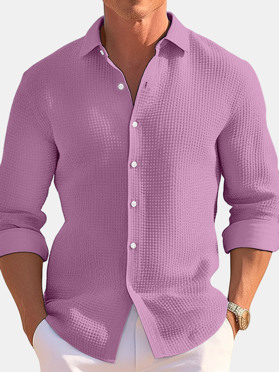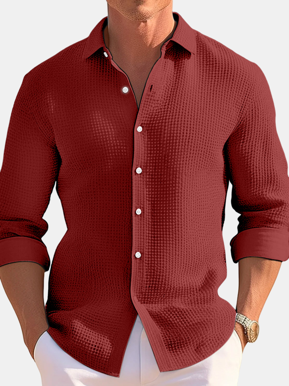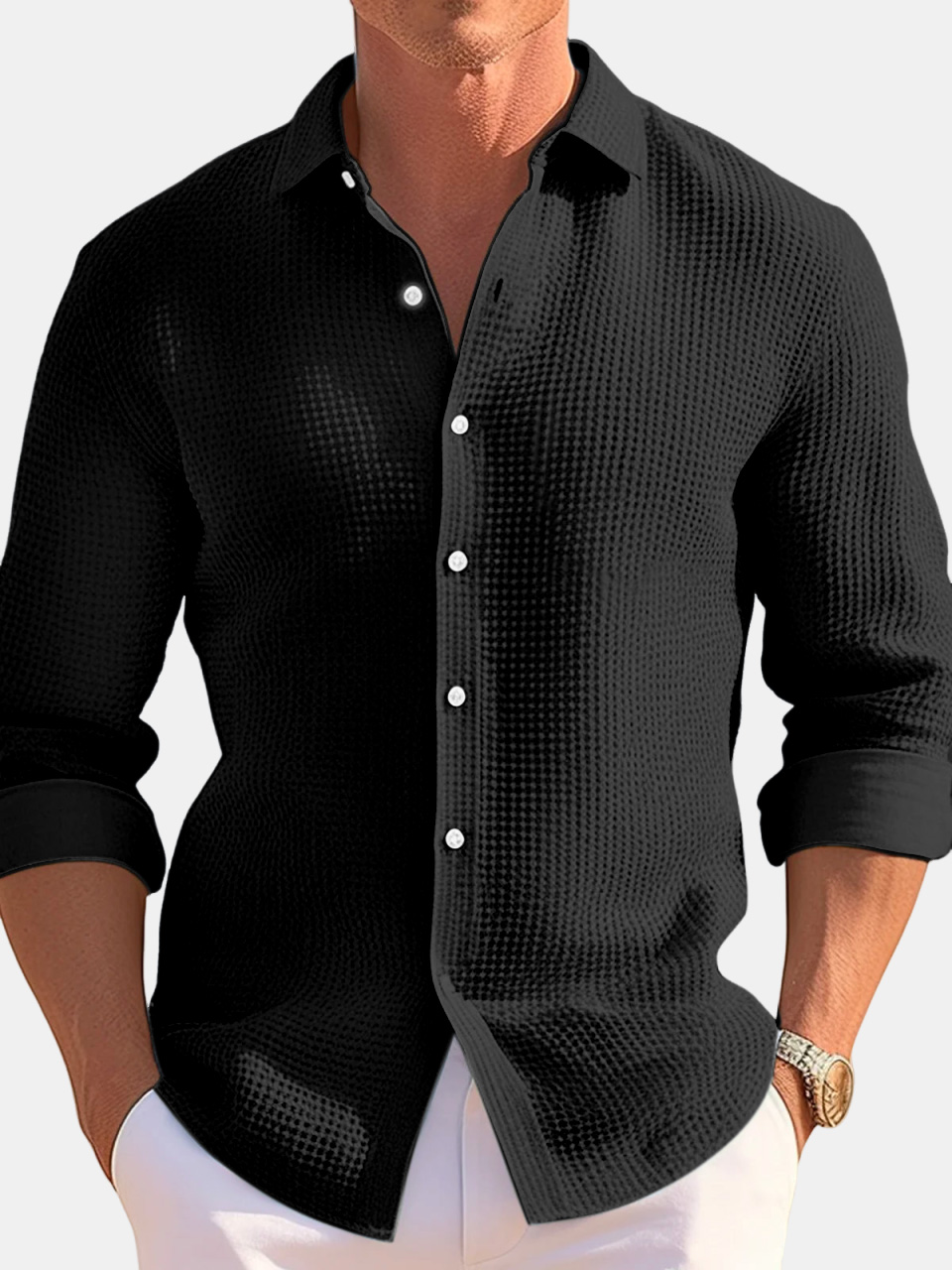 Men's Casual Loose Solid Color Waffle Long Sleeve Shirt