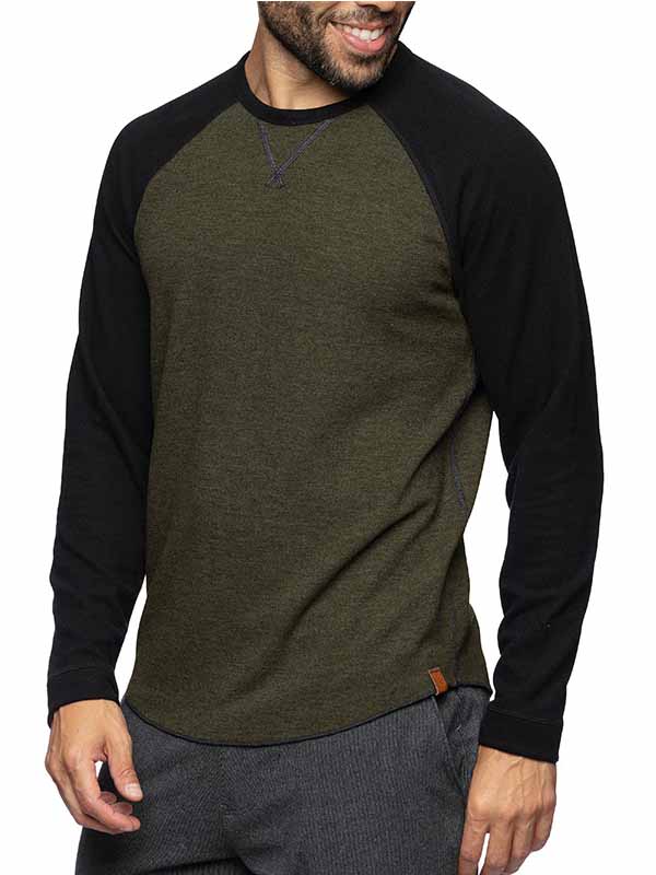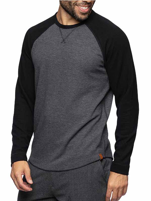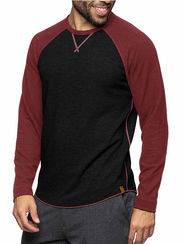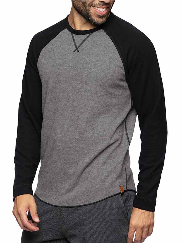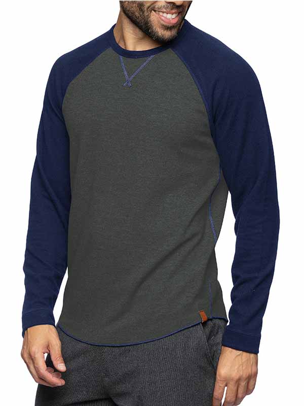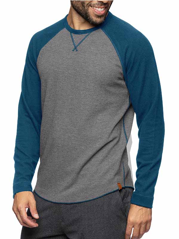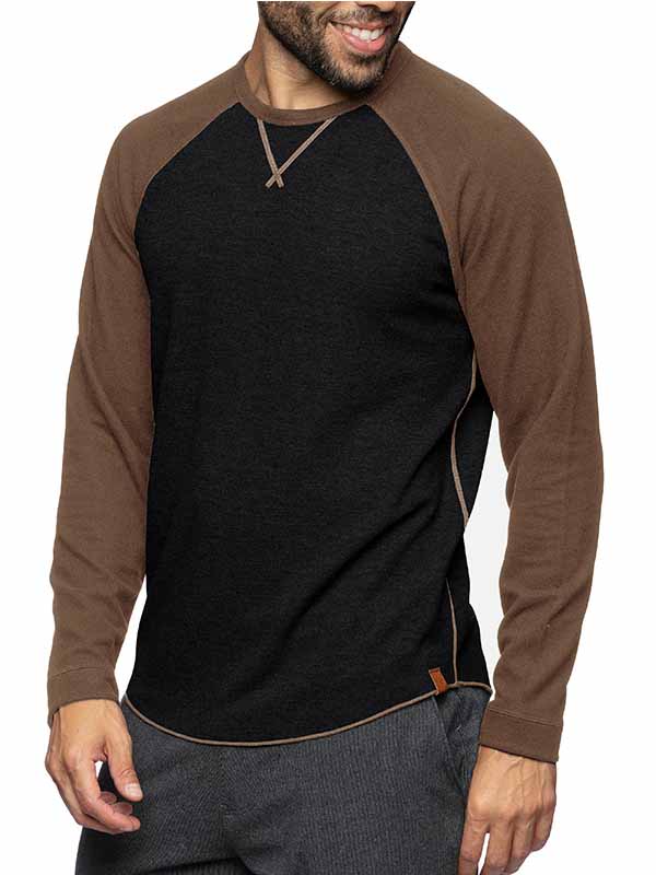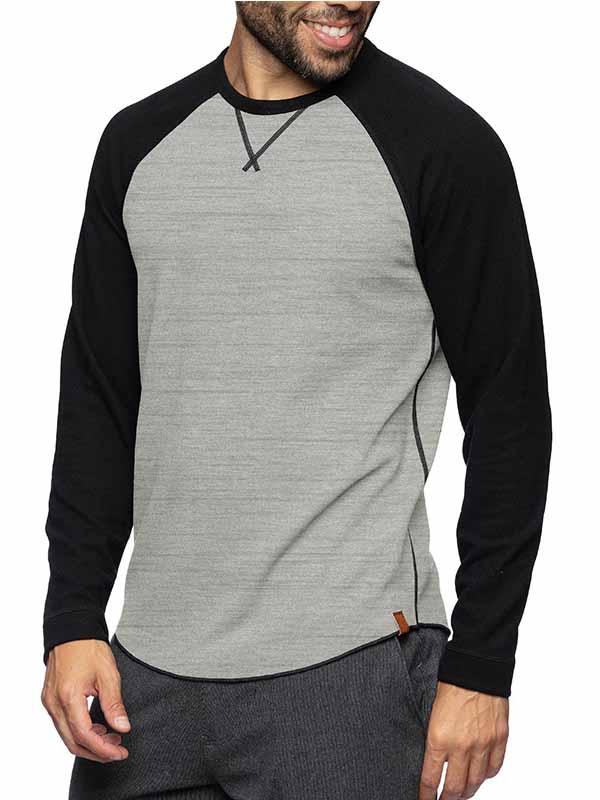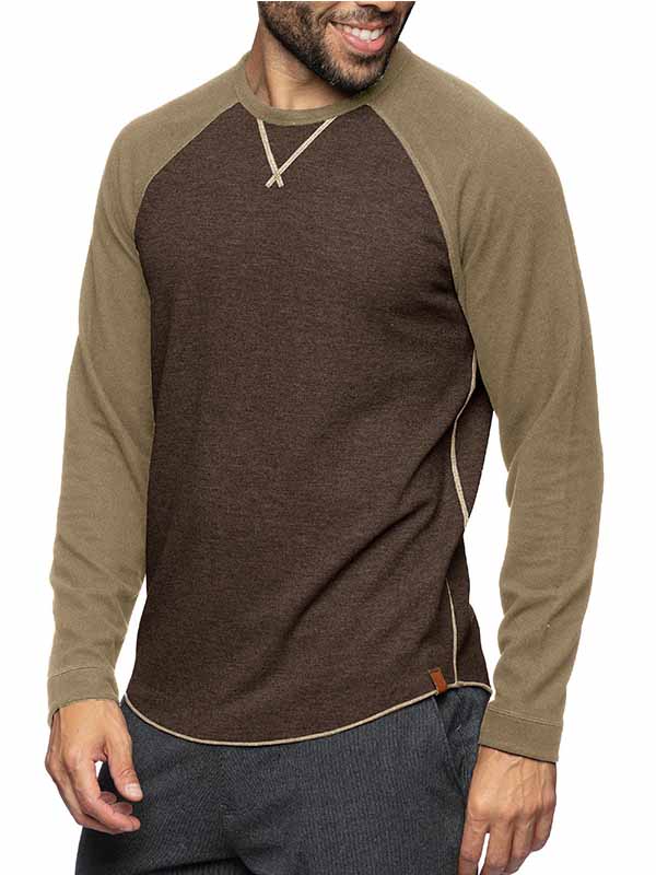 Men's Casual Round Neck Patchwork Long-Sleeved Pure Cotton Bottoming T-shirt