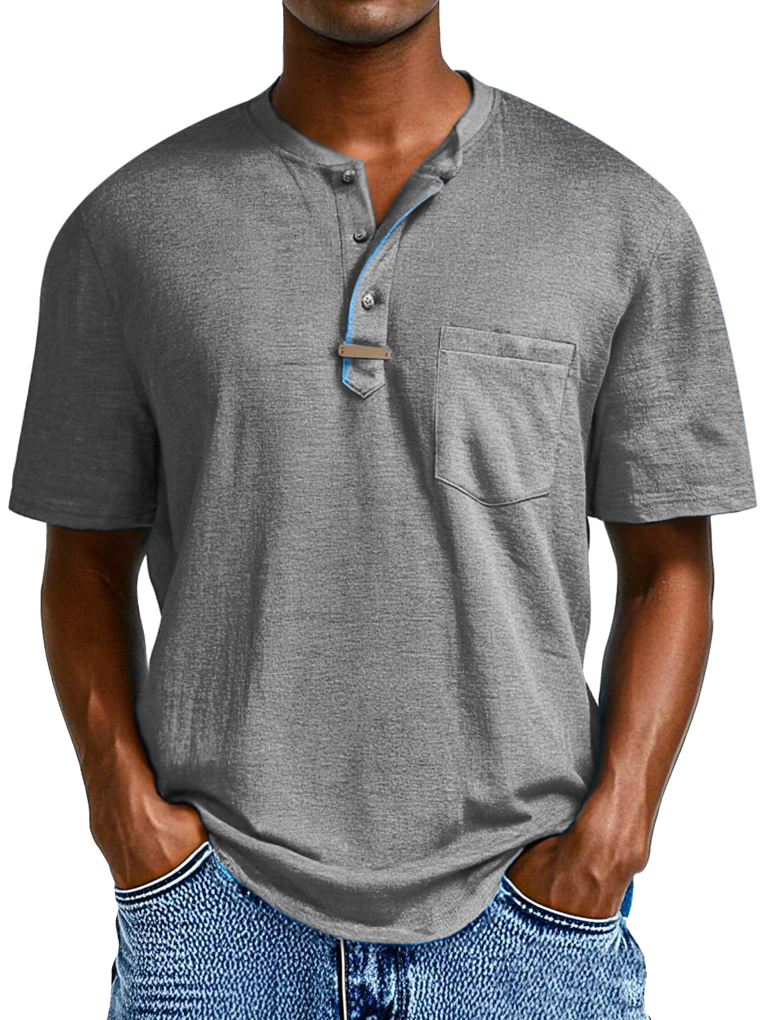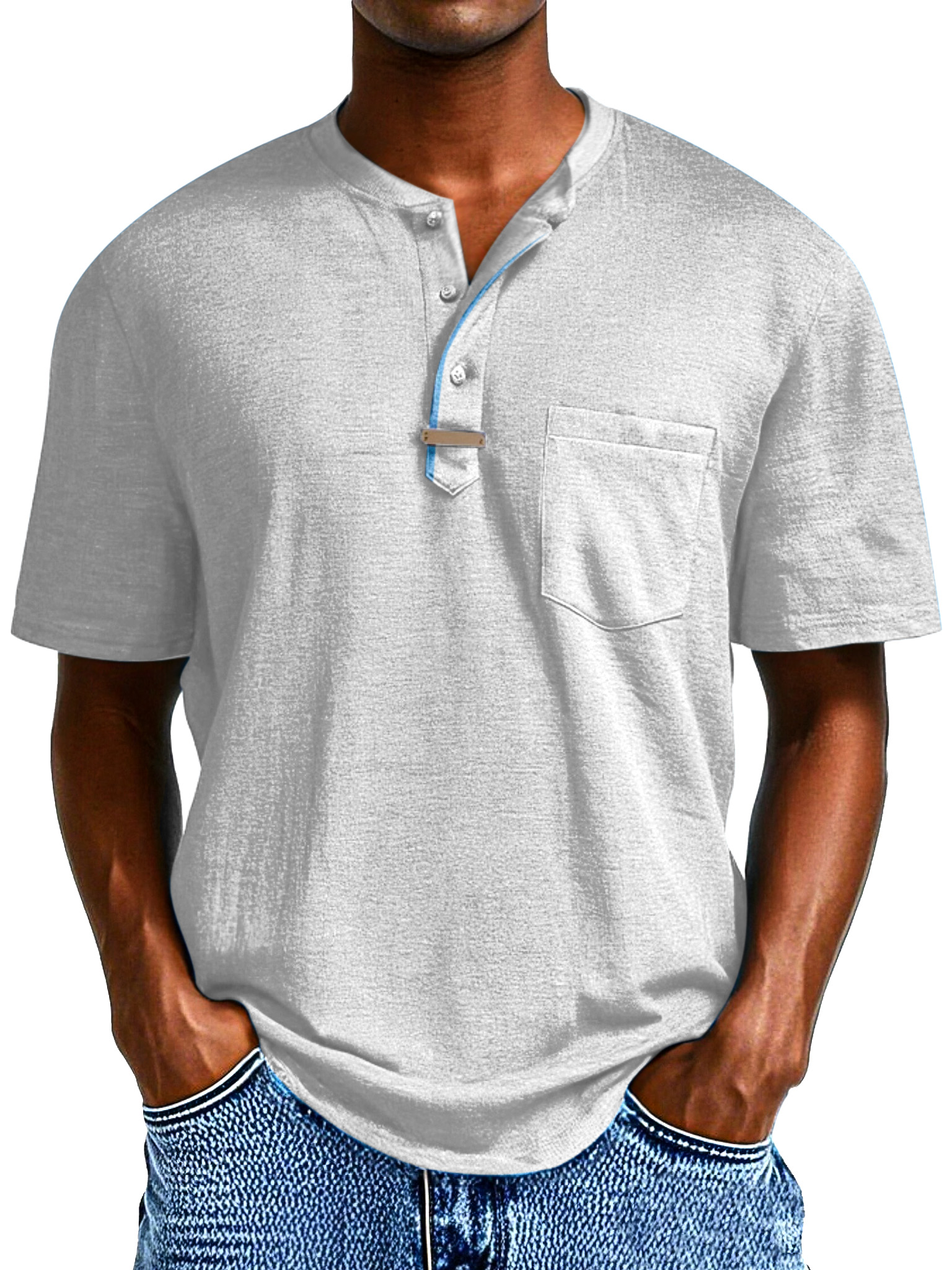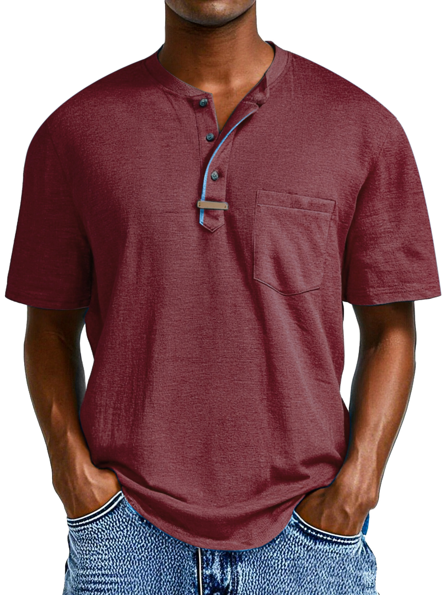 • Men's Casual Solid Color Button-down Short Sleeve Henley Shirt