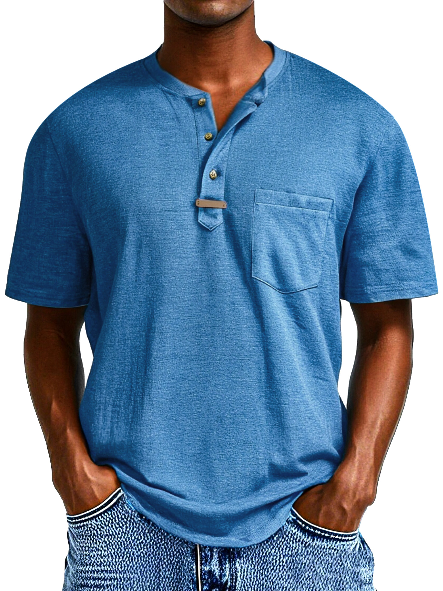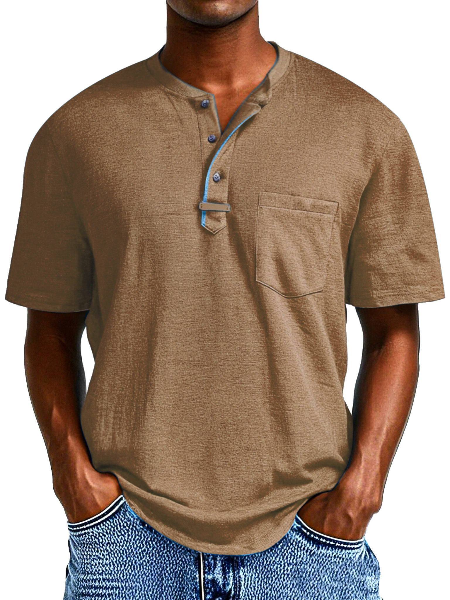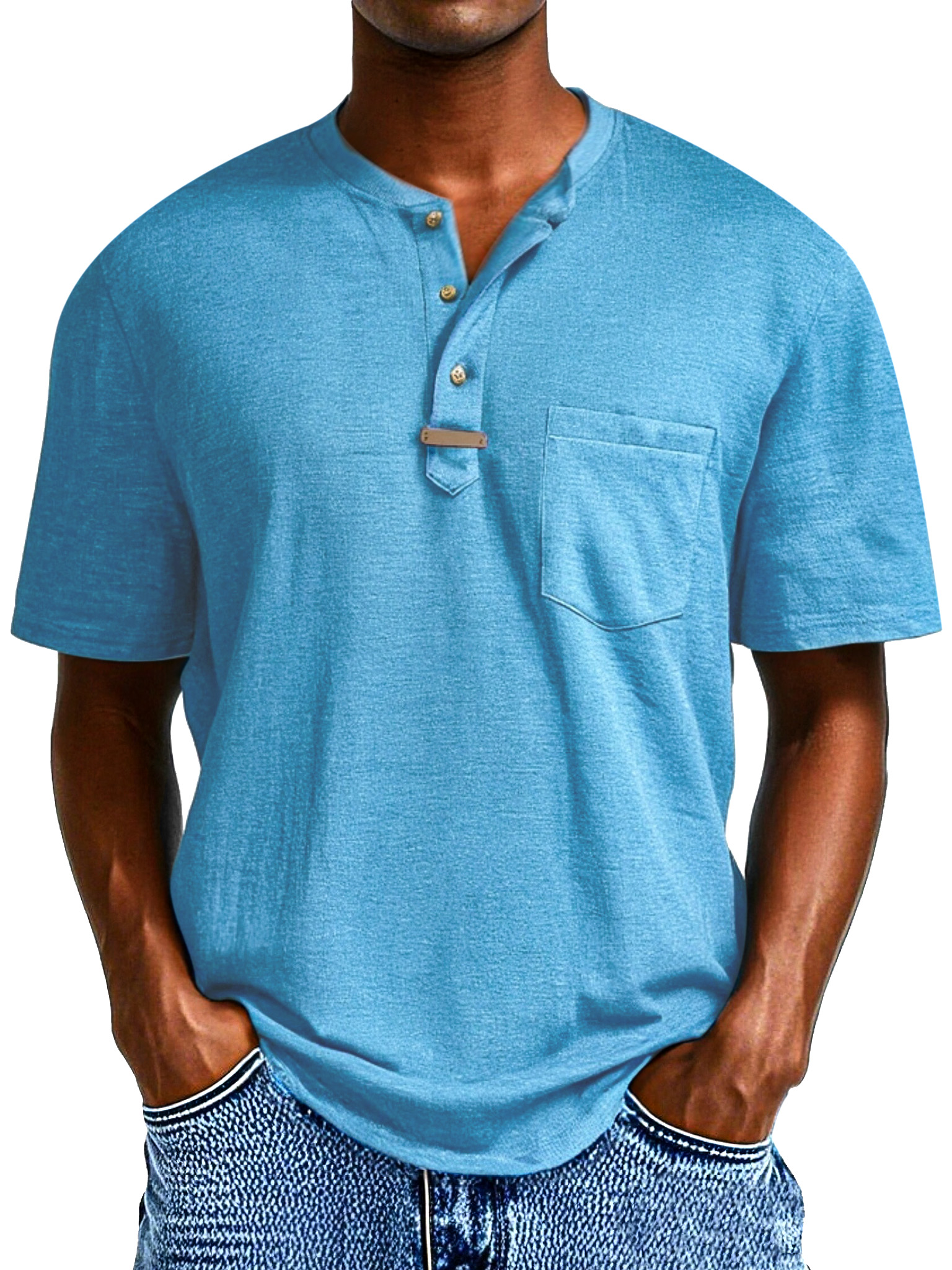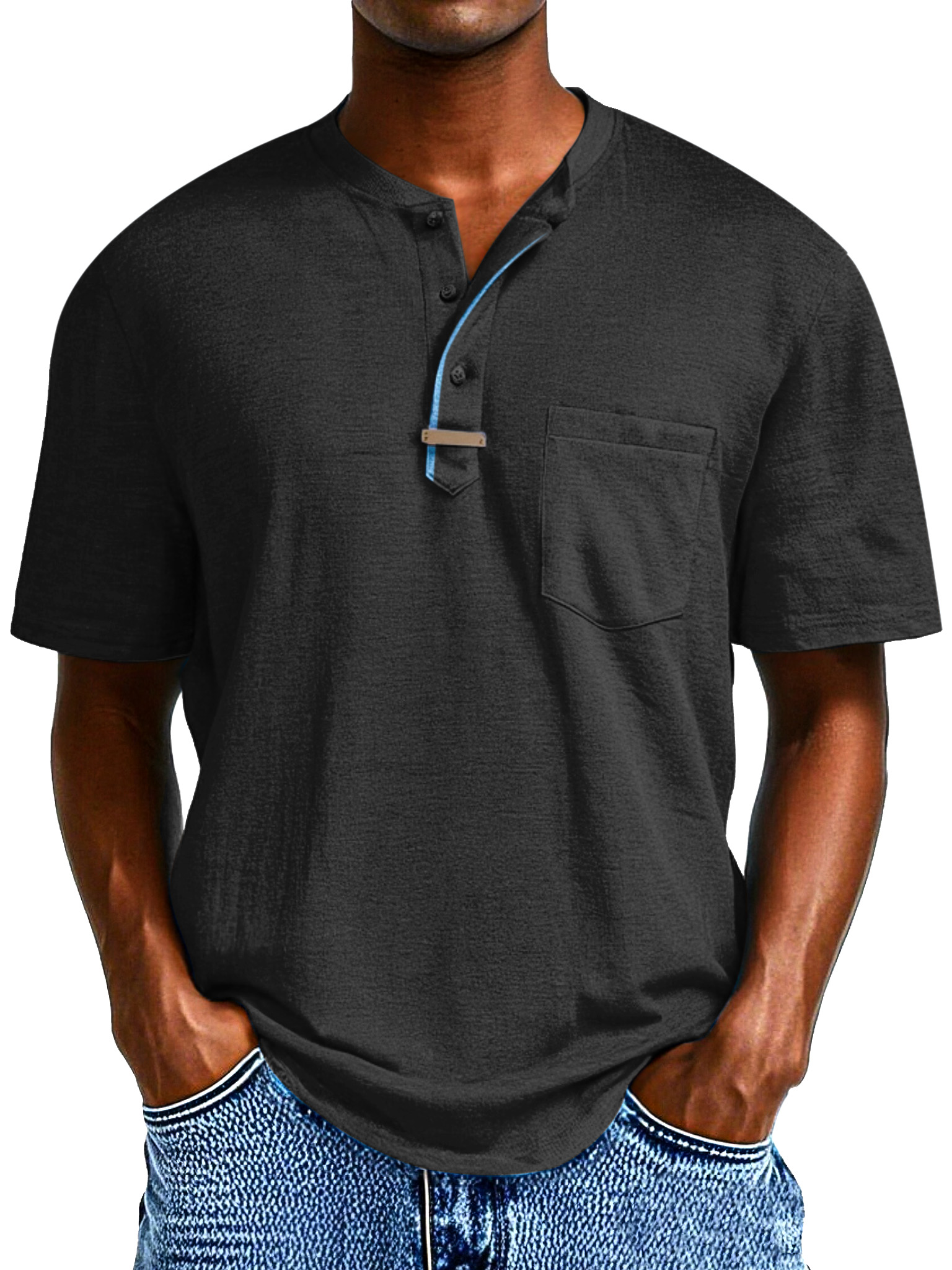 • Men's Casual Solid Color Button-down Short Sleeve Henley Shirt
