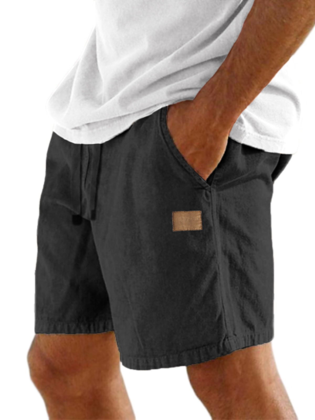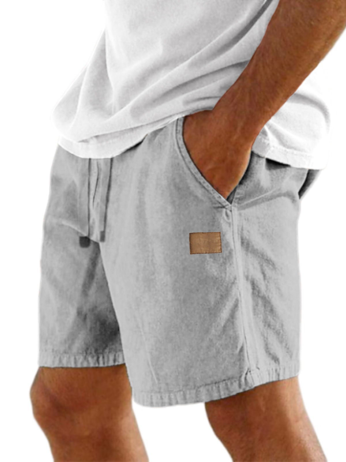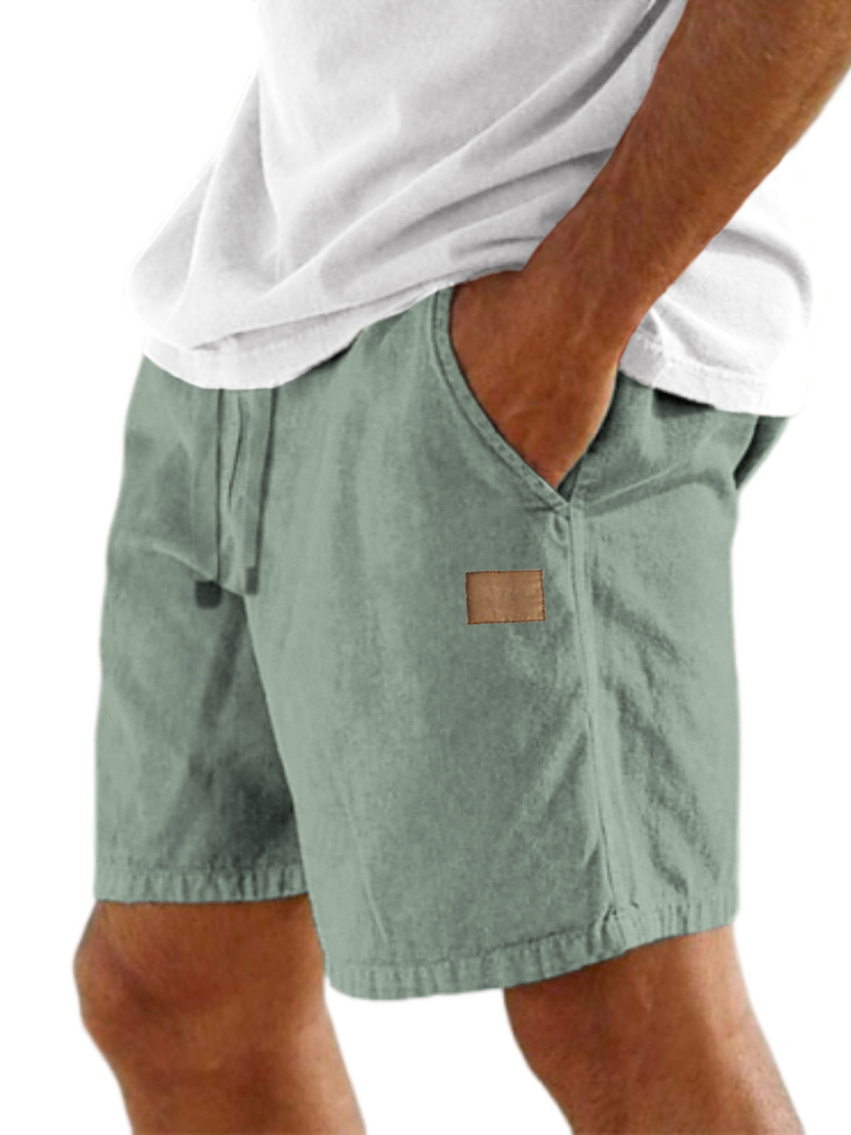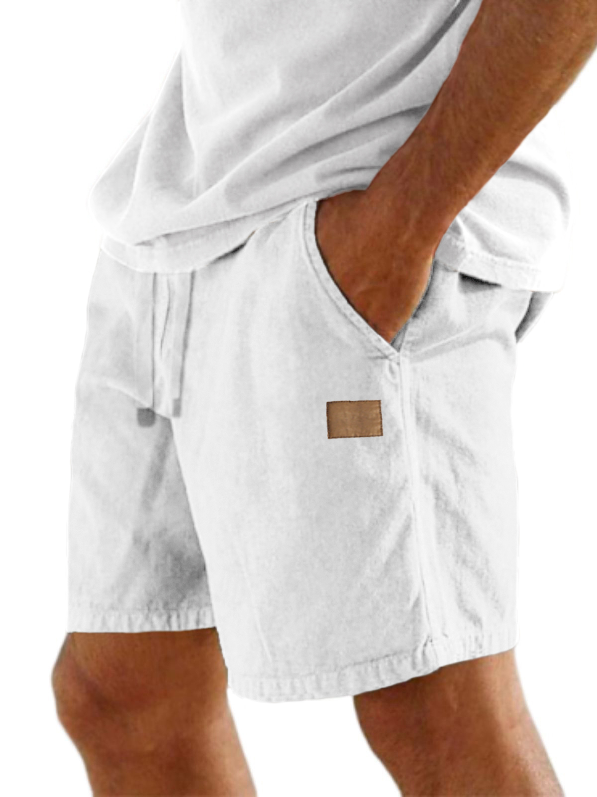Men's Comfort Linen Embroidered Logo Holiday Casual Lace-Up Shorts with Side Pockets