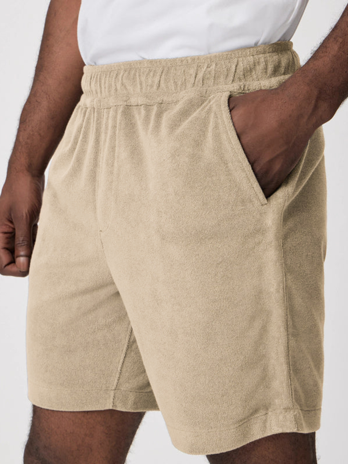 Men's Comfort Terry Casual Stretch Elastic Shorts with Side Pockets
