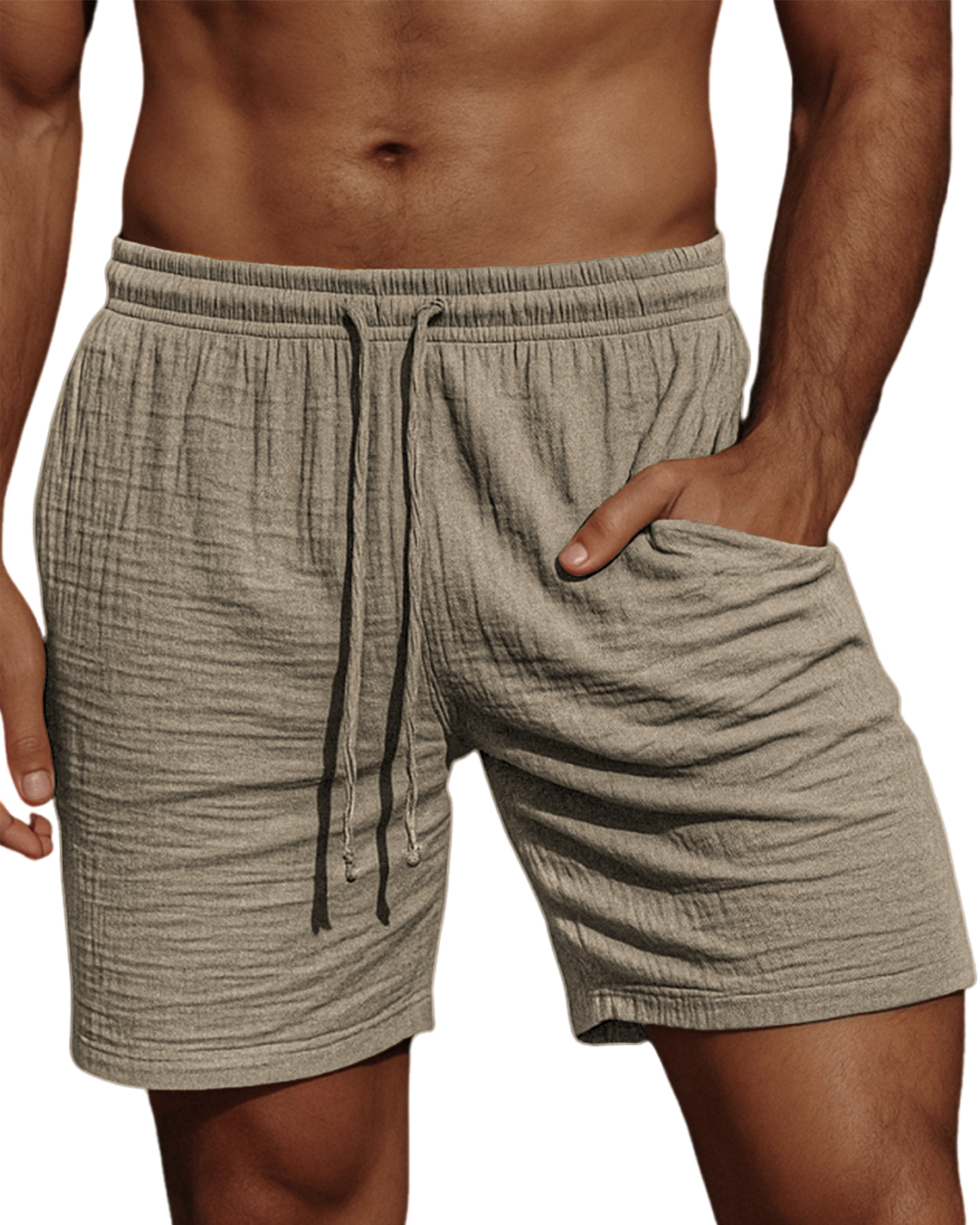 • Men's Comfortable Crepe Texture Resort Casual Lace-Up Shorts