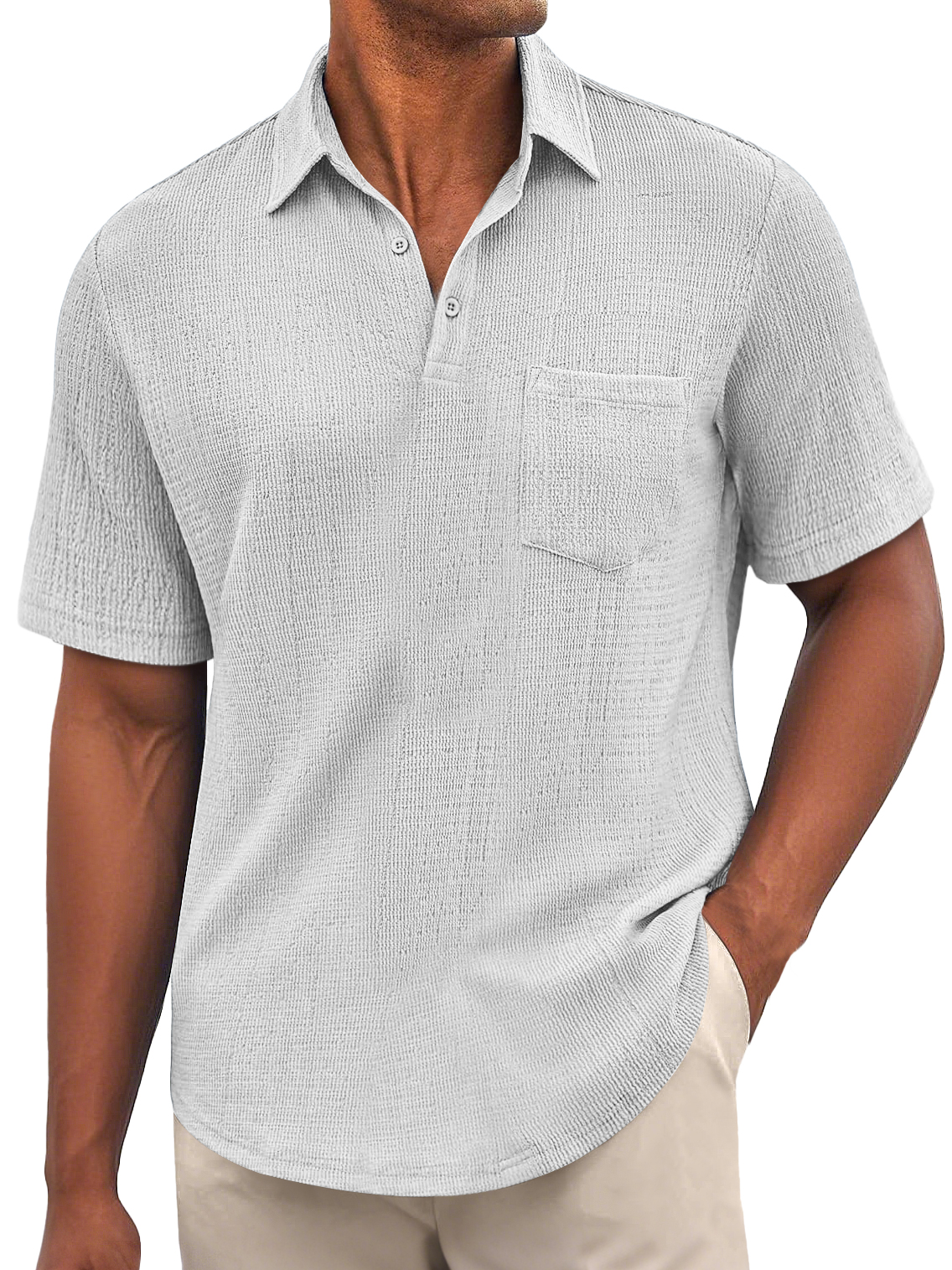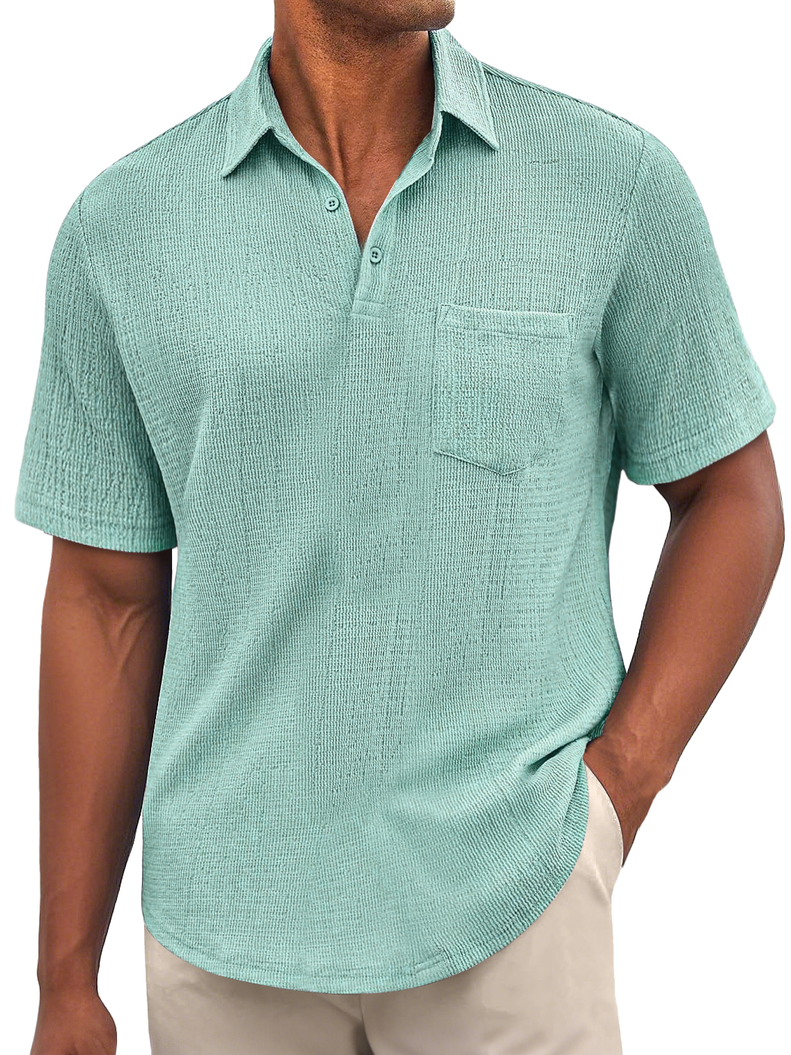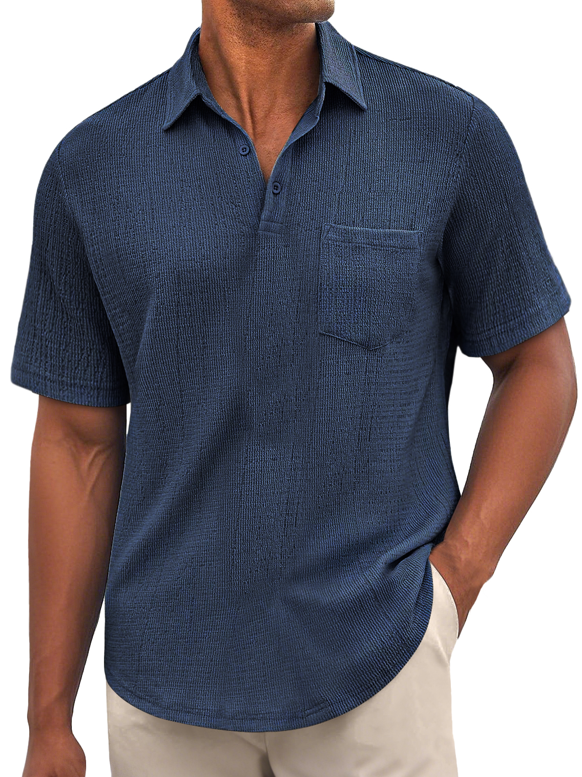 Men's Daily Bubble Wrinkle Casual Pocket Solid Color Short Sleeve POLO Shirt