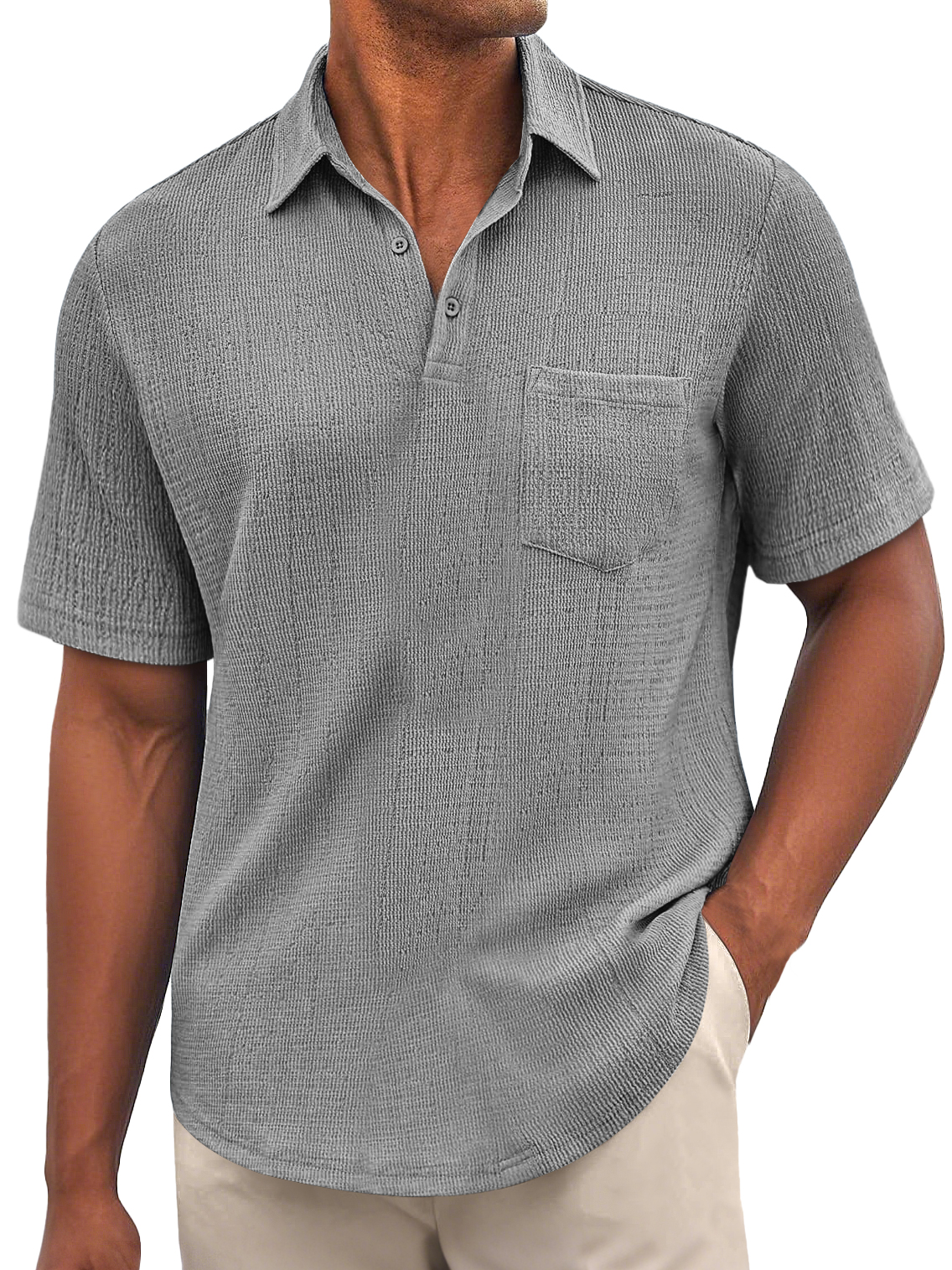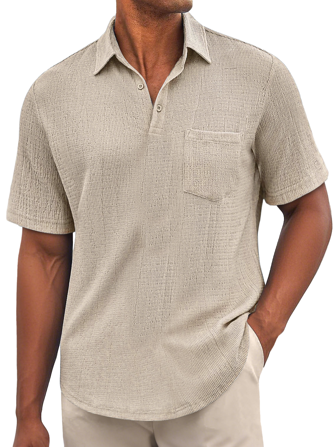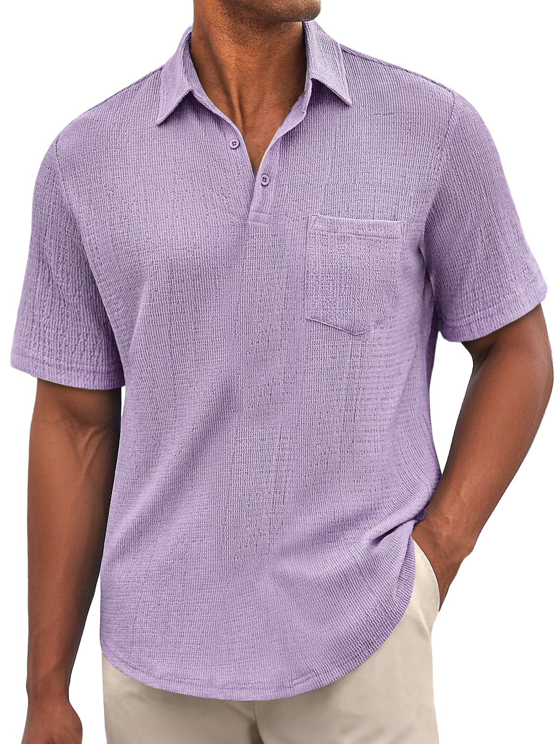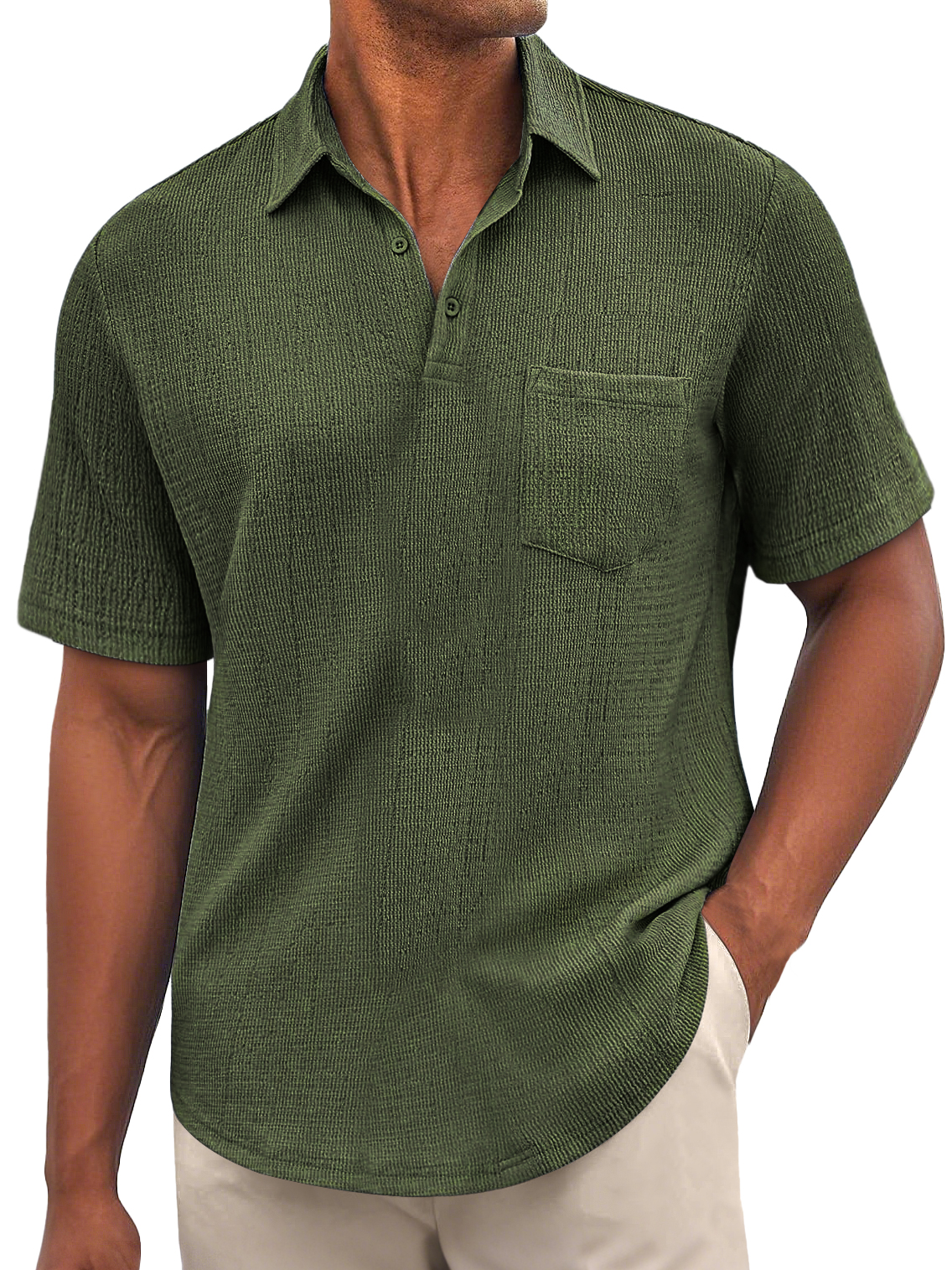 Men's Daily Bubble Wrinkle Casual Pocket Solid Color Short Sleeve POLO Shirt