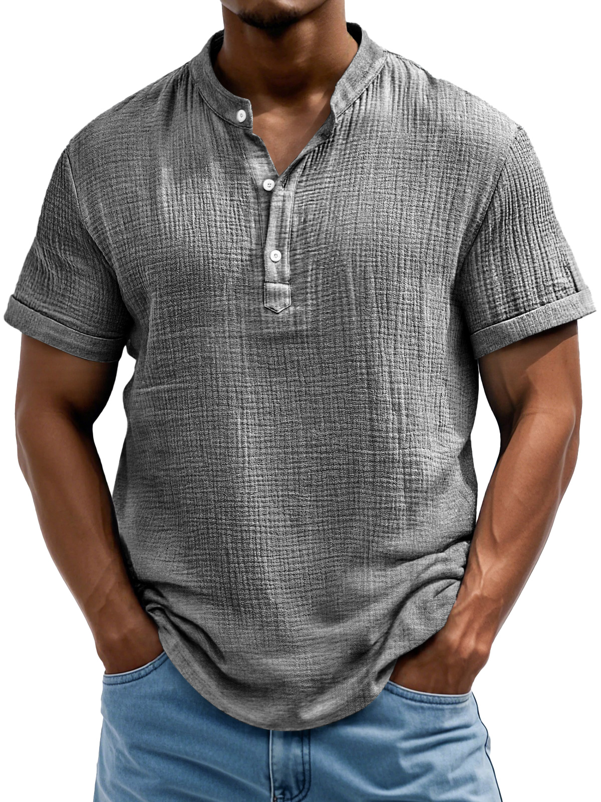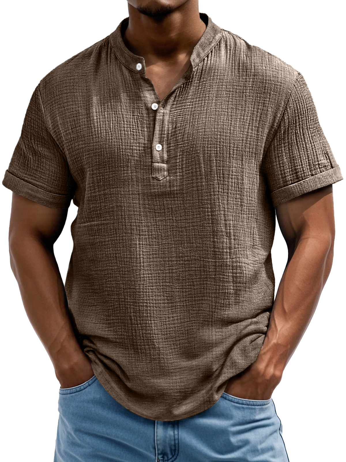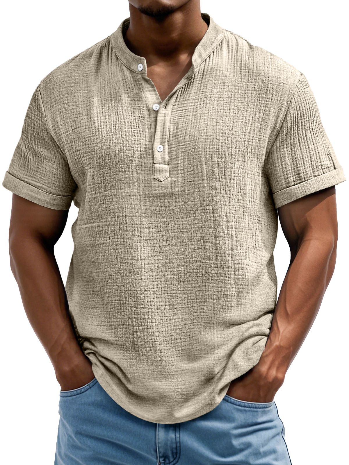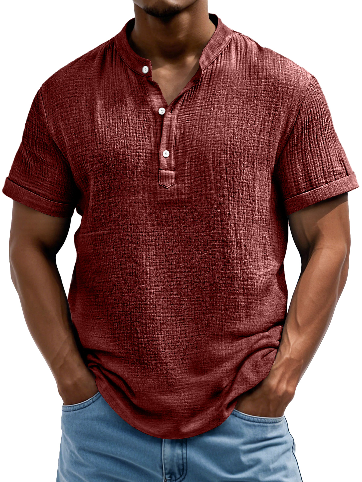 • Men's Daily Casual Textured Half-Placket Henley Short Sleeve Shirt