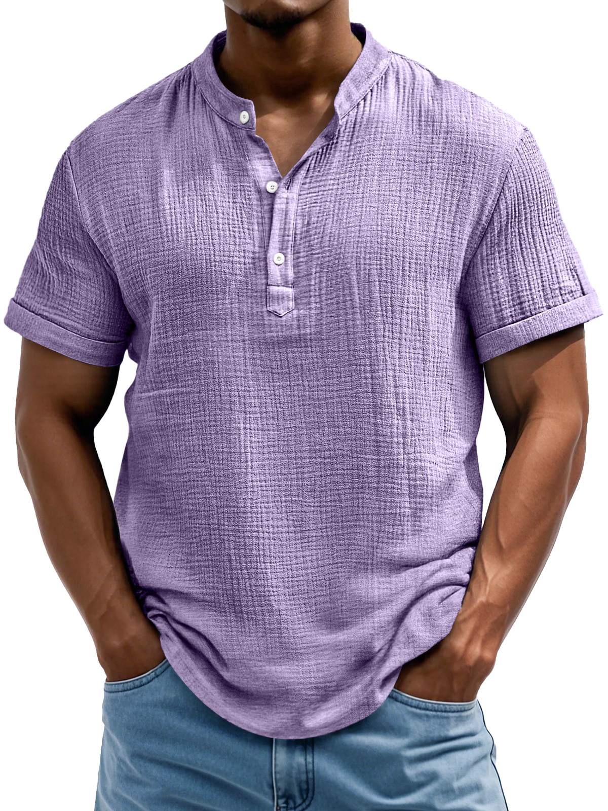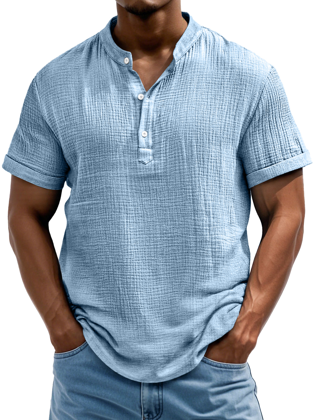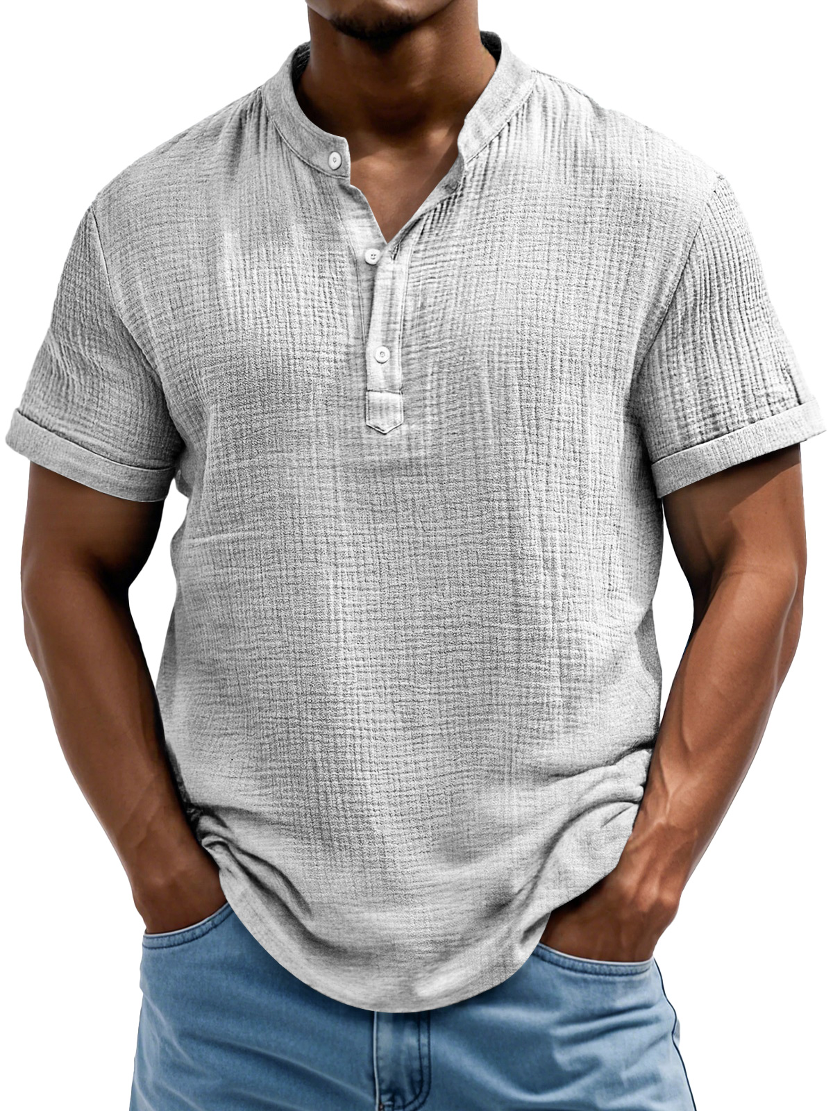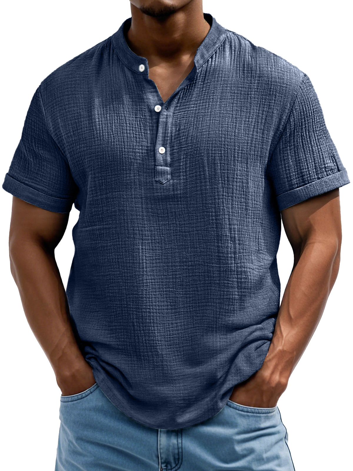 • Men's Daily Casual Textured Half-Placket Henley Short Sleeve Shirt
