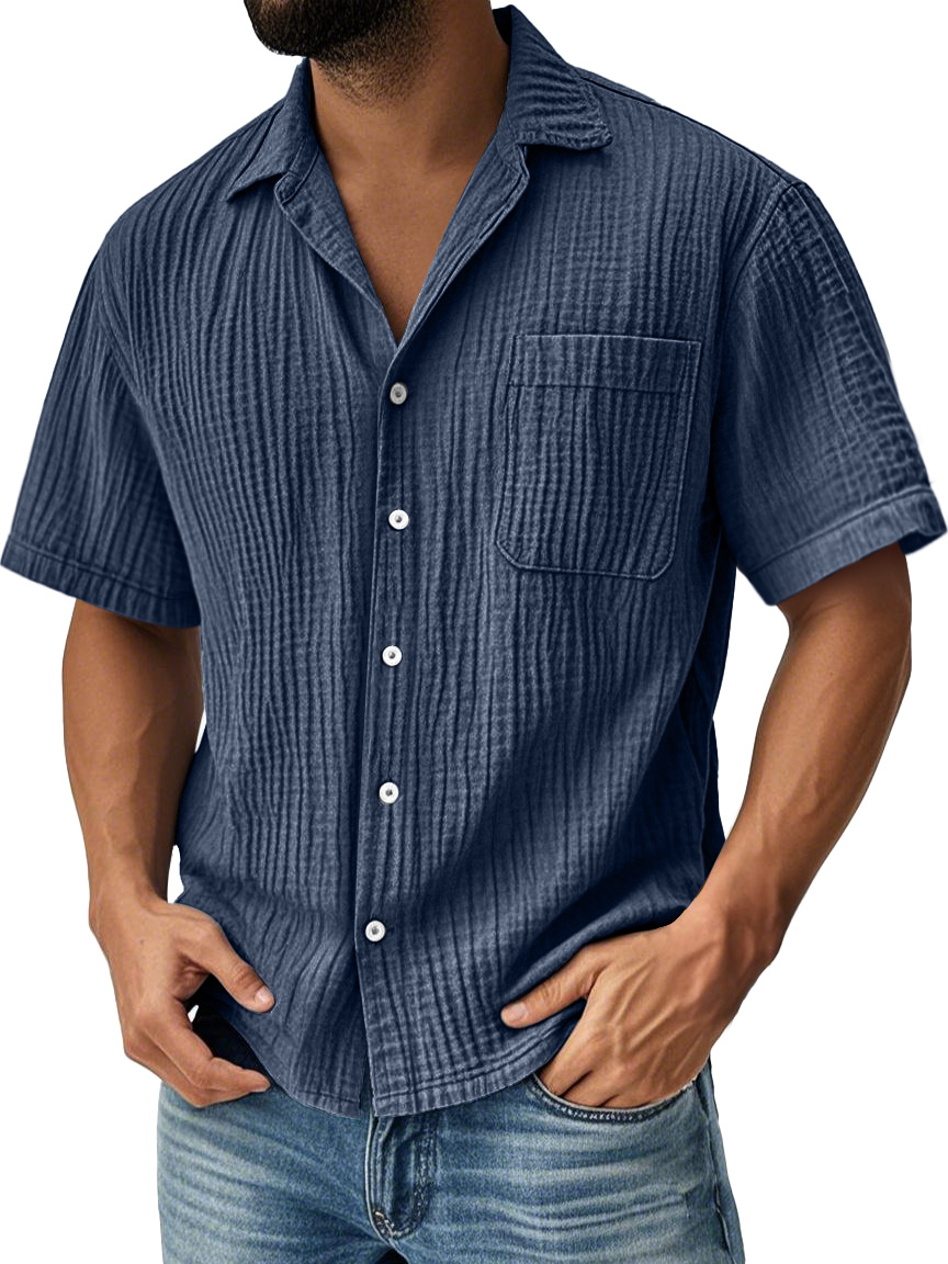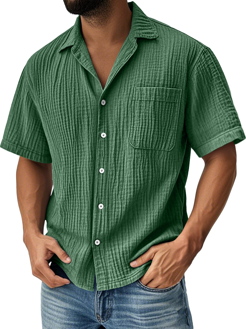 • Men's Daily Pleated Pocket Casual Solid Color Short Sleeve Shirt