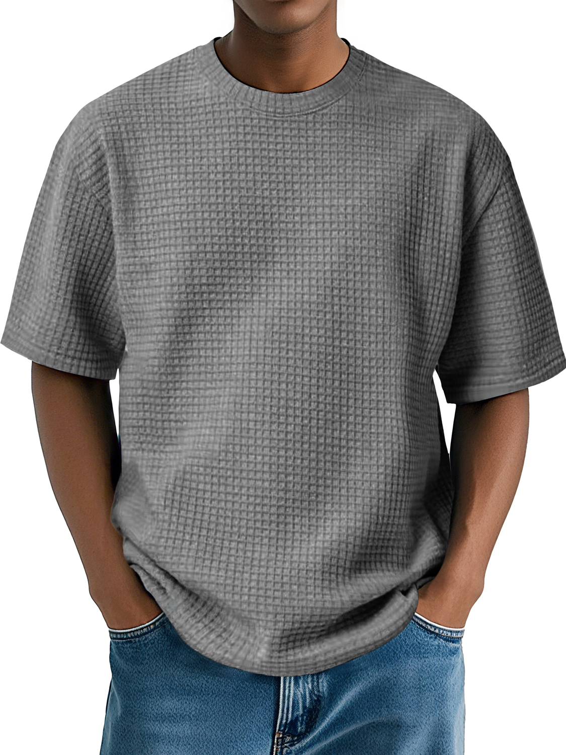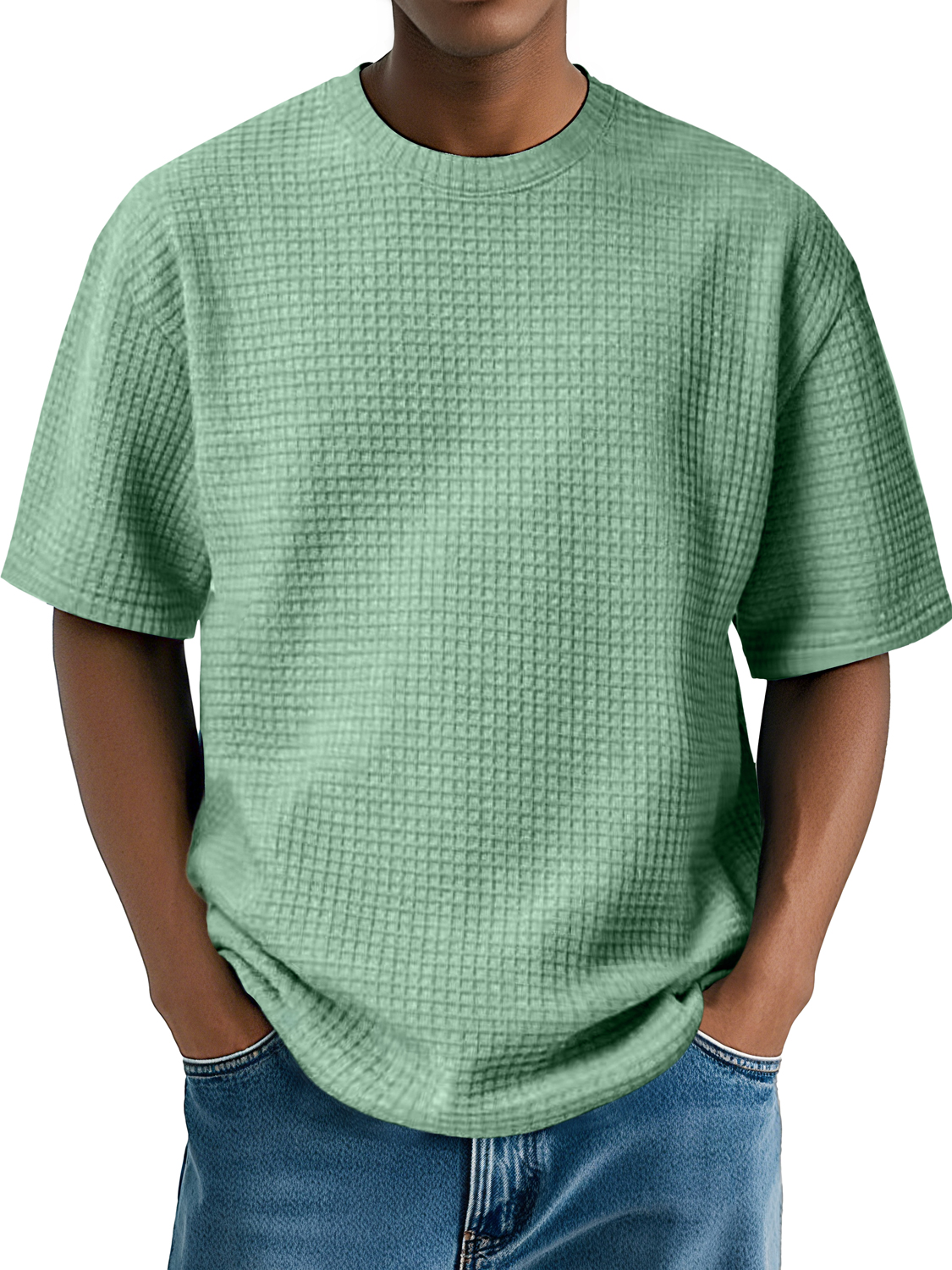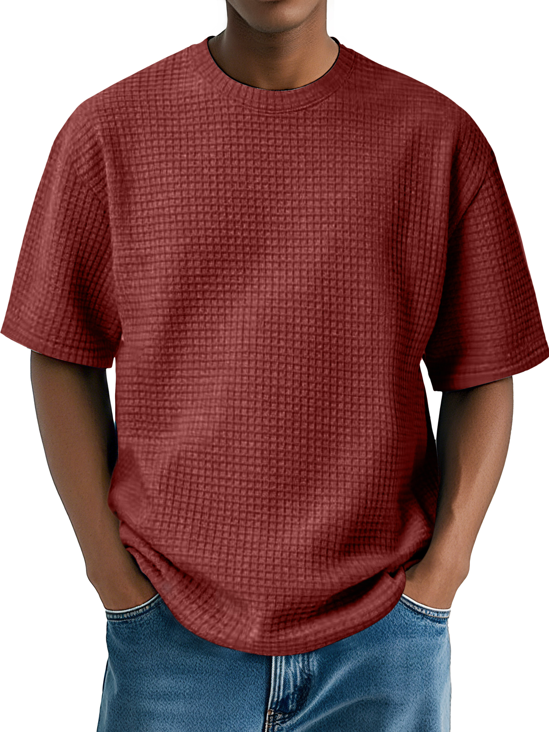 • Men's Daily Round Neck Waffle Casual Comfort Short Sleeve T-Shirt