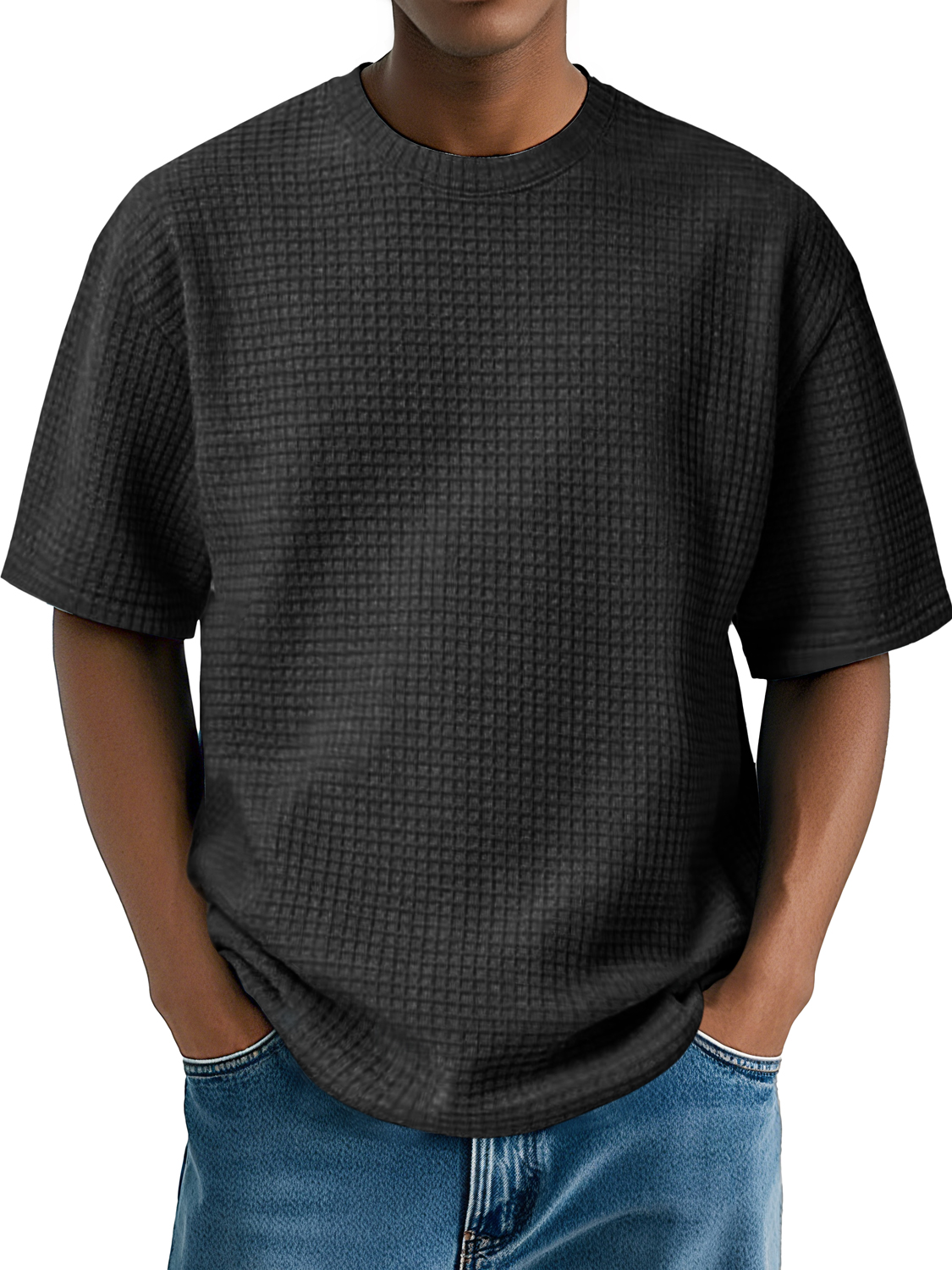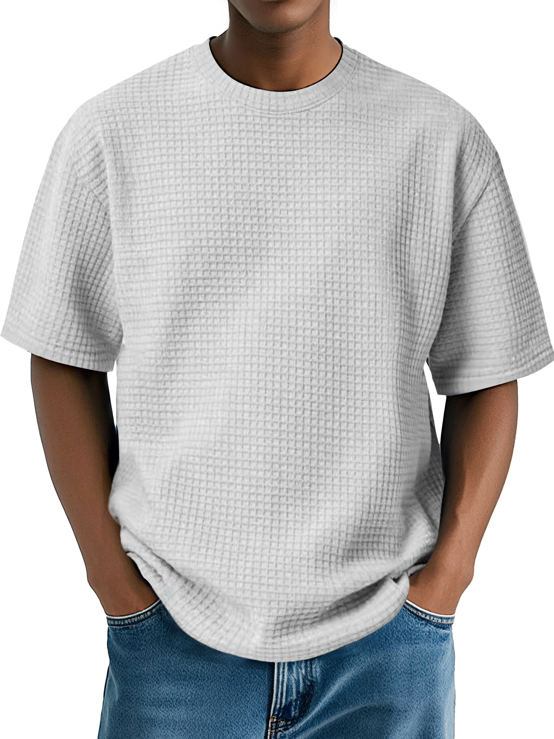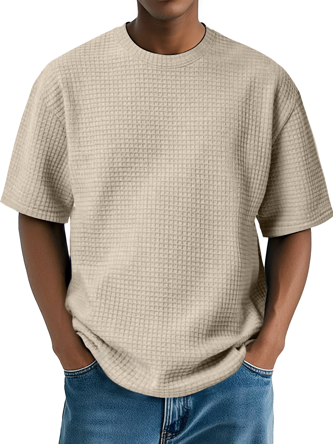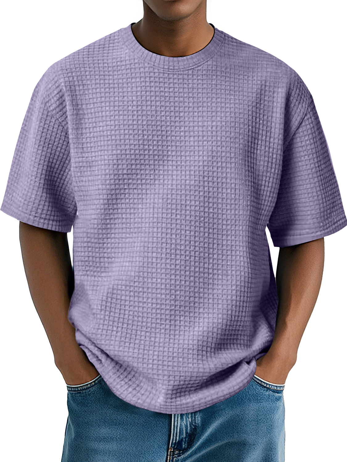 • Men's Daily Round Neck Waffle Casual Comfort Short Sleeve T-Shirt