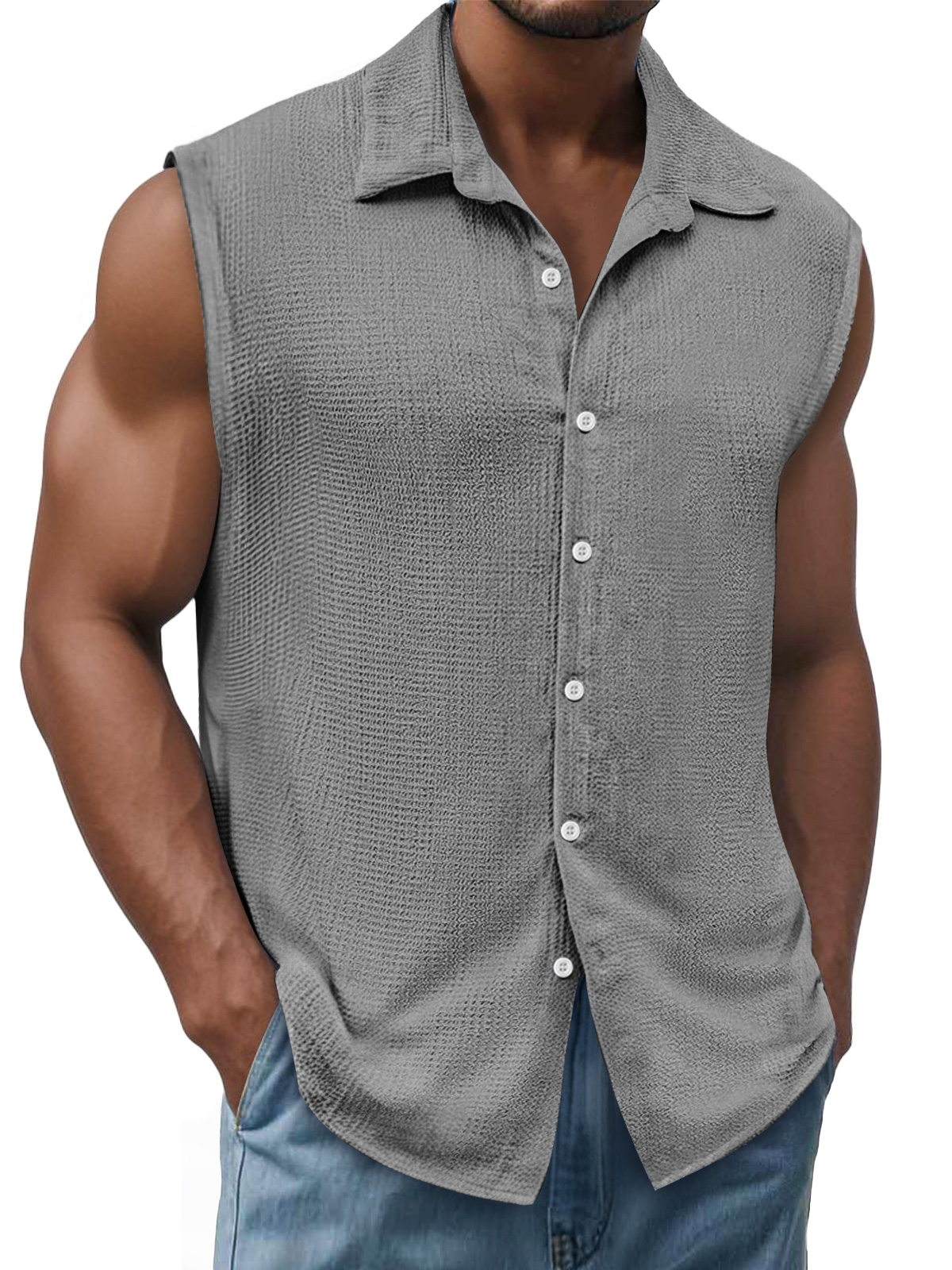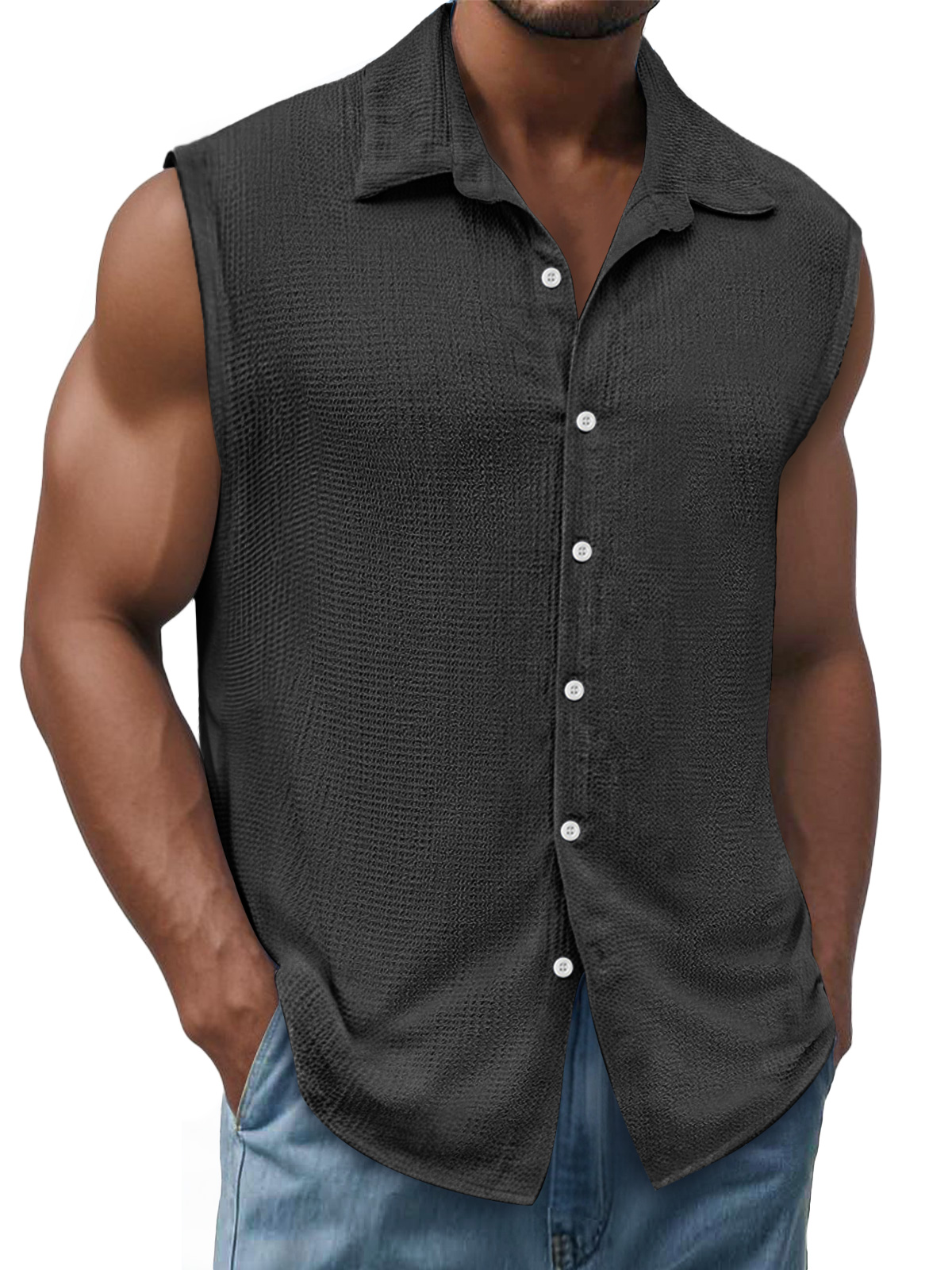 Men's Daily Texture Casual Lapel Solid Color Sleeveless Shirt