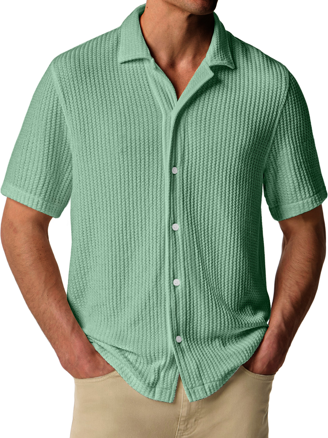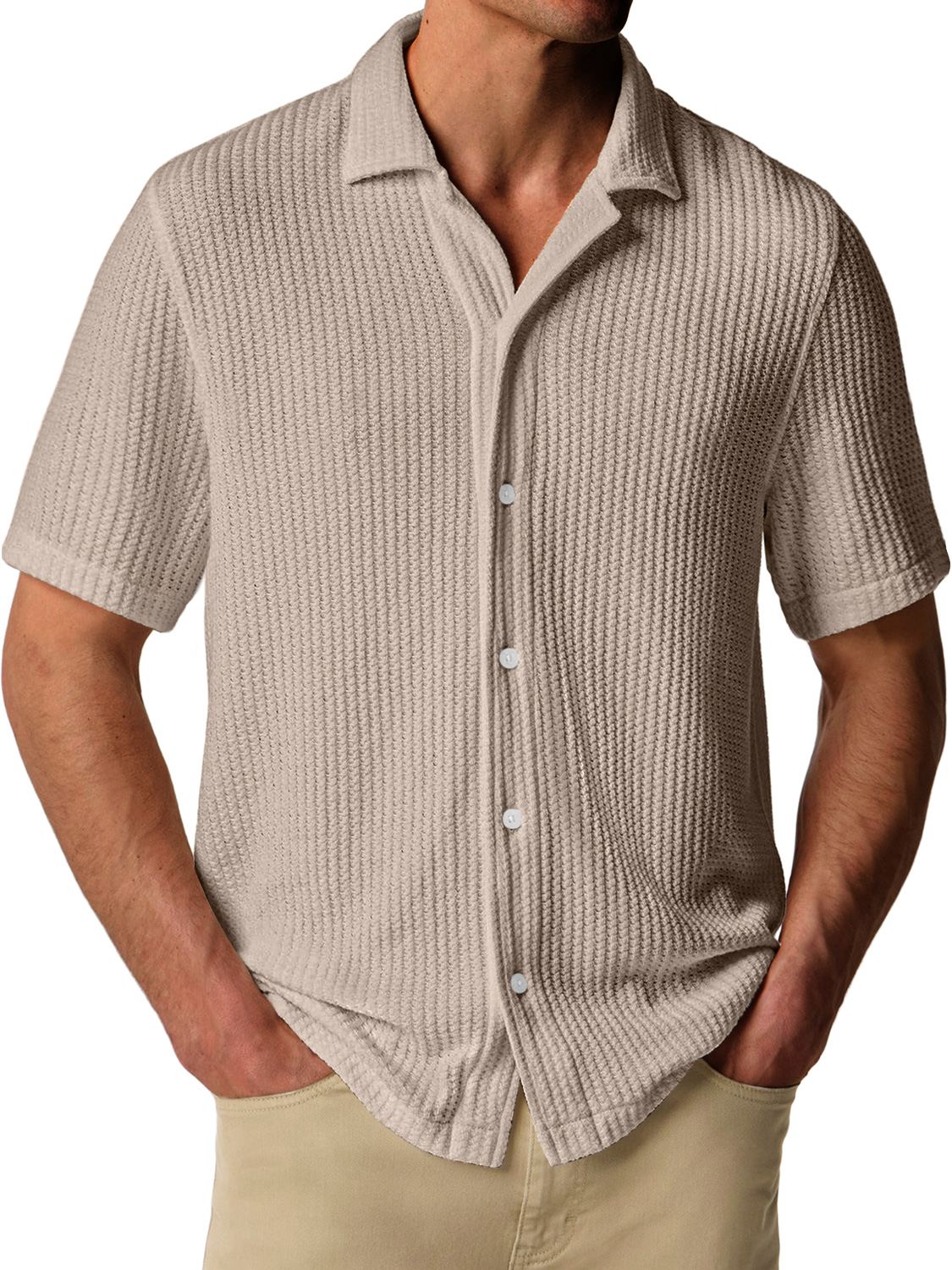 • Men's Daily Texture Lapel Casual Comfort Short Sleeve Shirt
