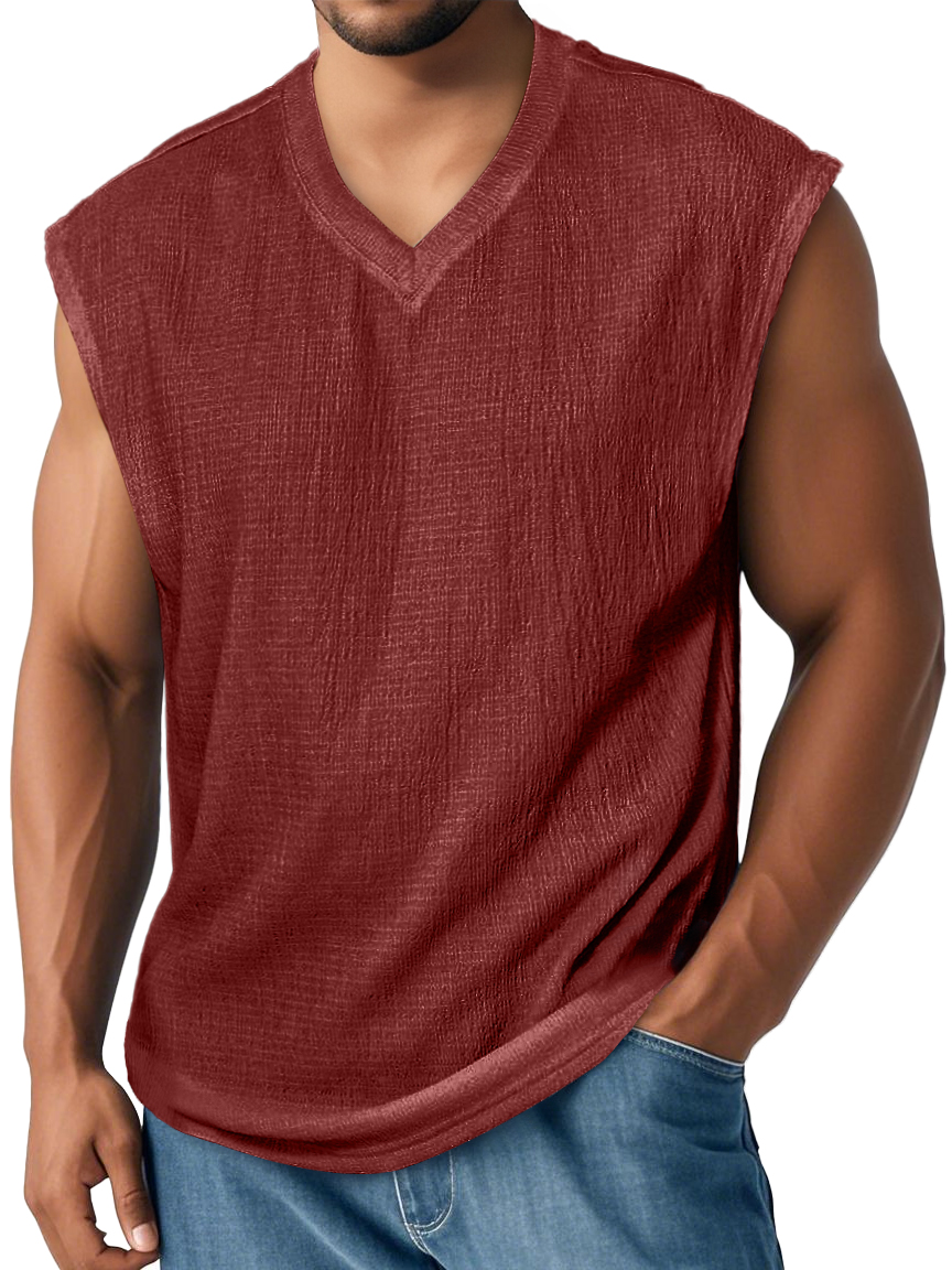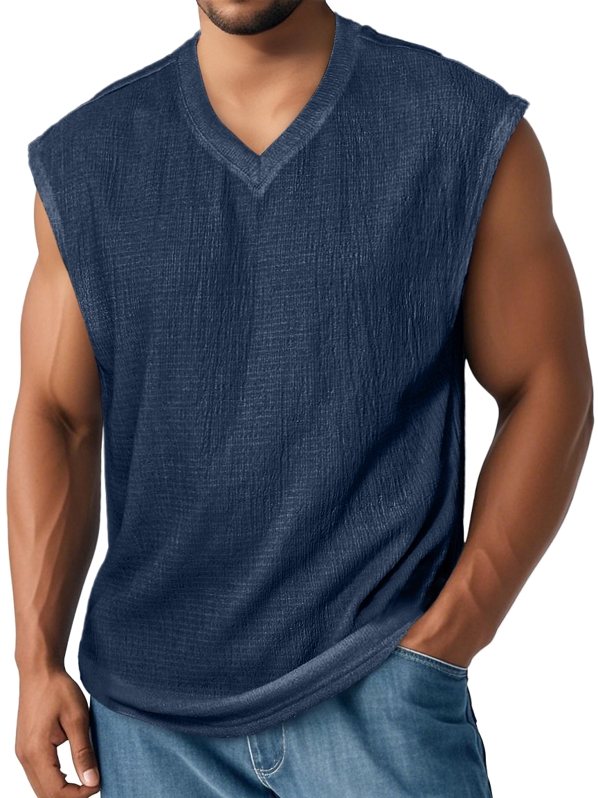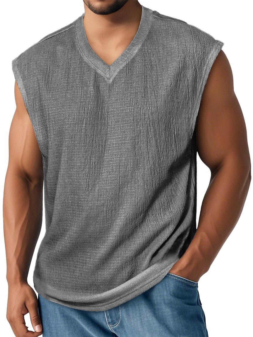 • Men's Daily V-neck Textured Casual Comfortable Sleeveless Vest