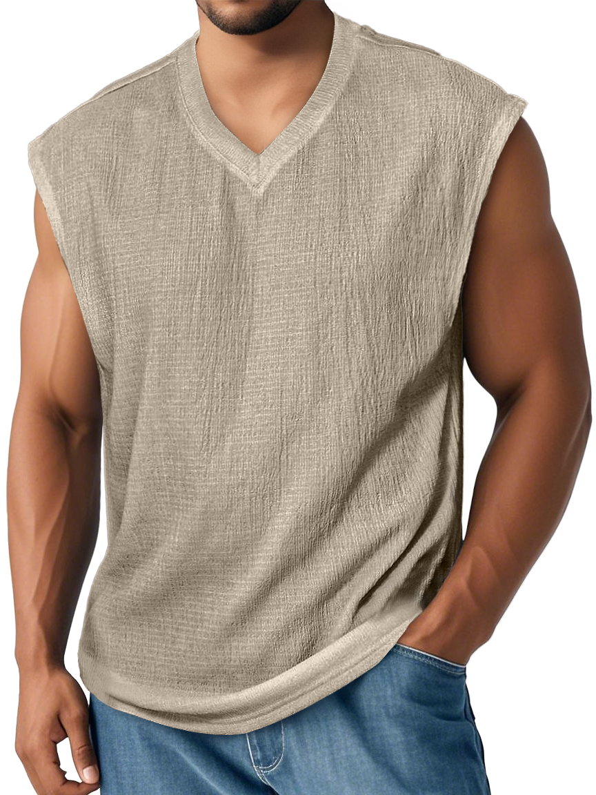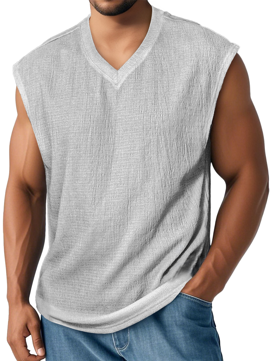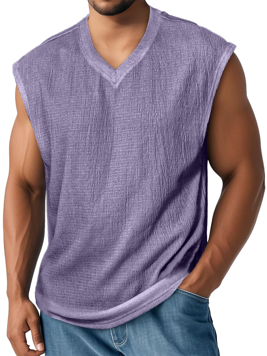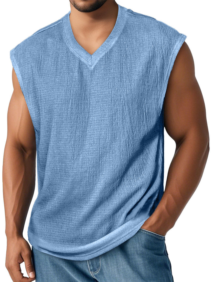 • Men's Daily V-neck Textured Casual Comfortable Sleeveless Vest