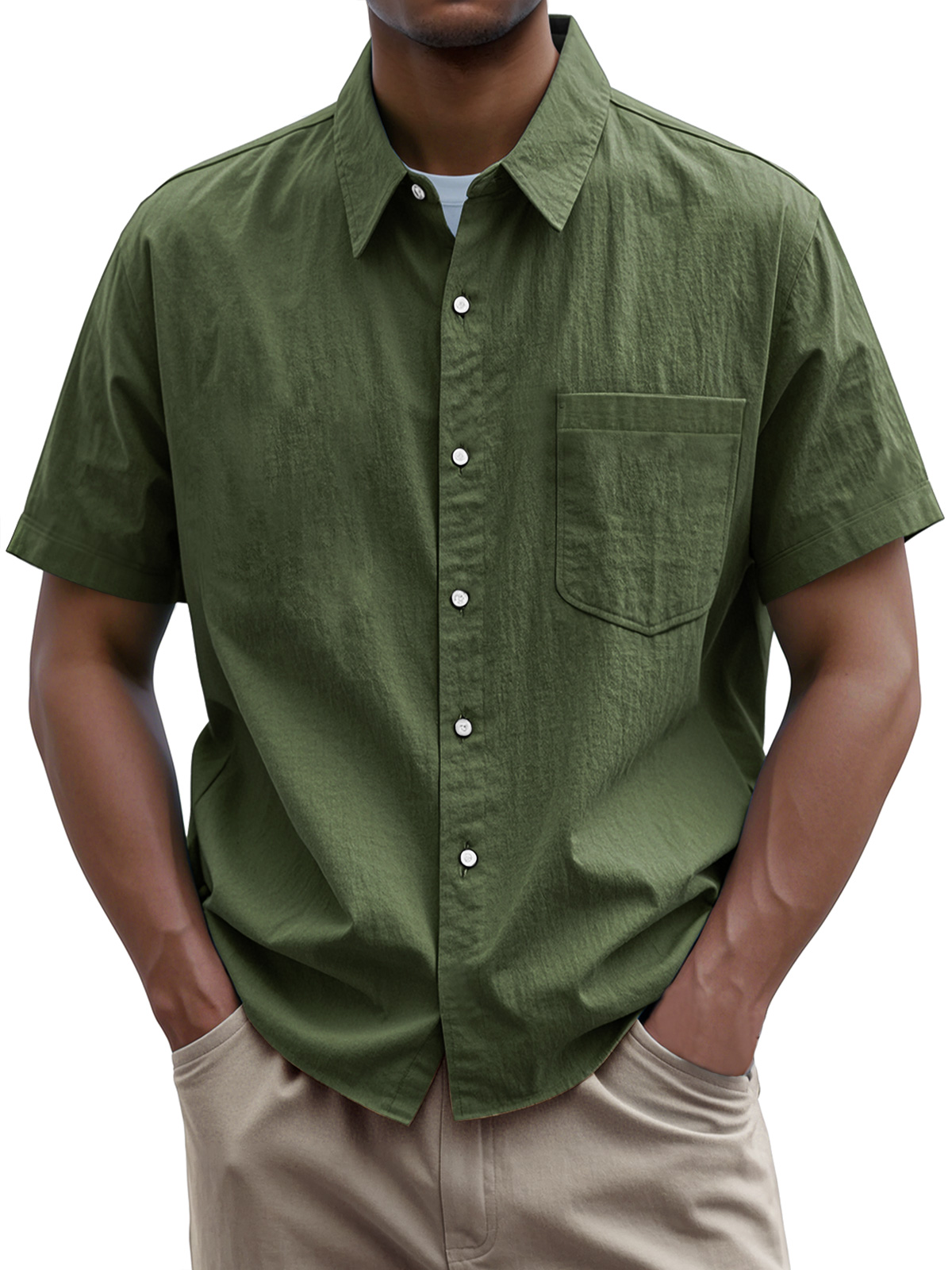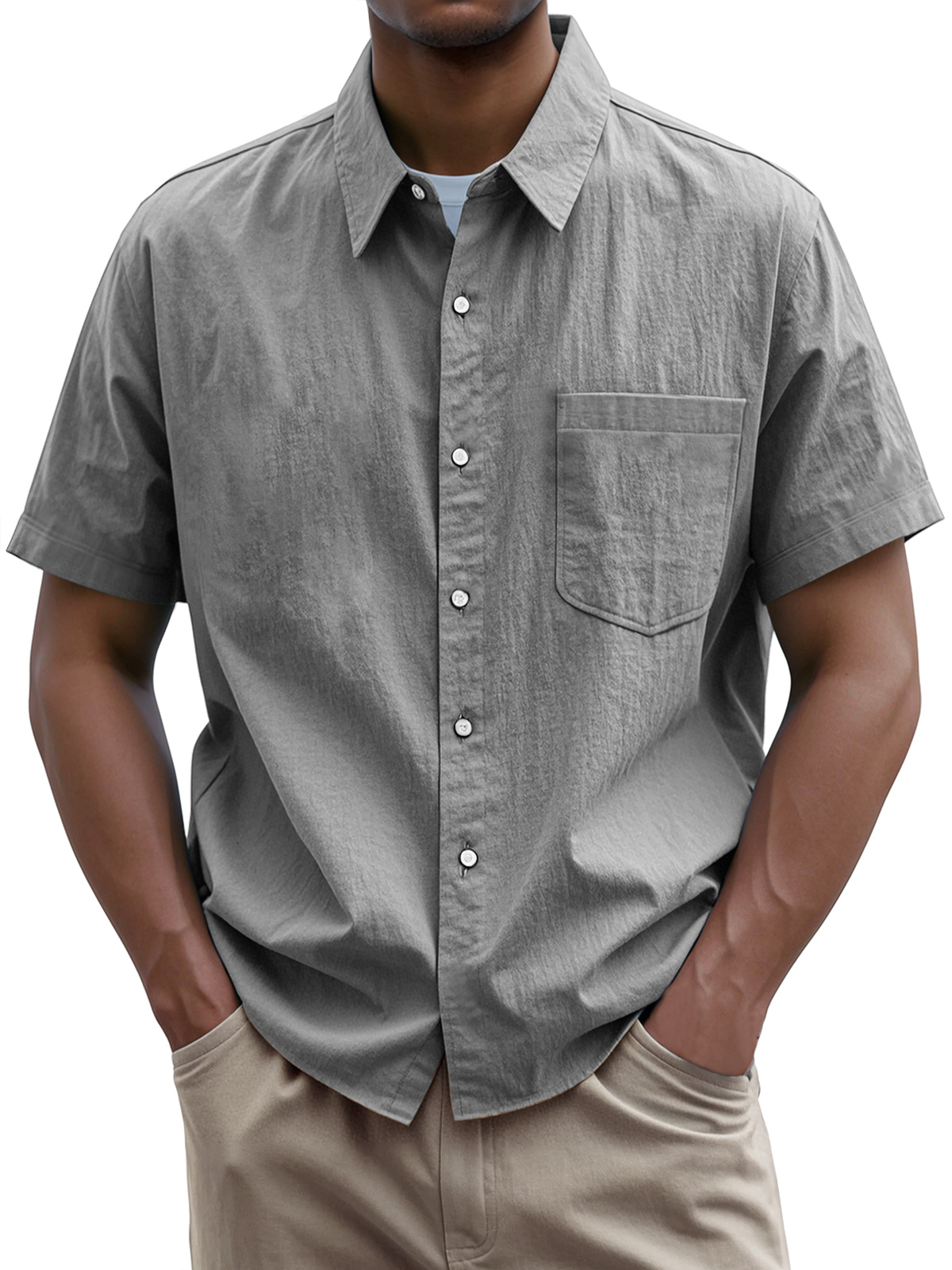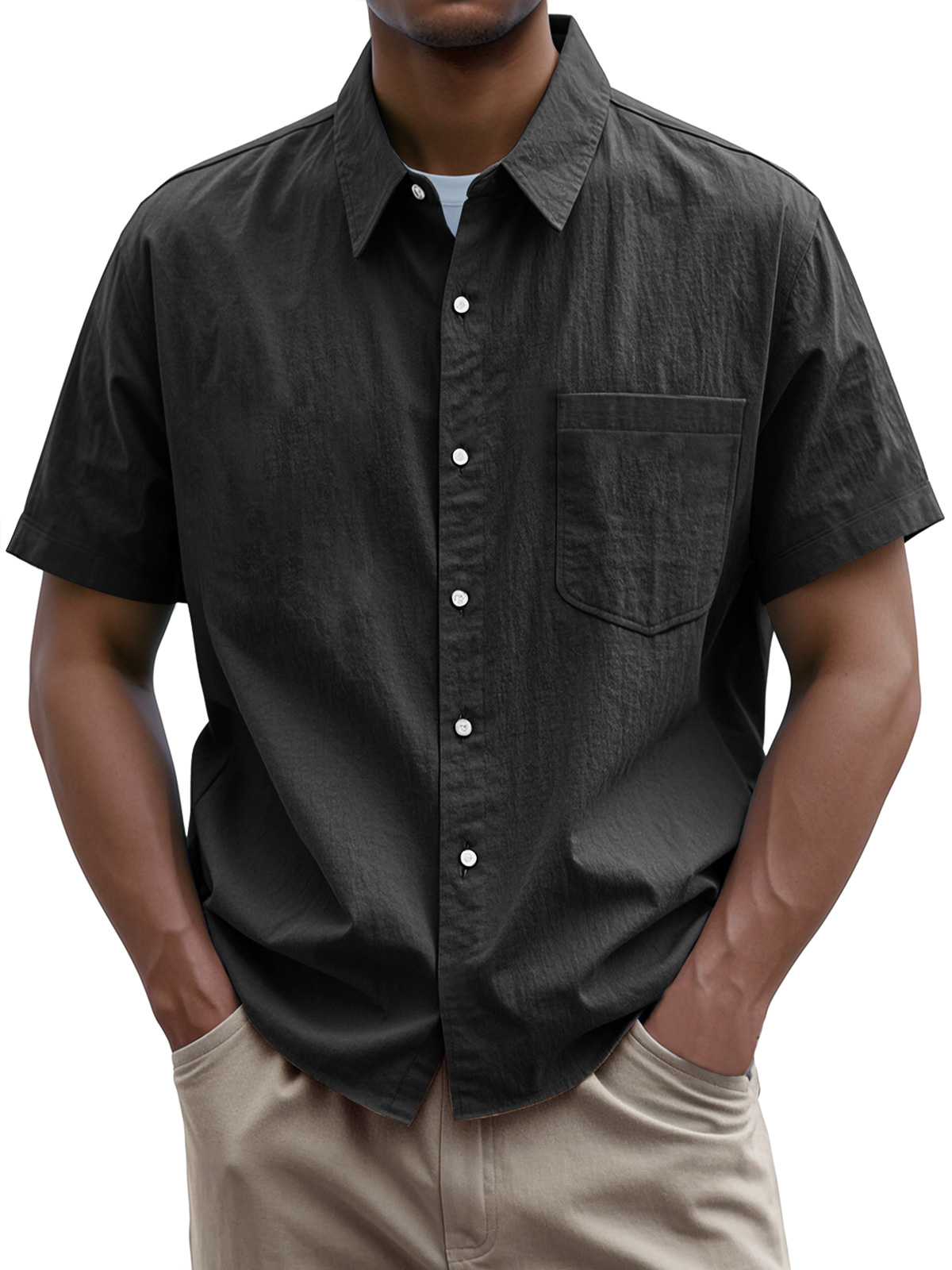 • Men's Everyday Casual Lapel Pocket Solid Color Short Sleeve Shirt