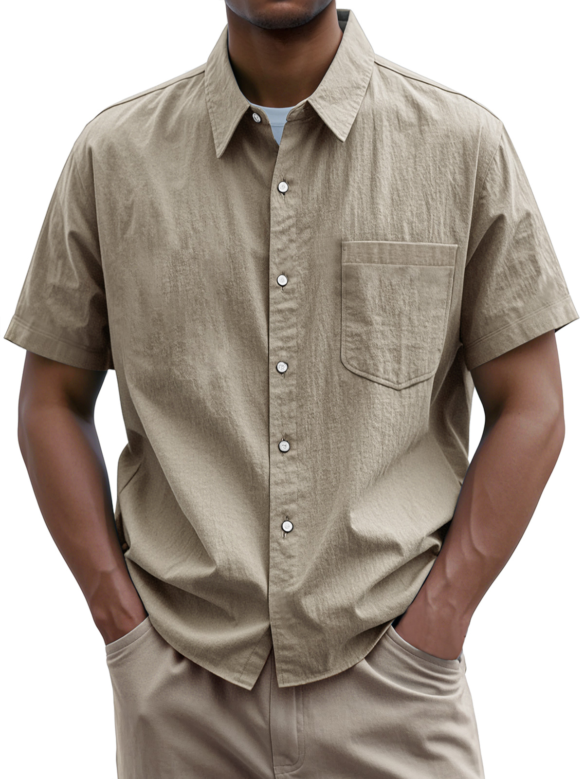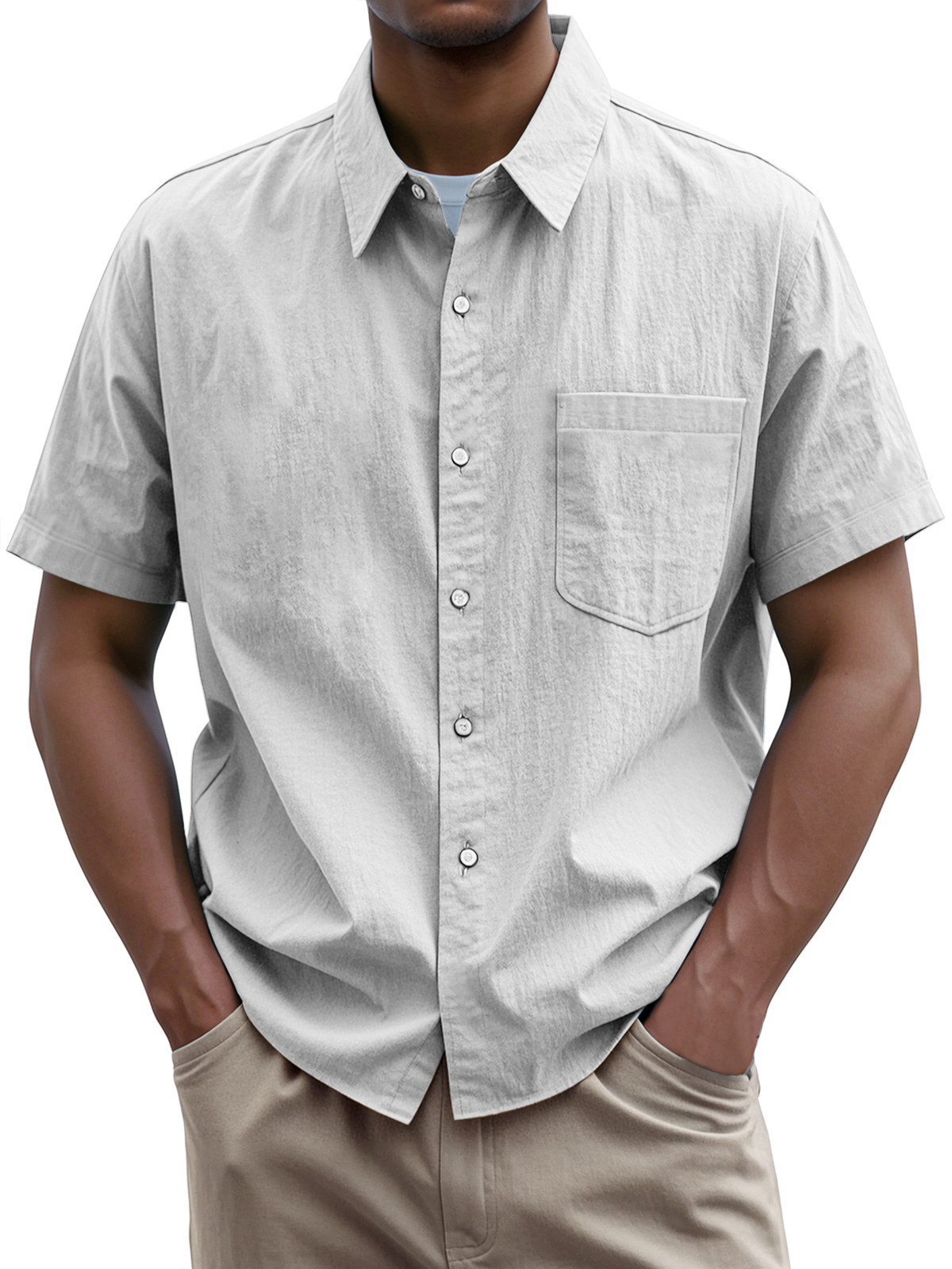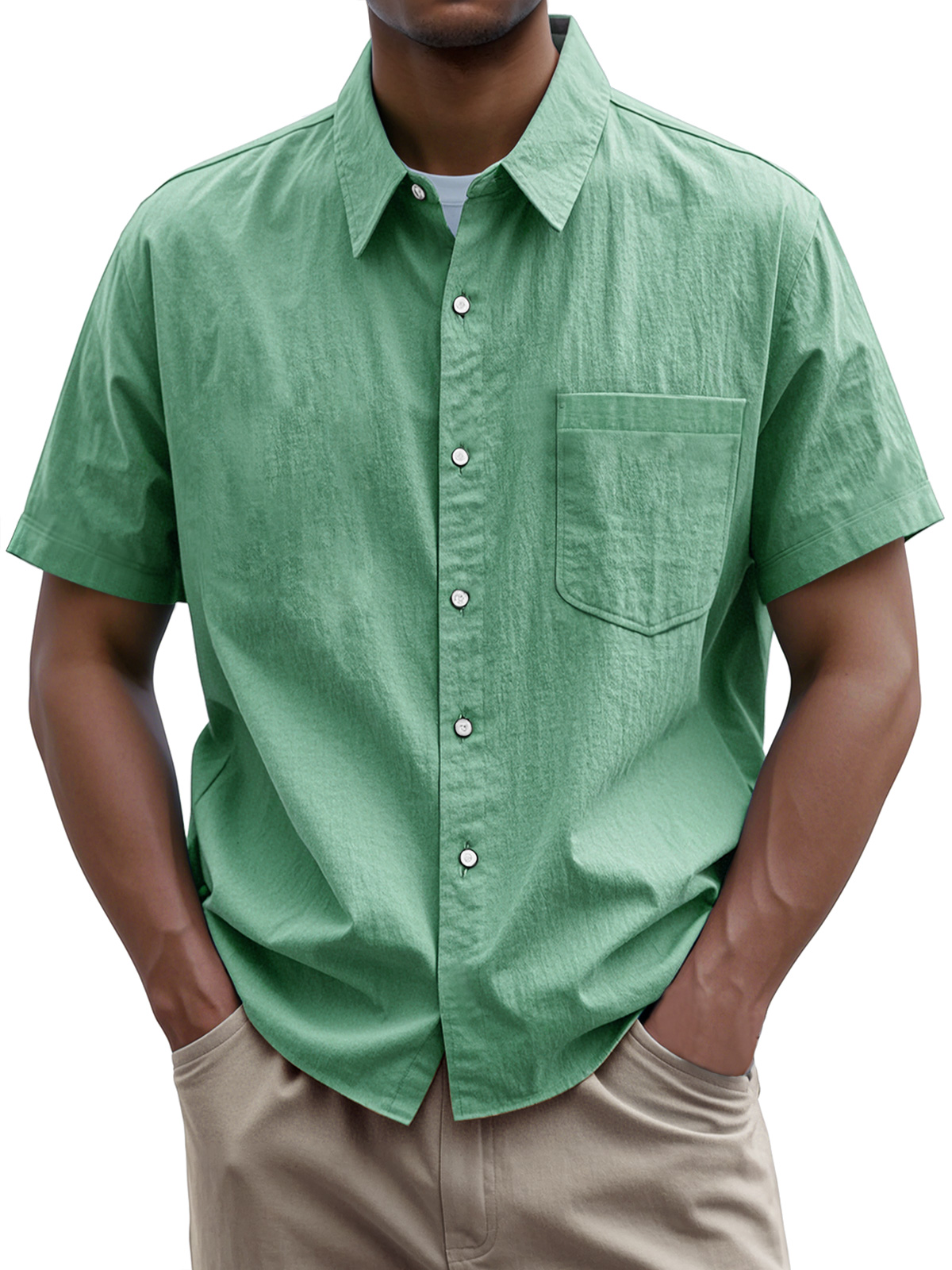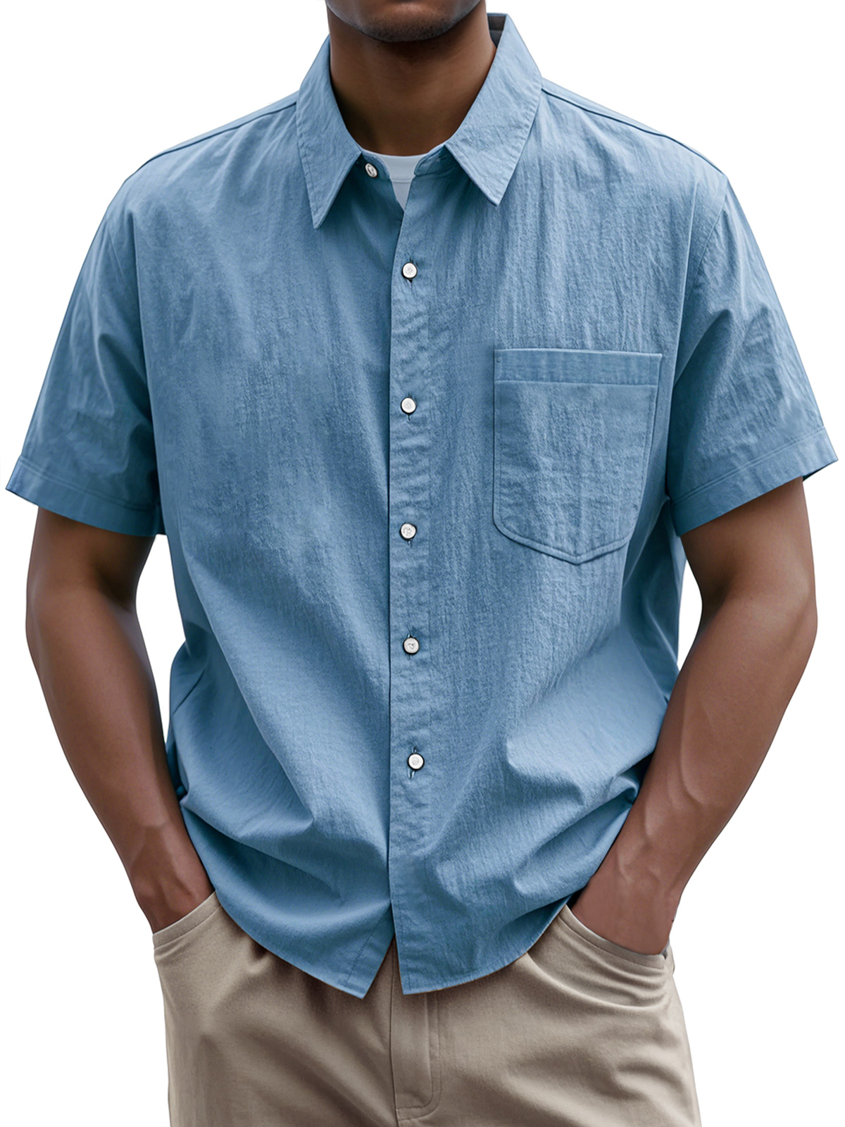 • Men's Everyday Casual Lapel Pocket Solid Color Short Sleeve Shirt