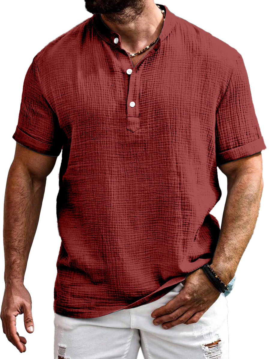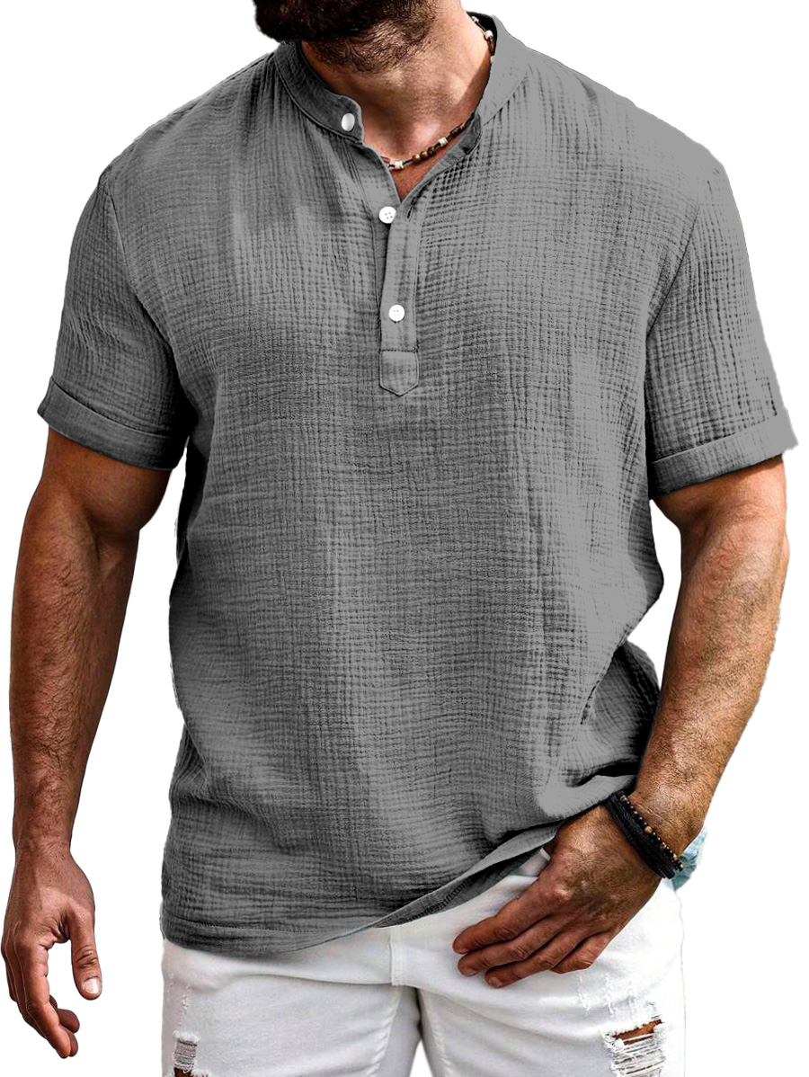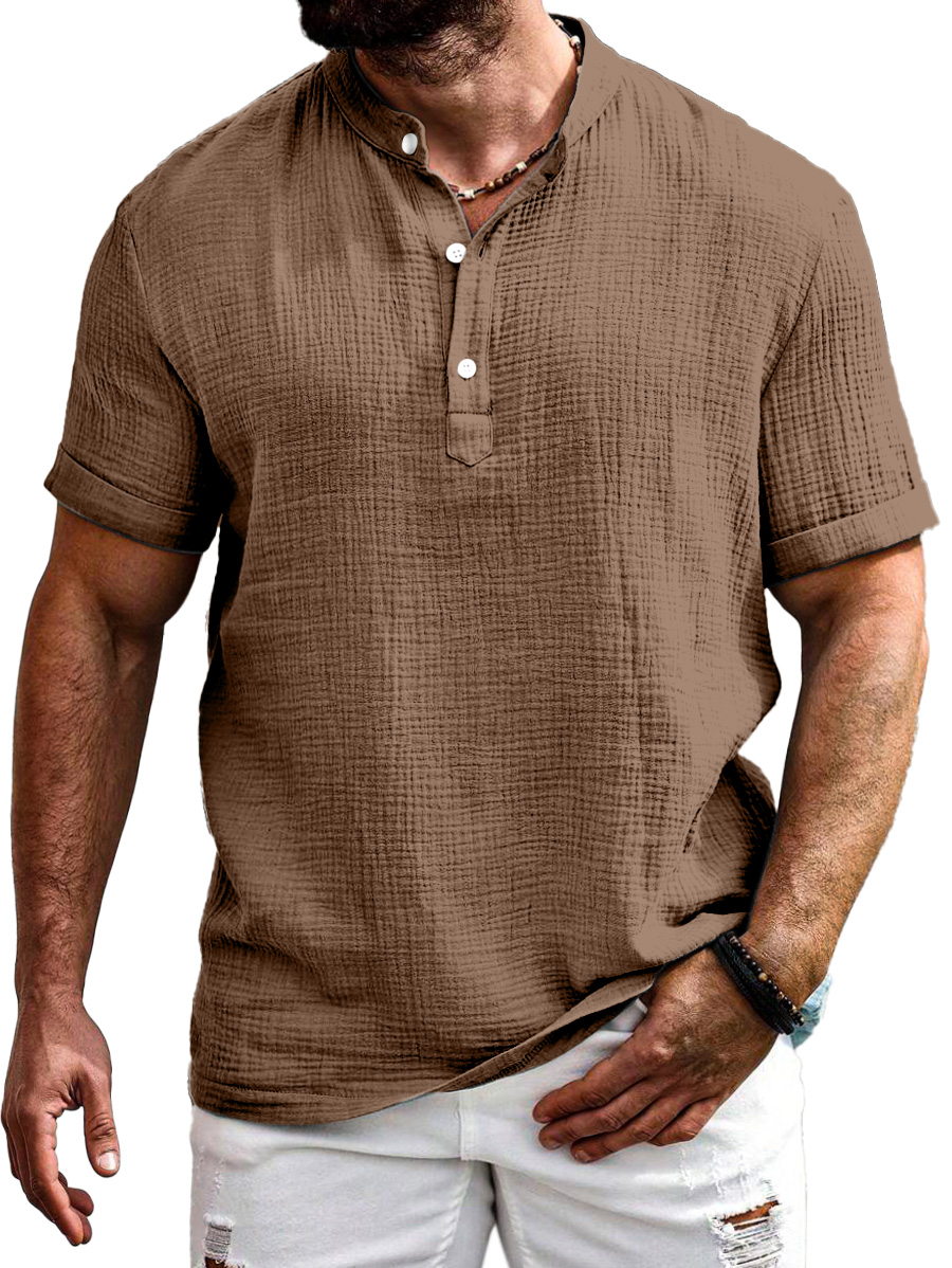 Men's Everyday Solid Color Texture Short-sleeved Half-open Collar Henley Shirt