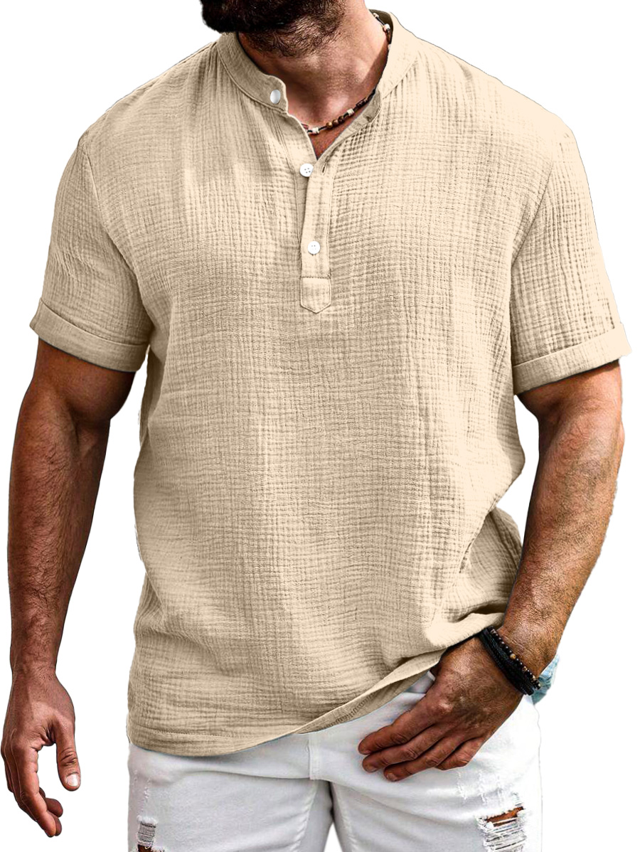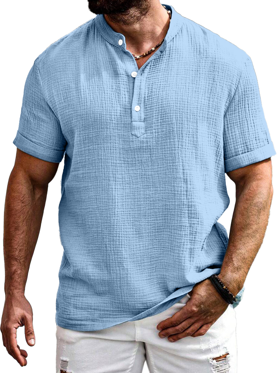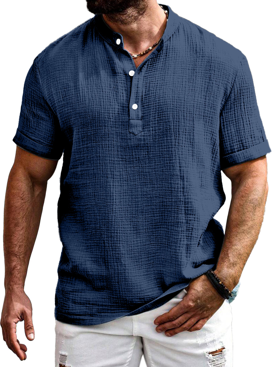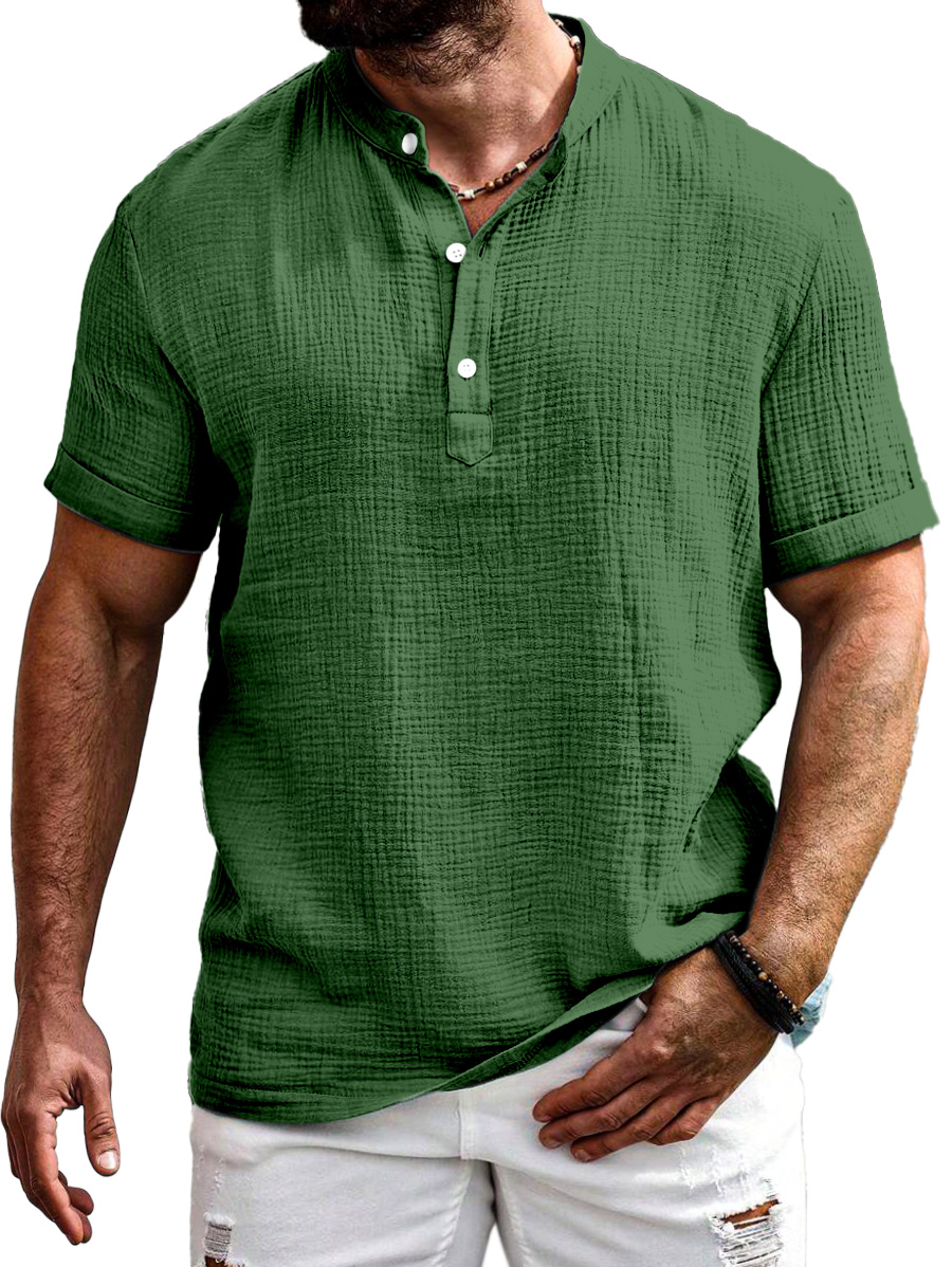 Men's Everyday Solid Color Texture Short-sleeved Half-open Collar Henley Shirt