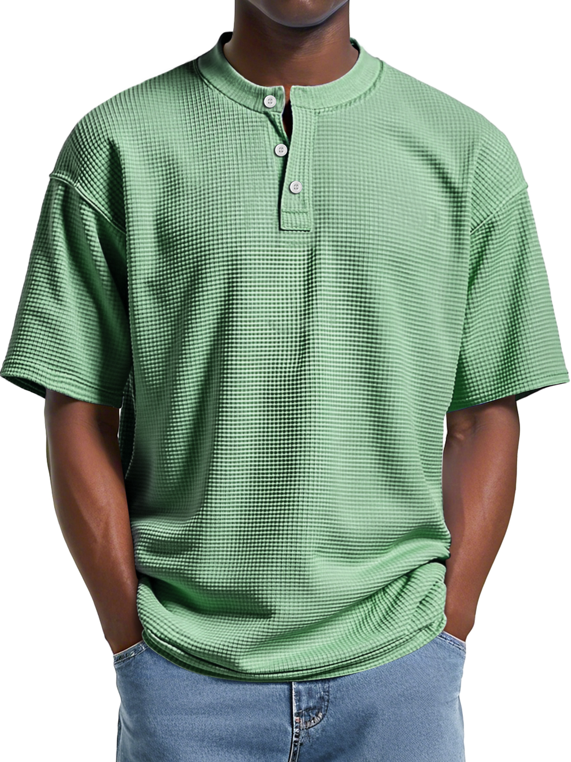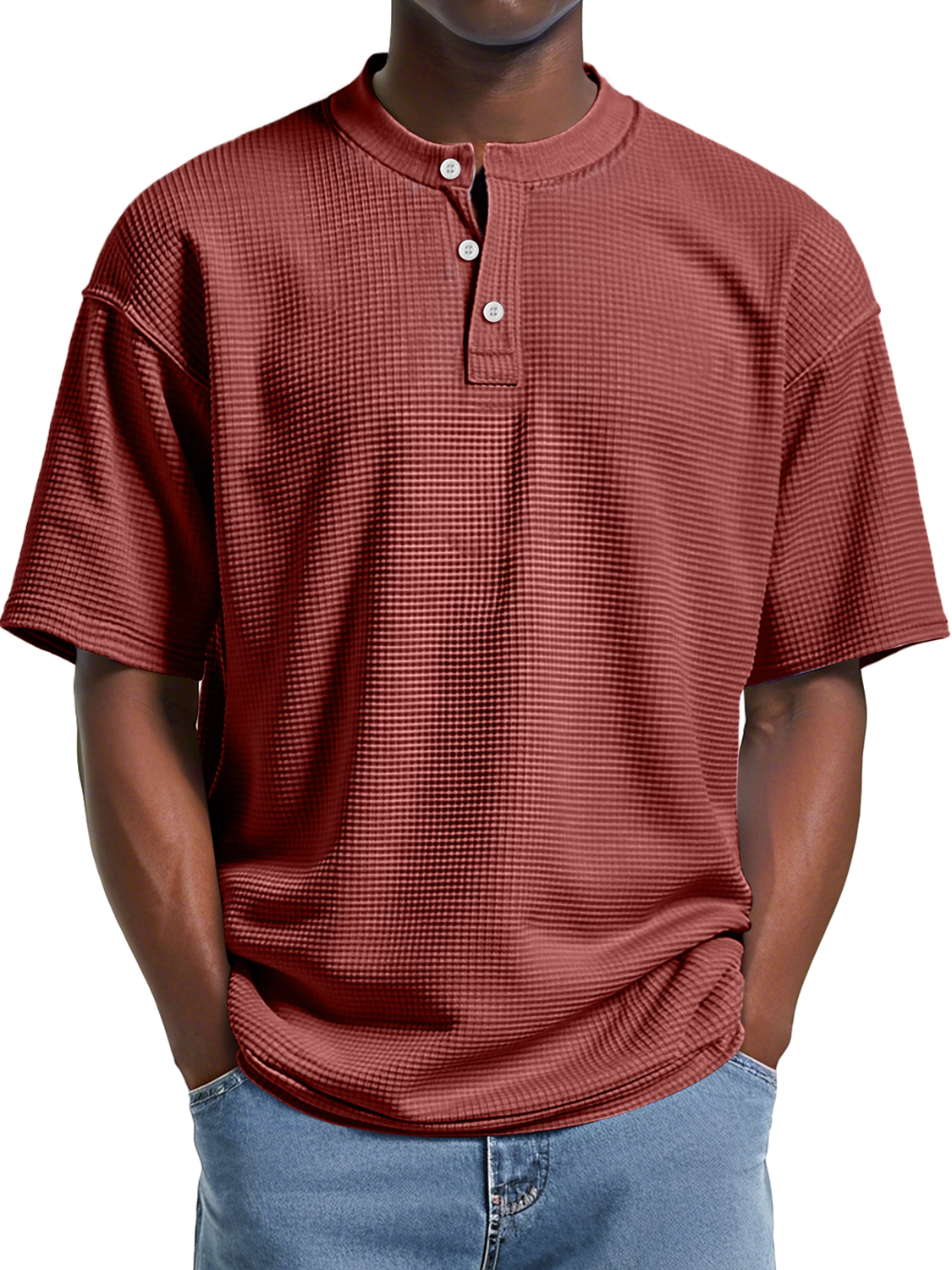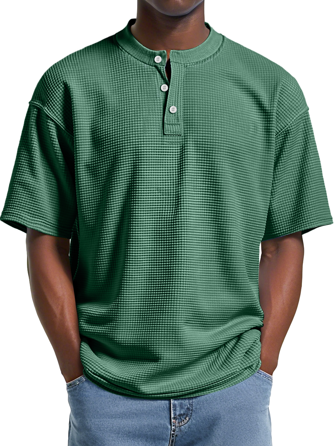 Men's Everyday Waffle Casual Comfort Short Sleeve Henley