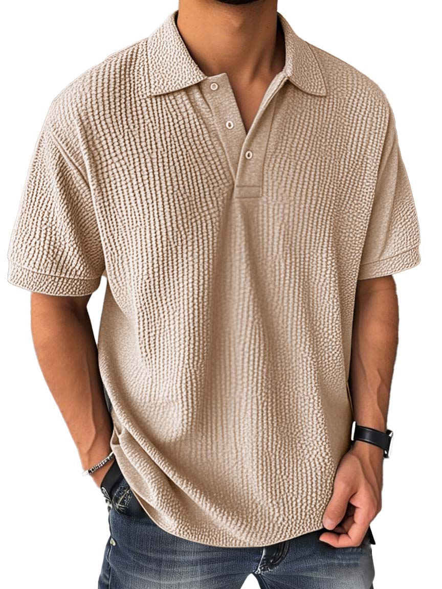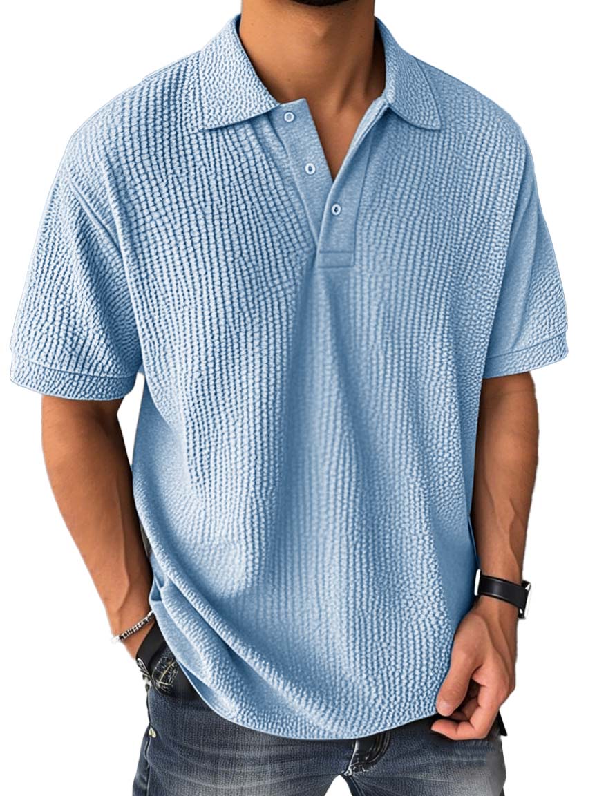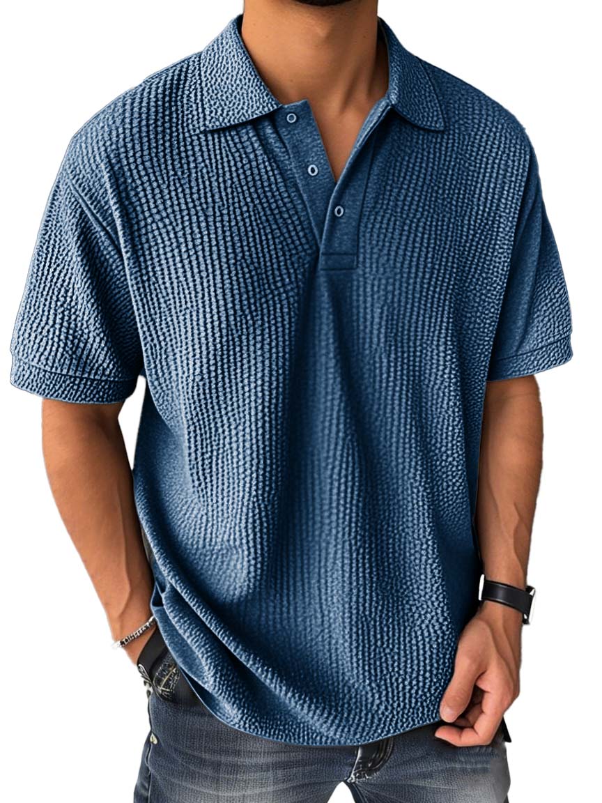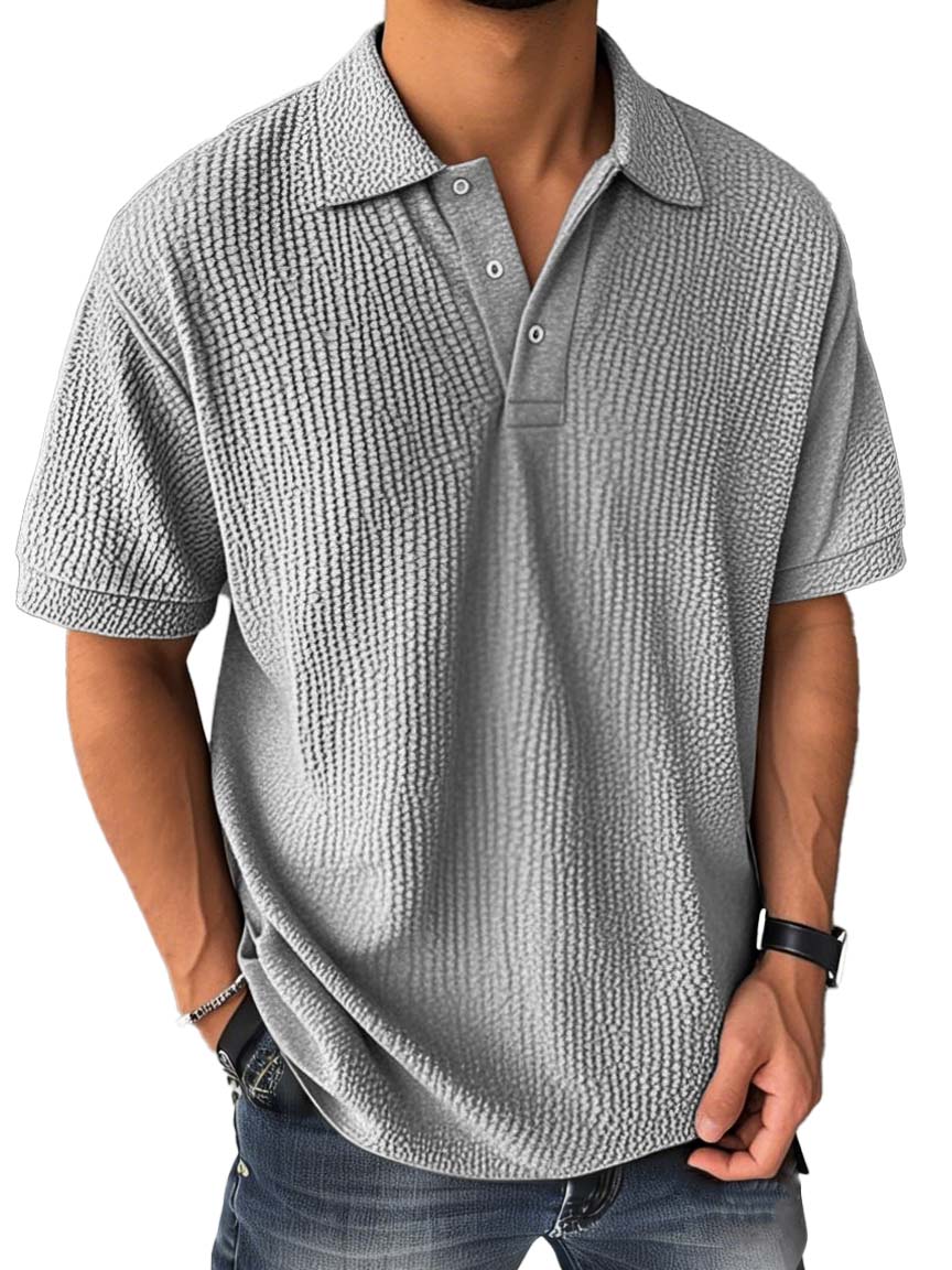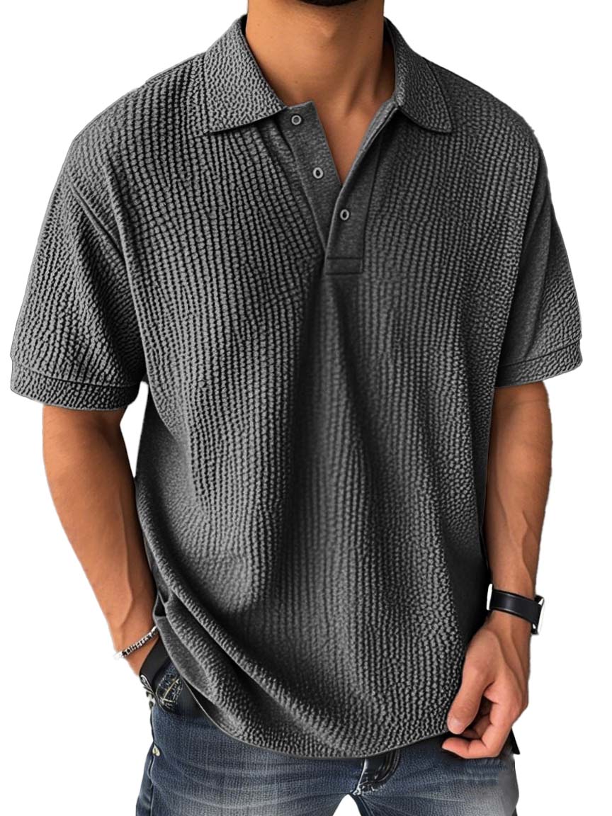 • Men's Fashion Casual Bubble Wrinkled Fabric Short-sleeved Polo Shirt