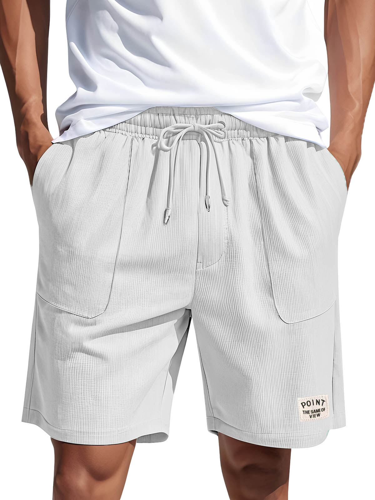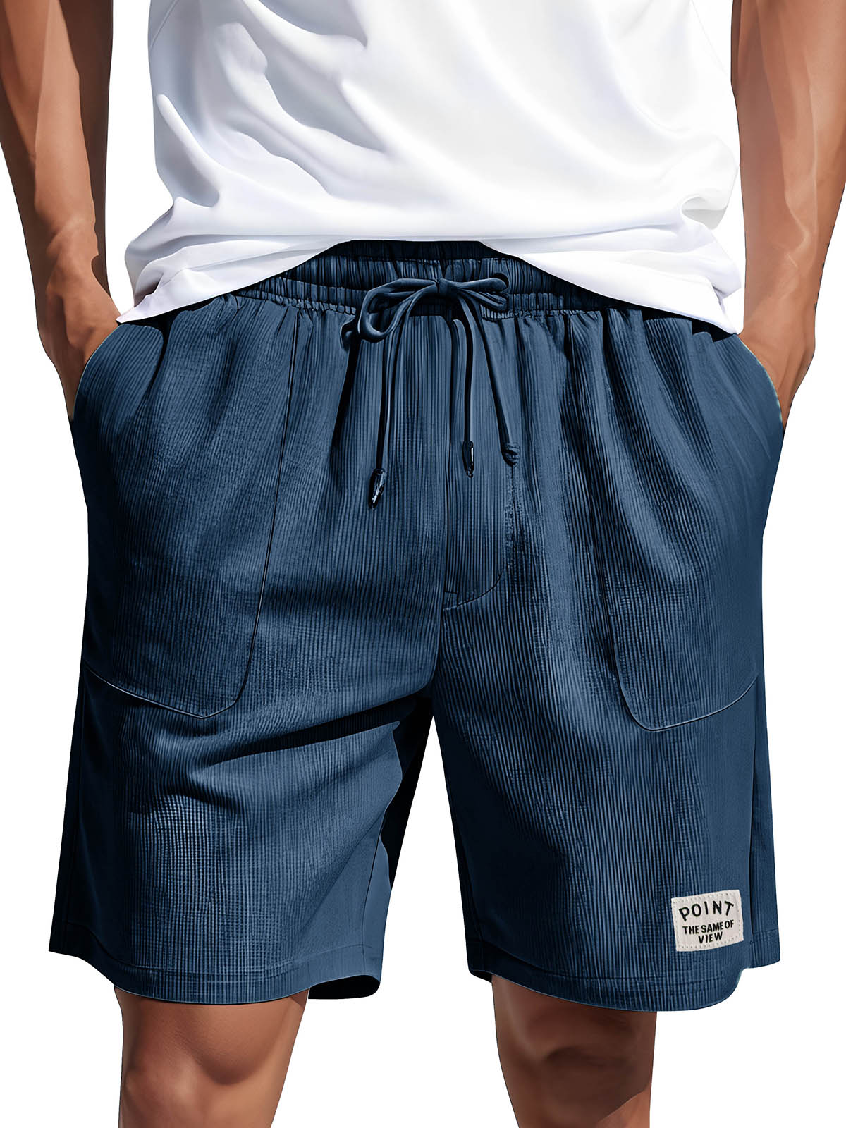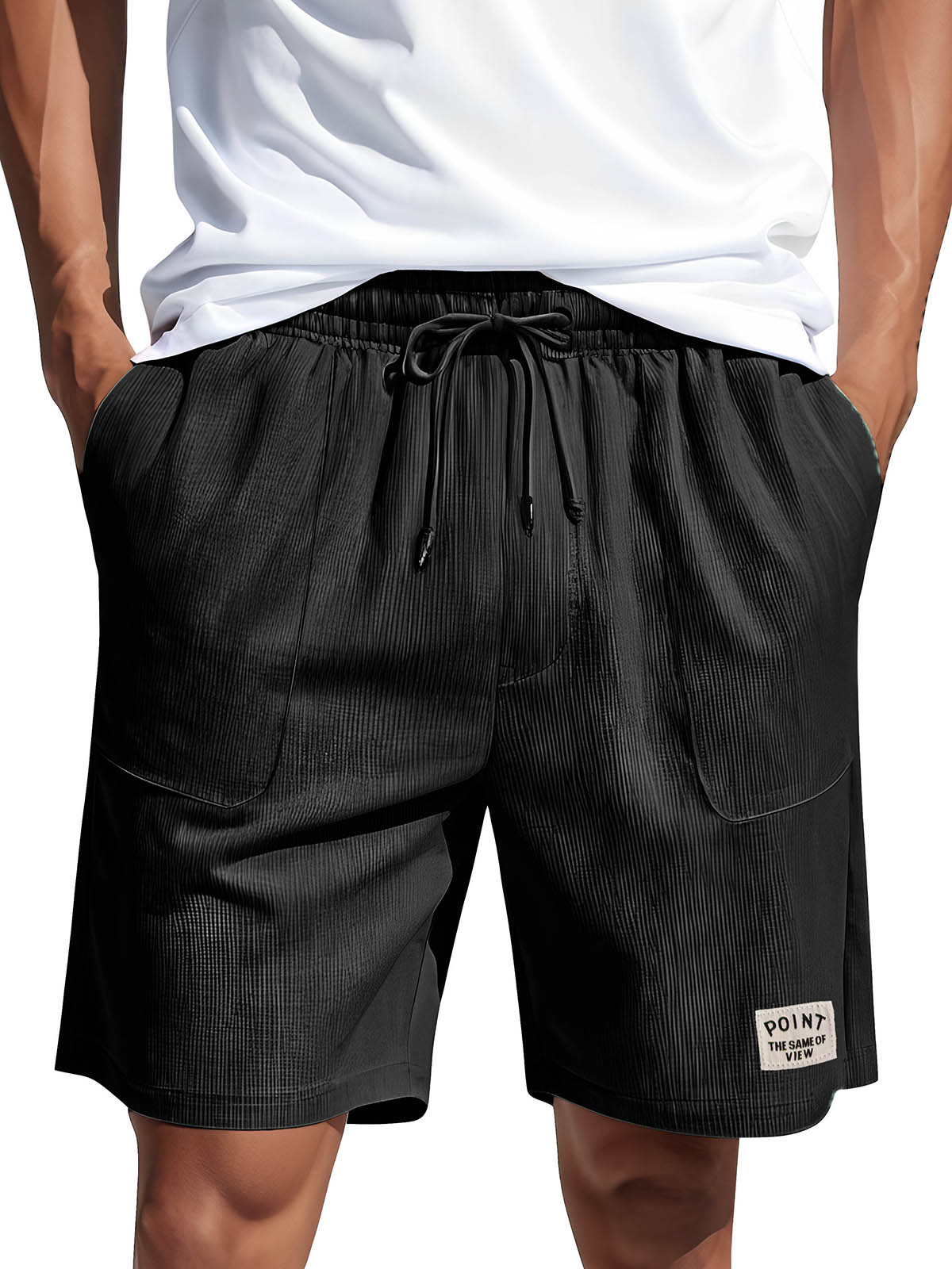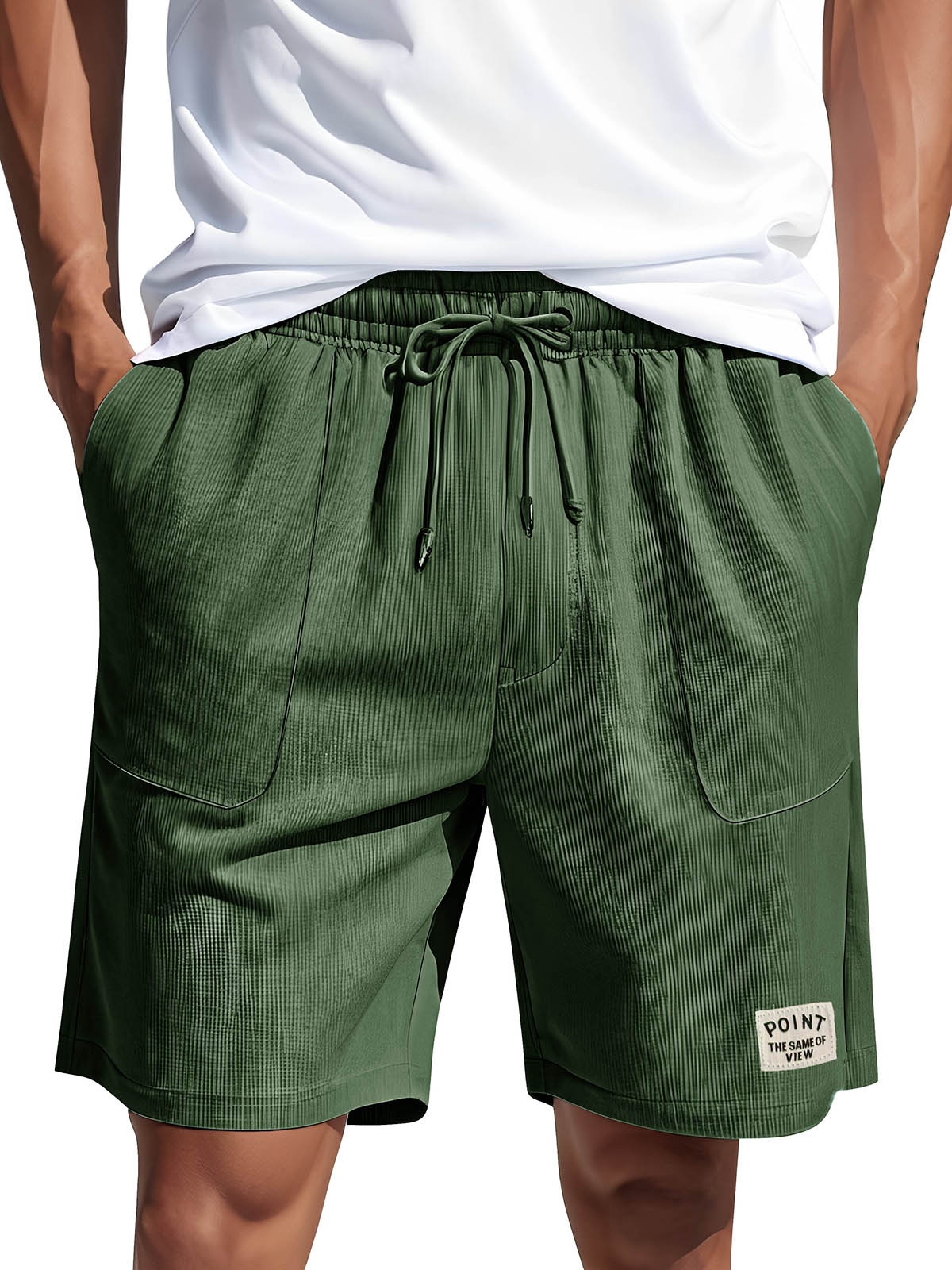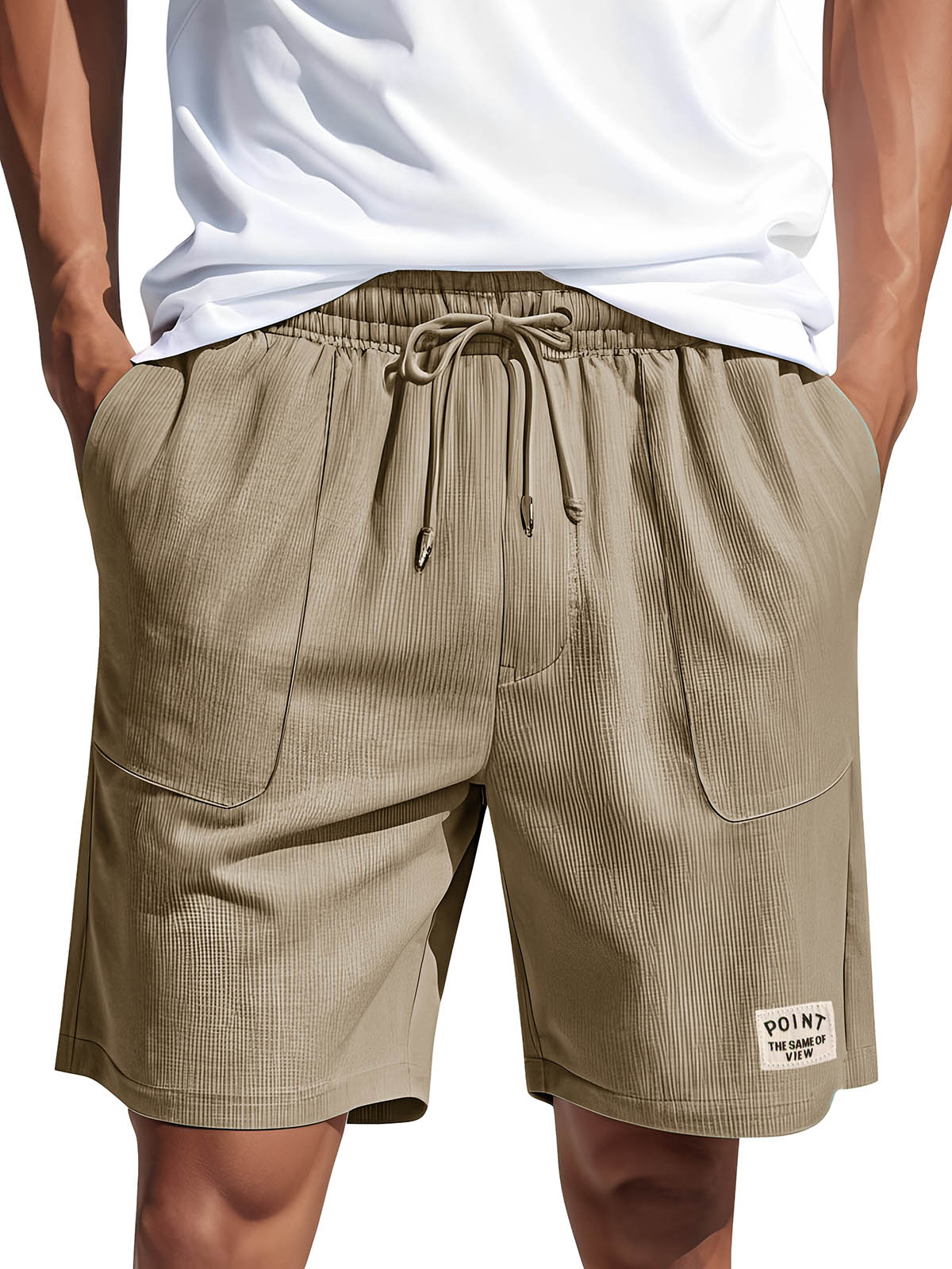 • Men's Fashion Casual Corduroy Logo Embroidered Pocket Lace-up Shorts