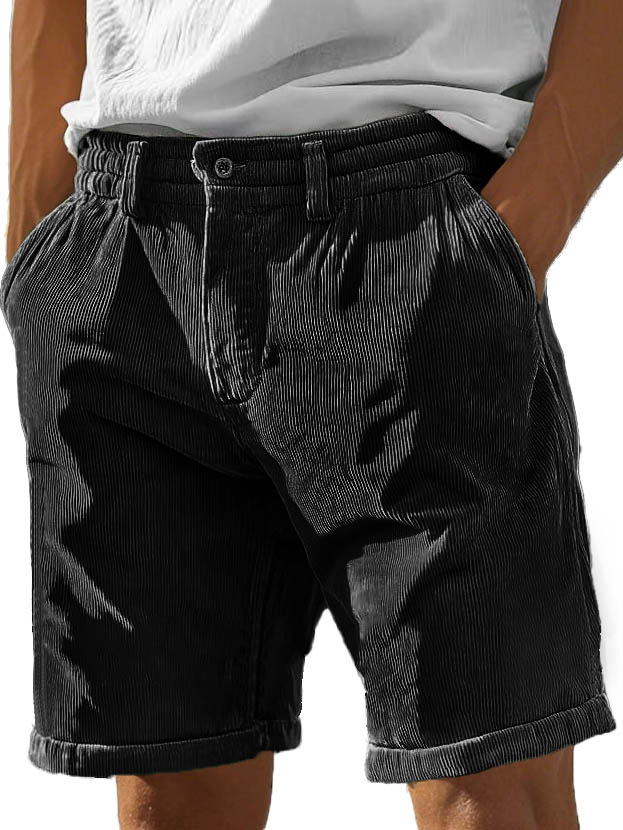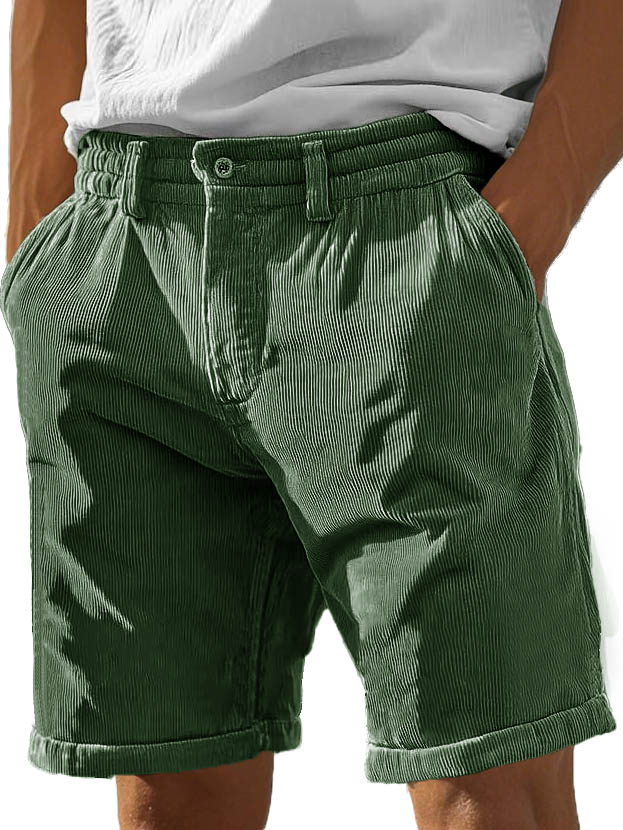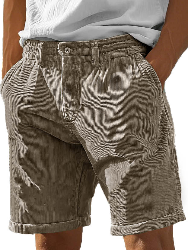 Men's Fashion Casual Corduroy Pocket Lace-up Shorts�