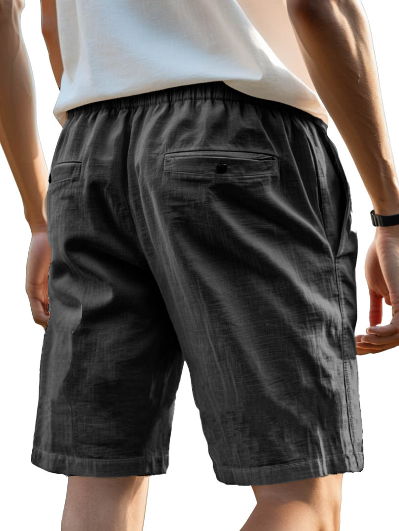 Men's Fashion Casual Retro Hemp Fabric Pocket Shorts�