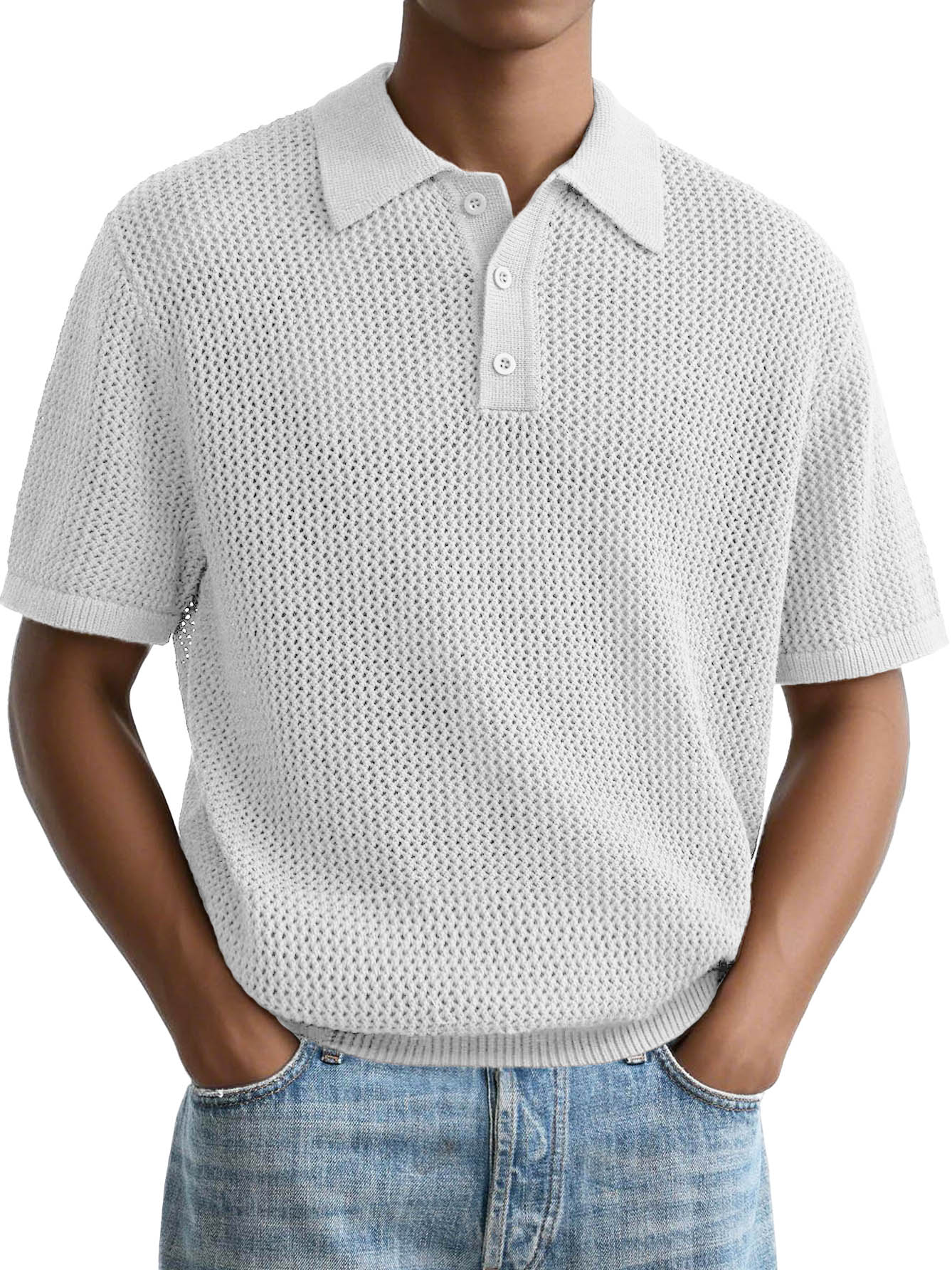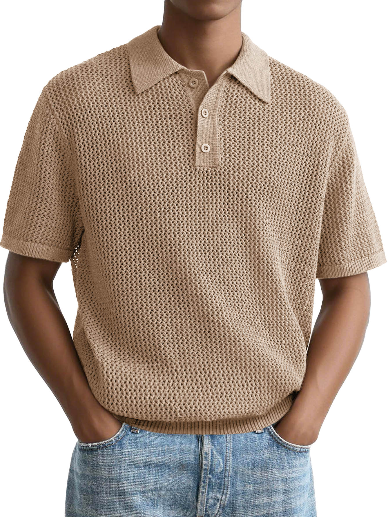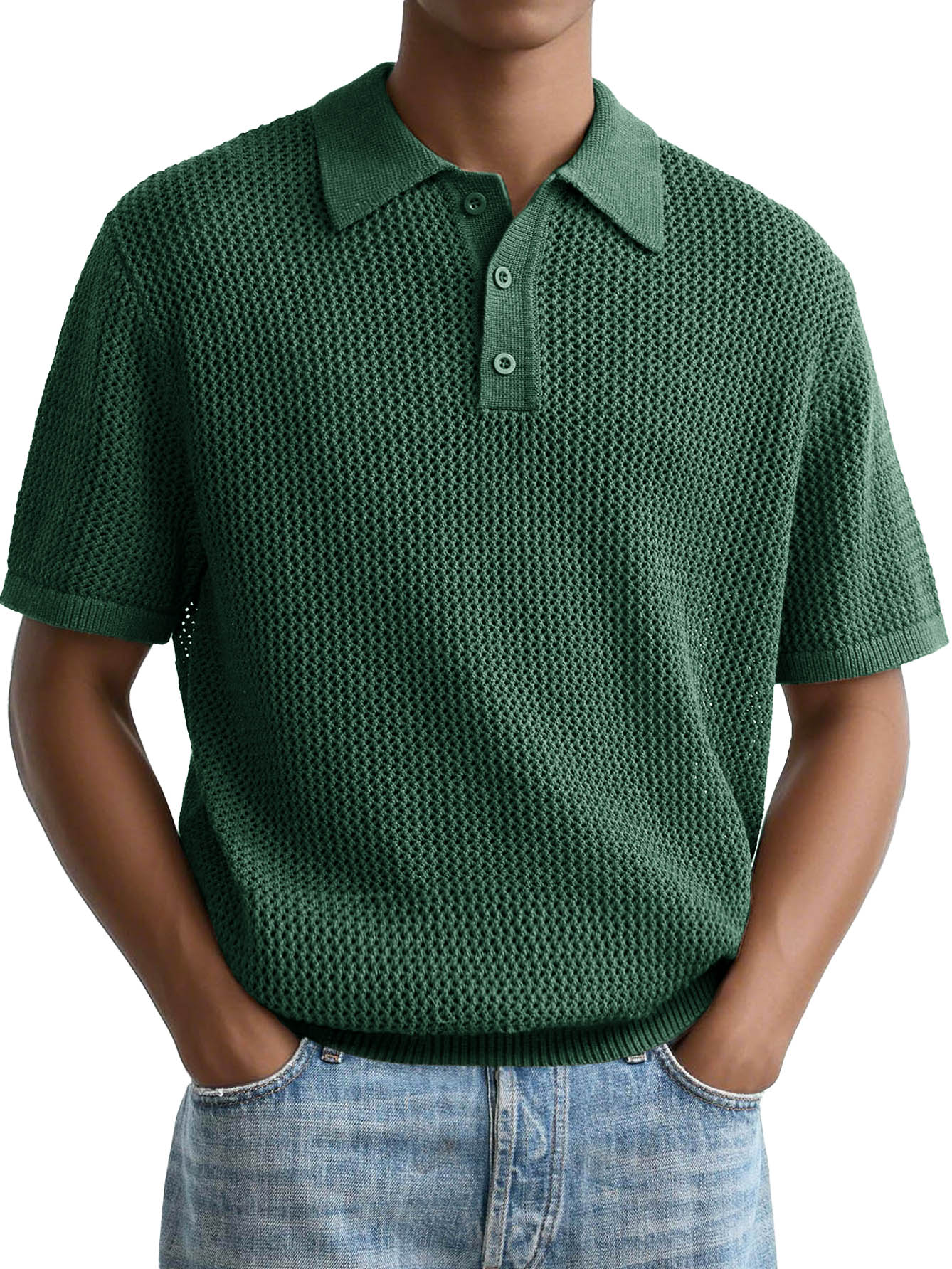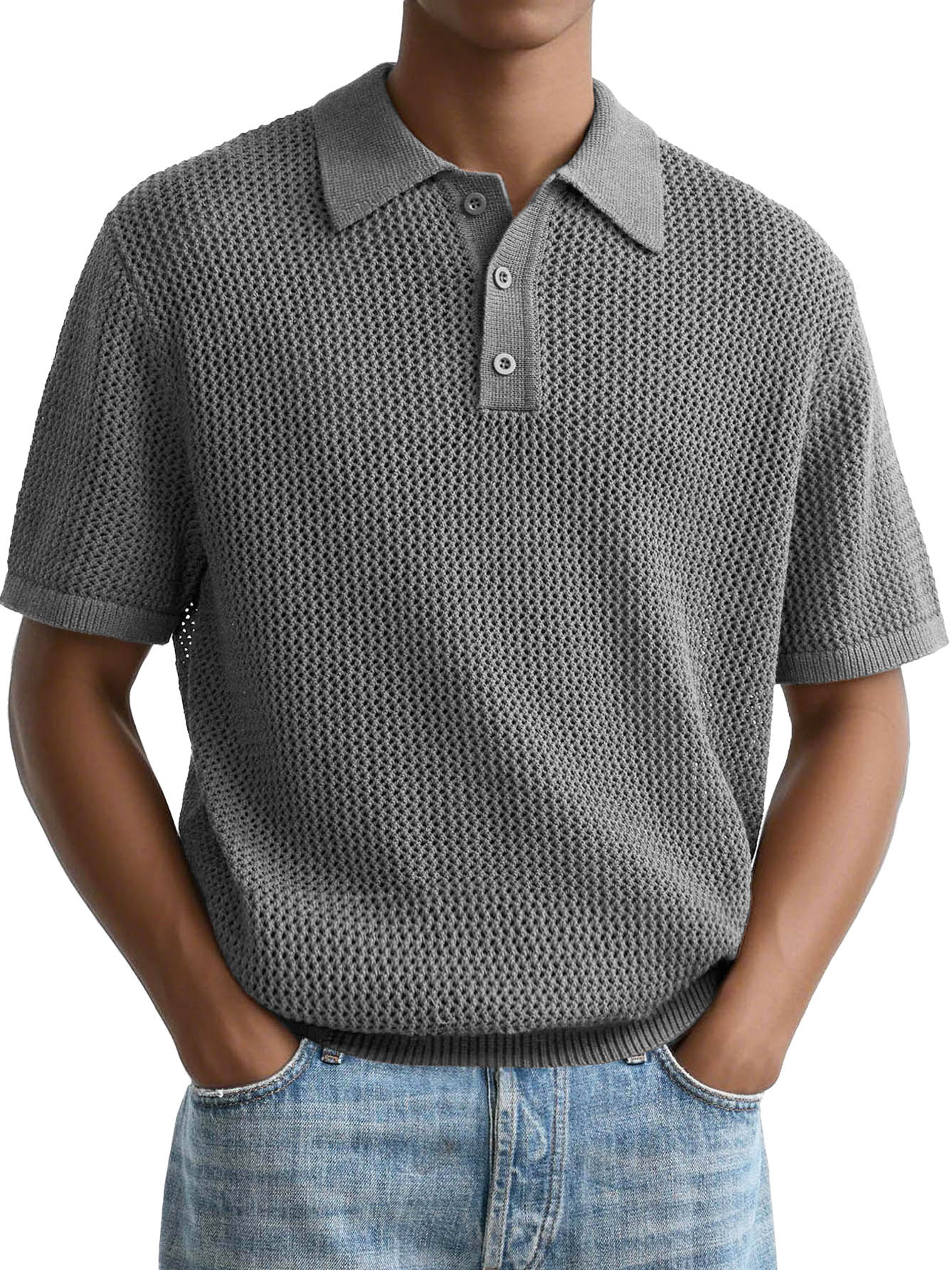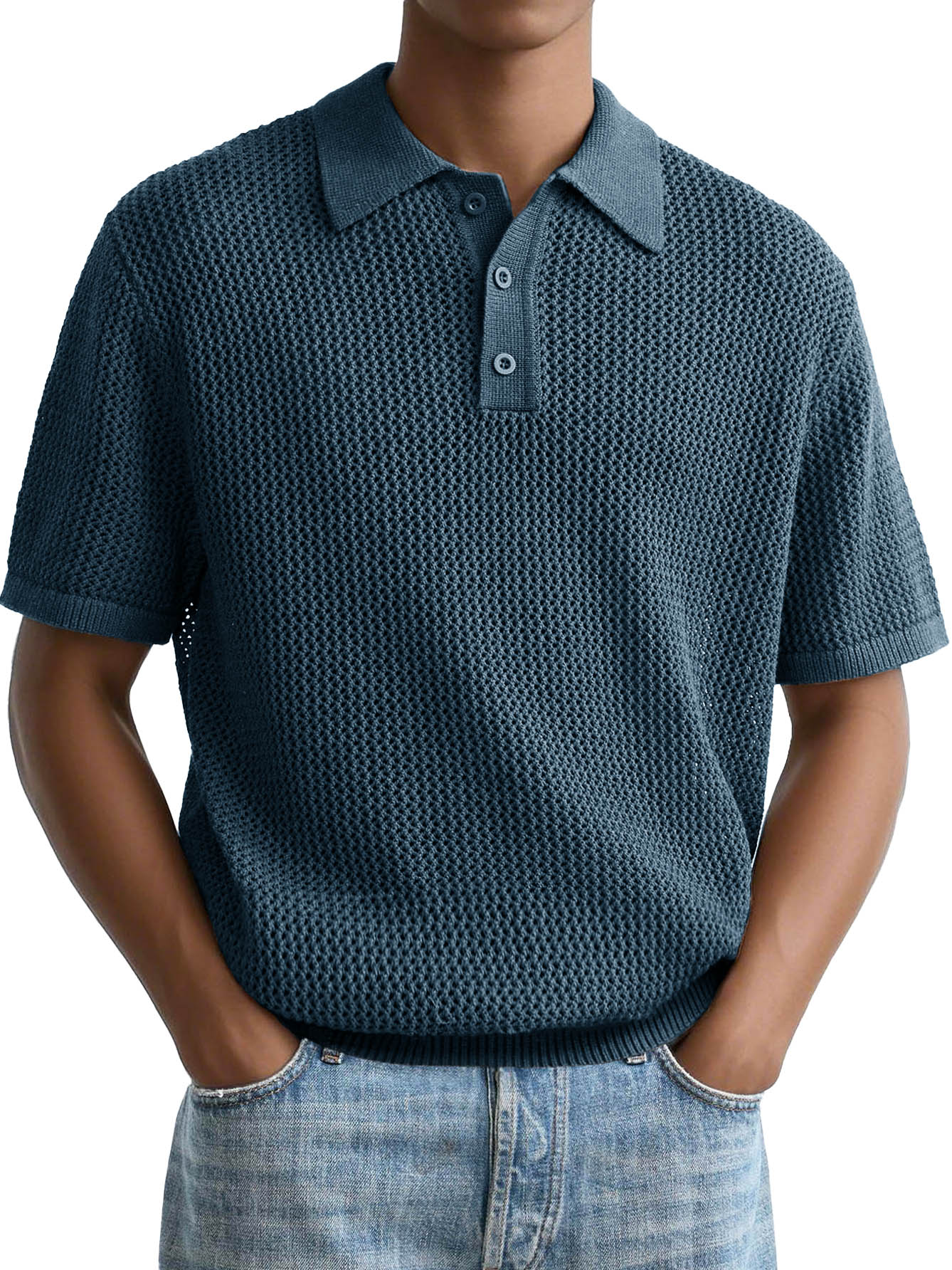 Men's Fashion Casual Retro Texture Fabric Short-sleeved Lapel Polo Shirt