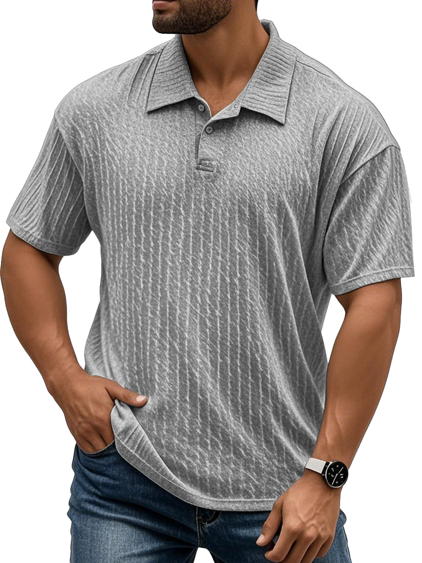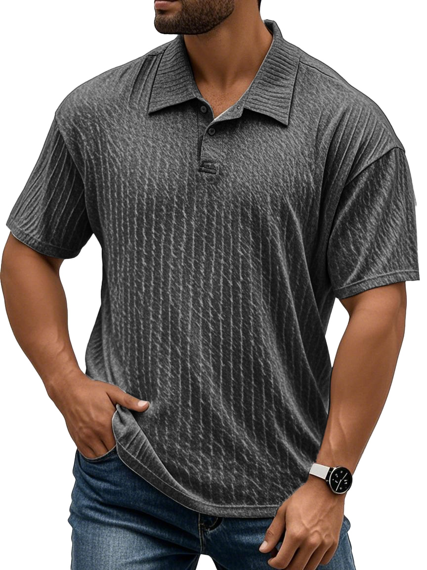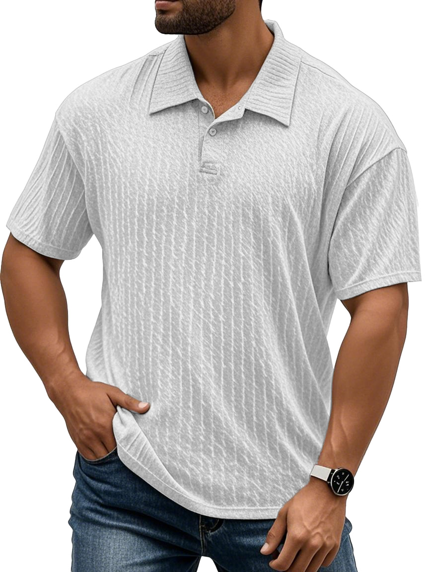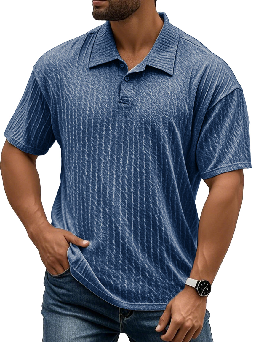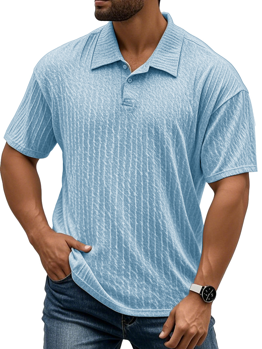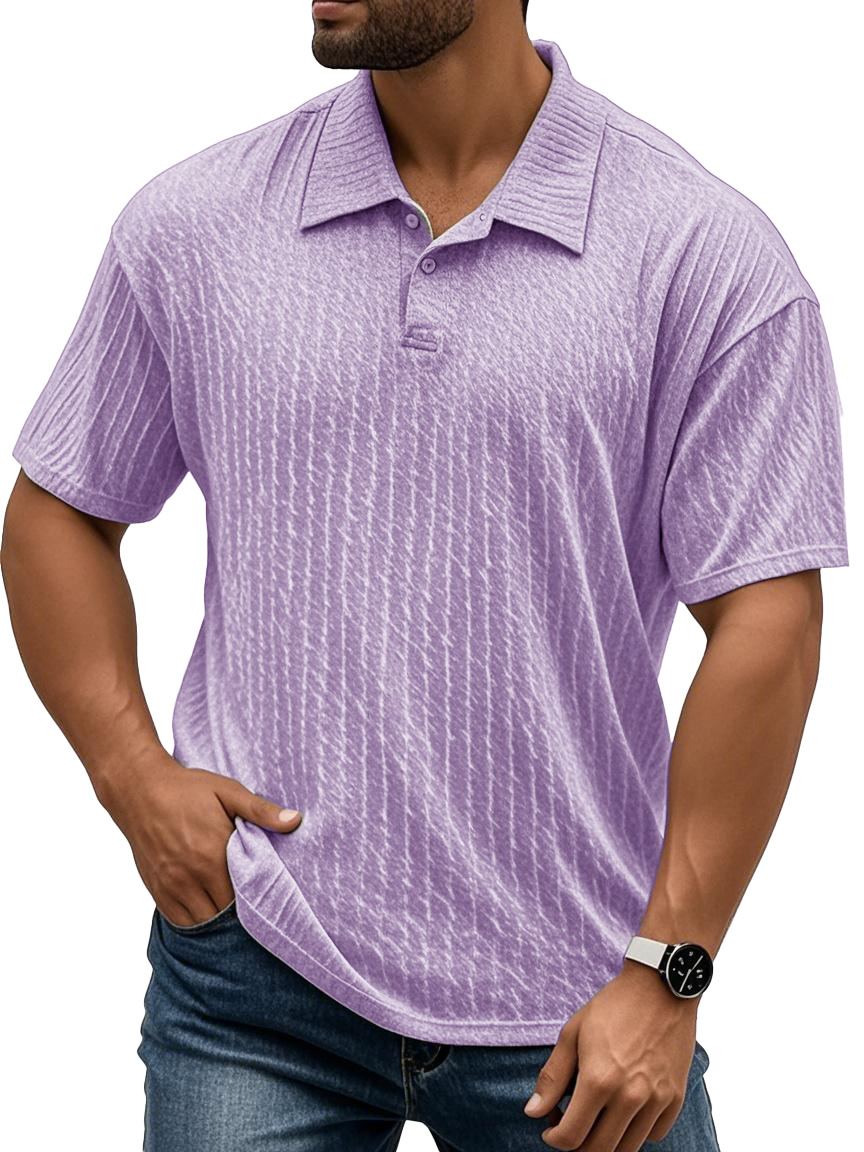 Men's Fashion Casual Textured Fabric Short-sleeved Polo Shirt�