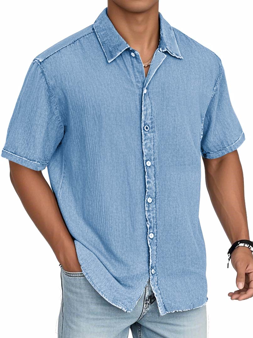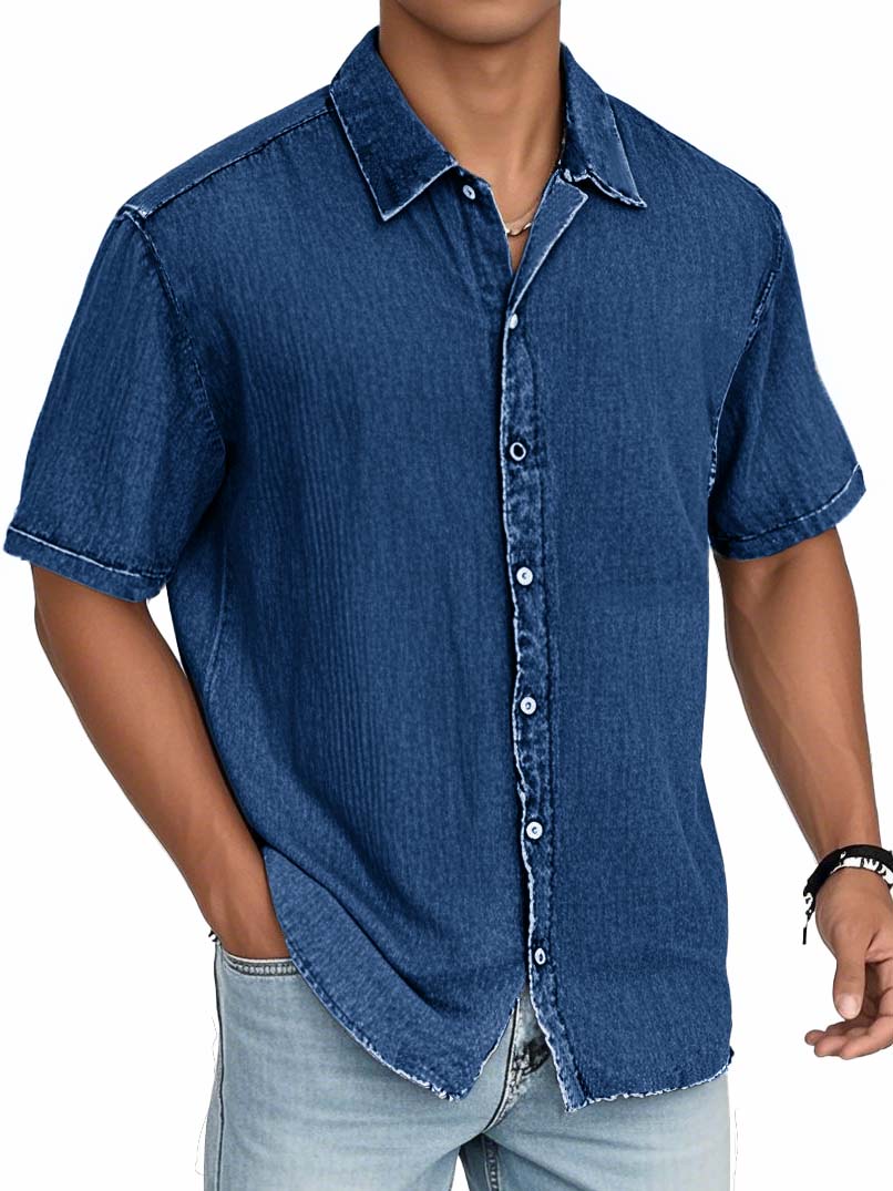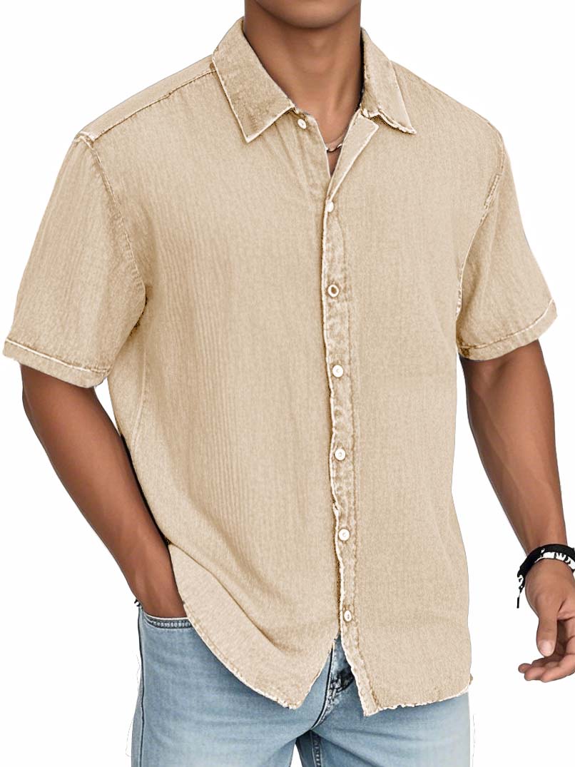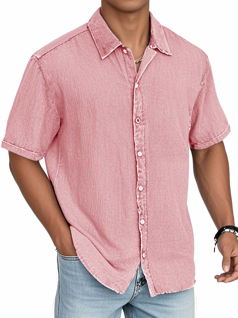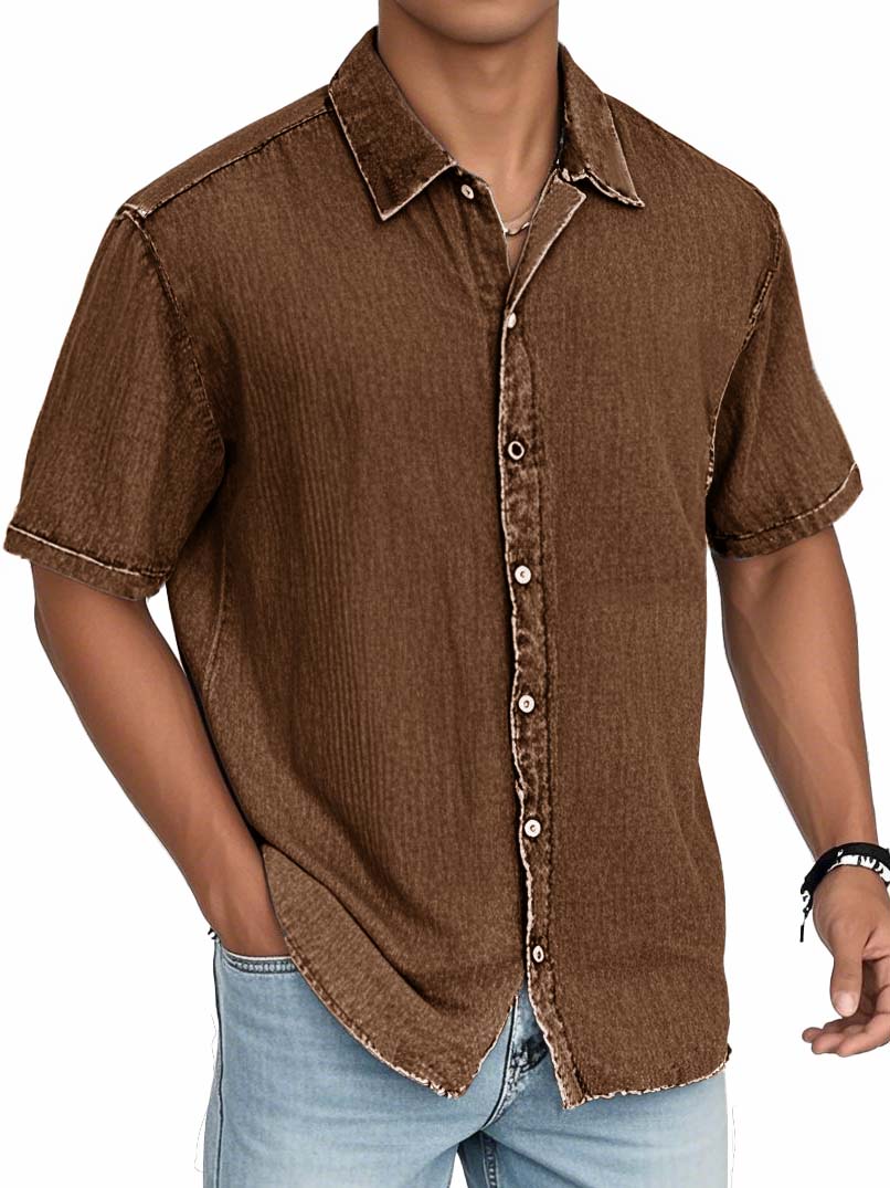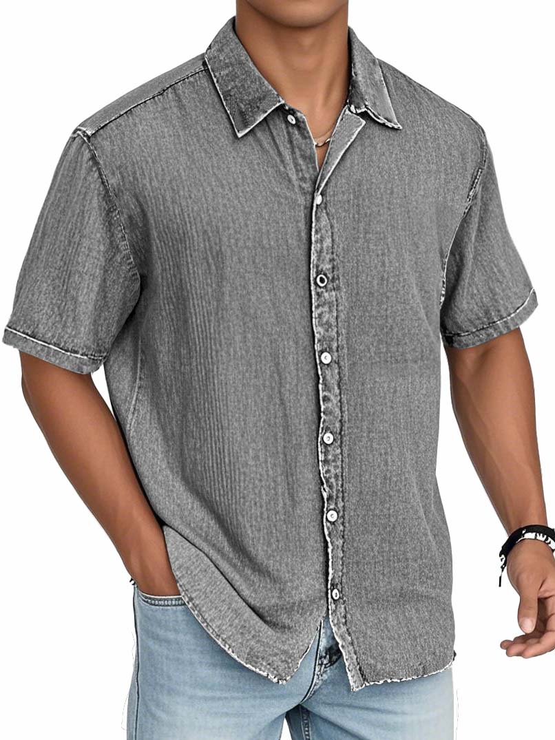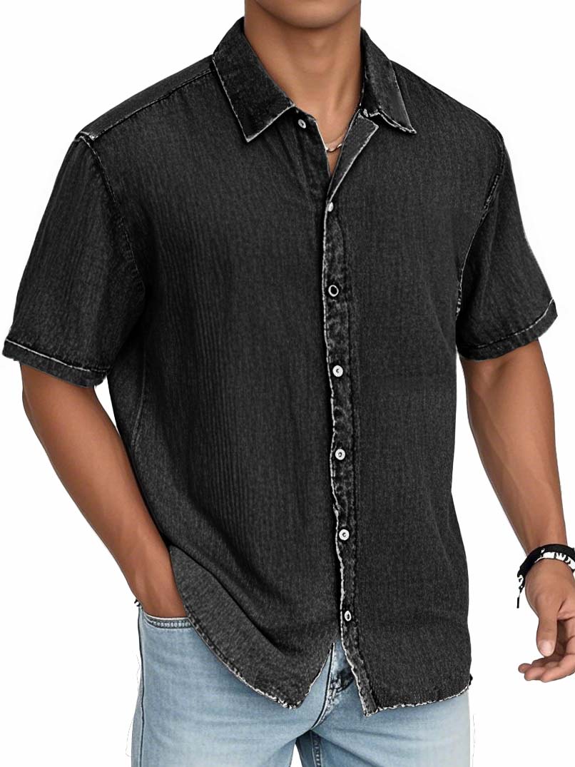 • Men's Fashion Casual Textured Fabric Short-sleeved Shirt�