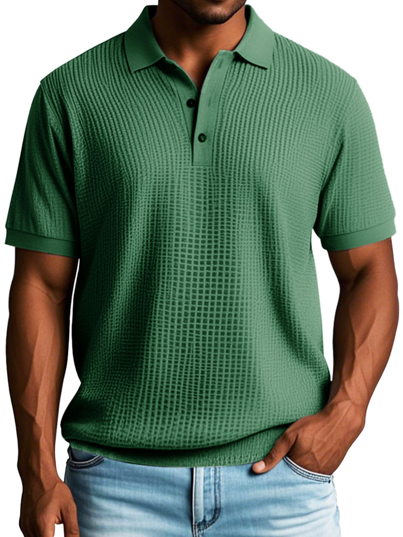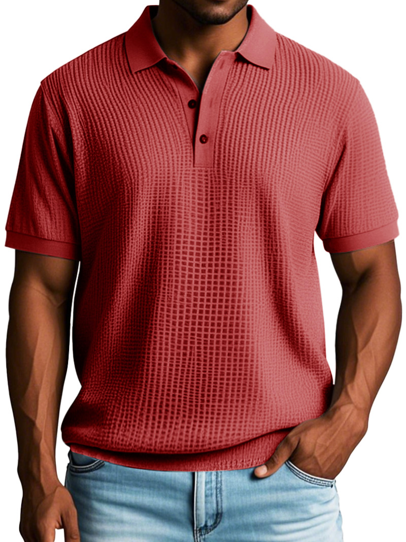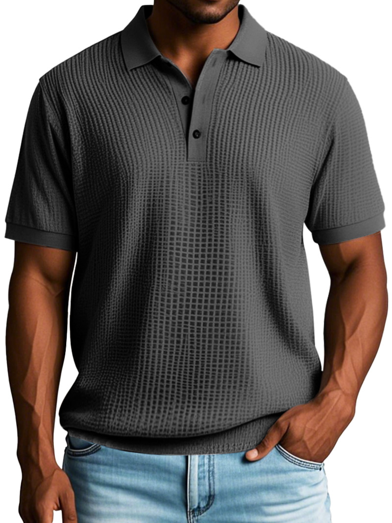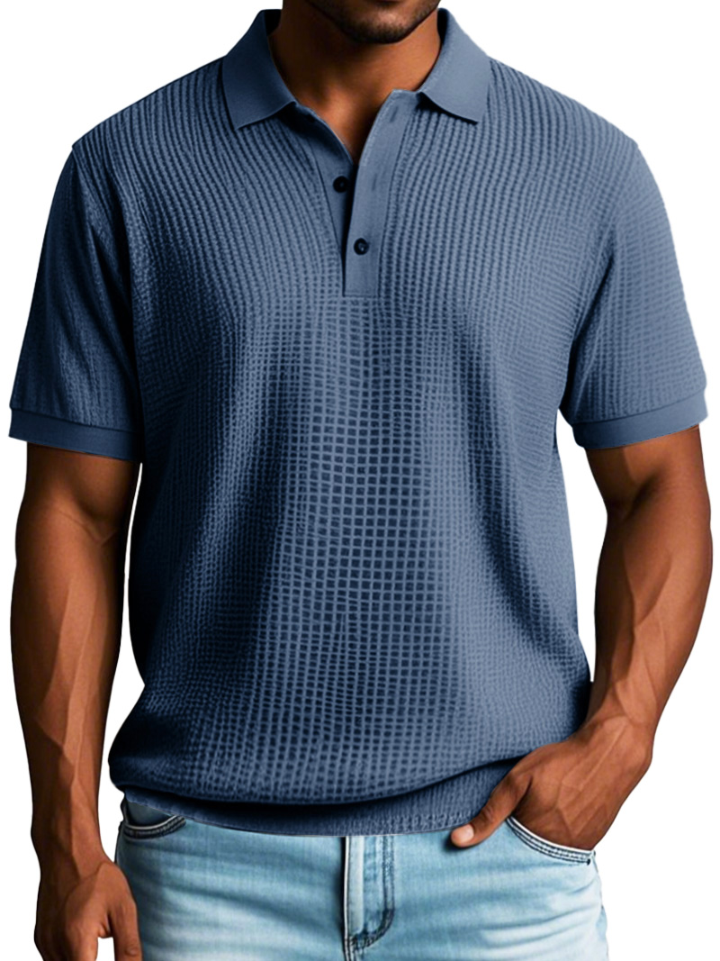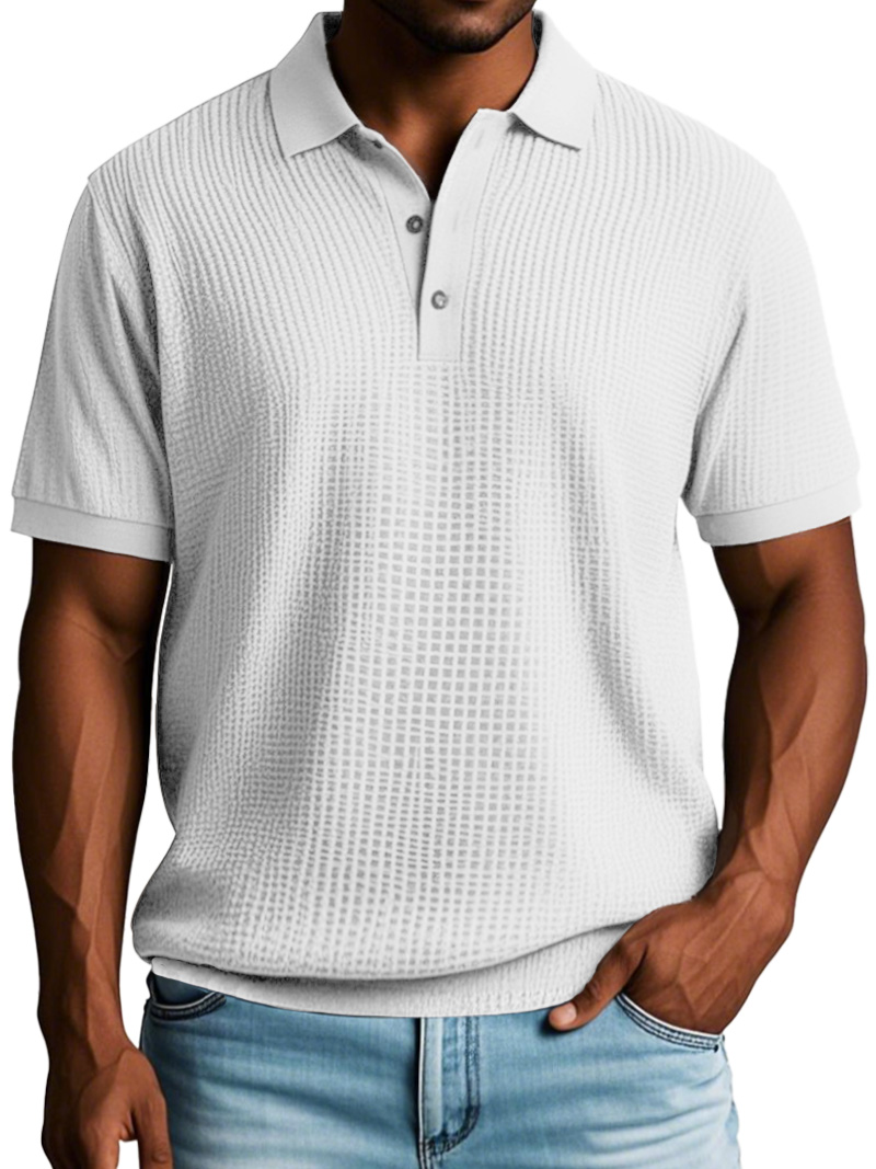 Men's Fashion Casual Waffle Fabric Short Sleeve Polo Shirt�