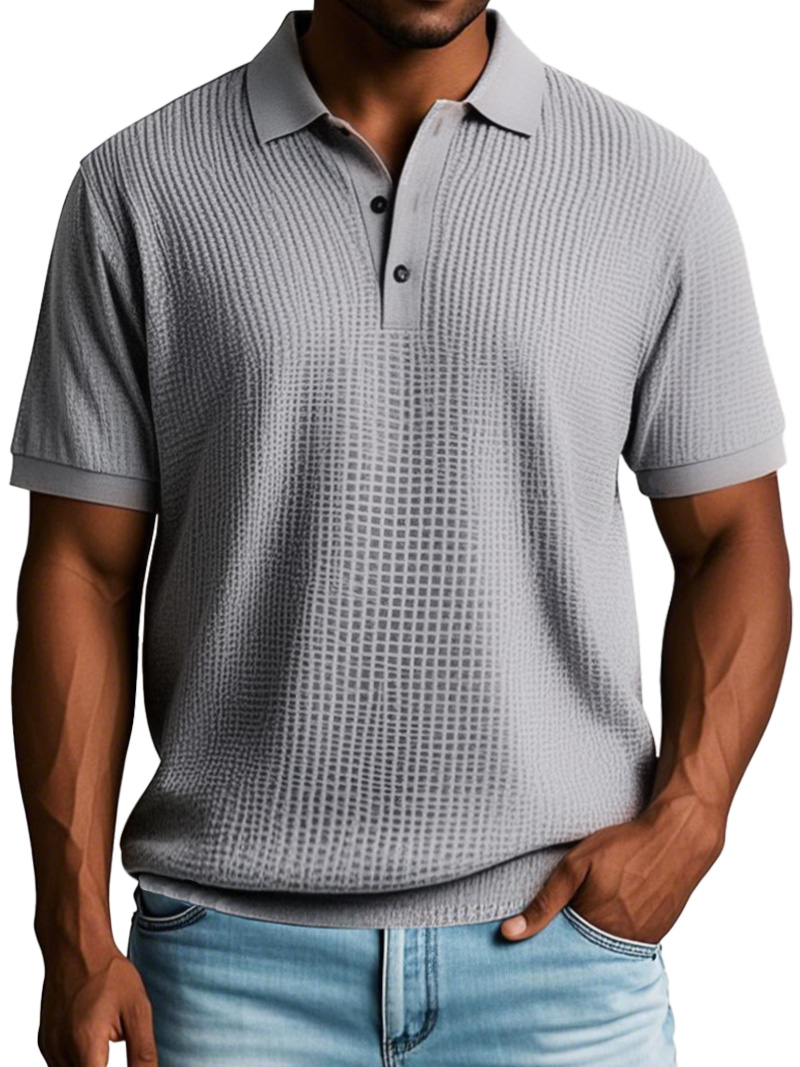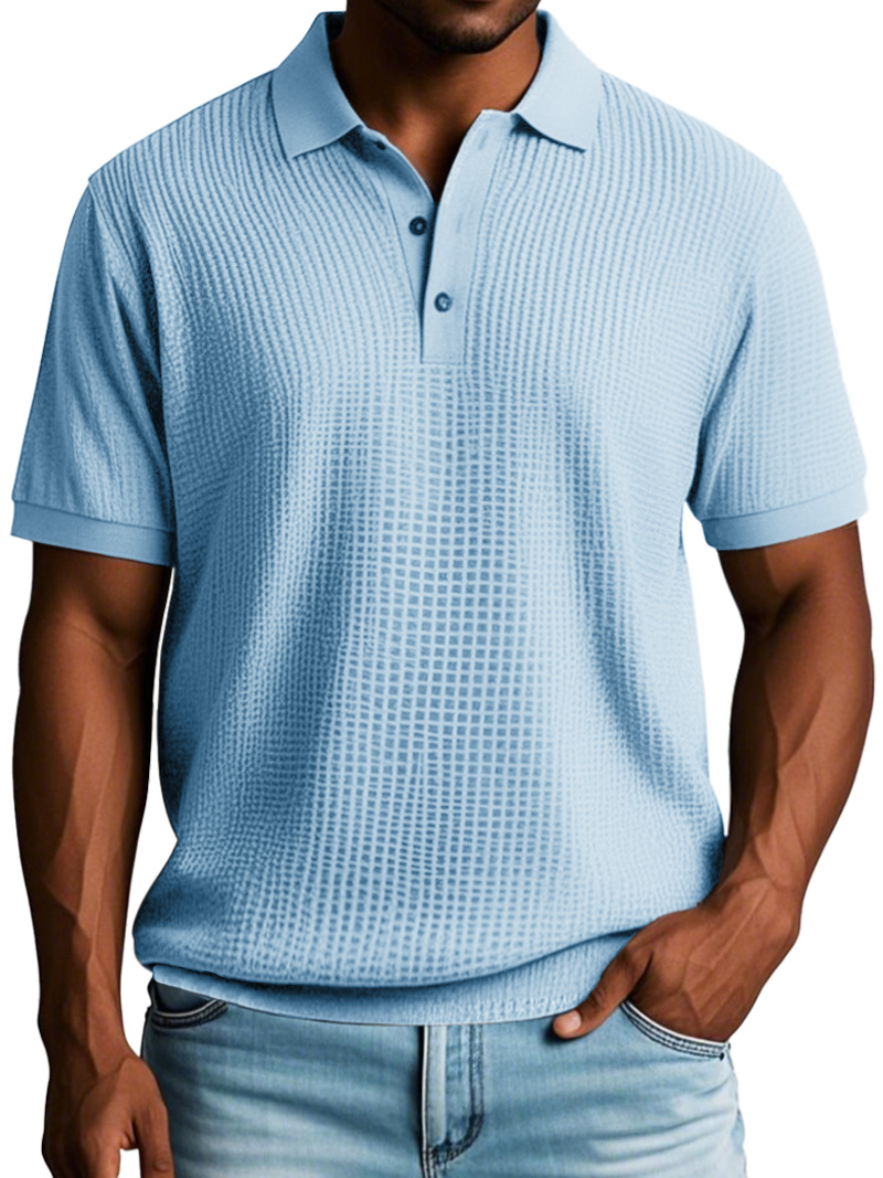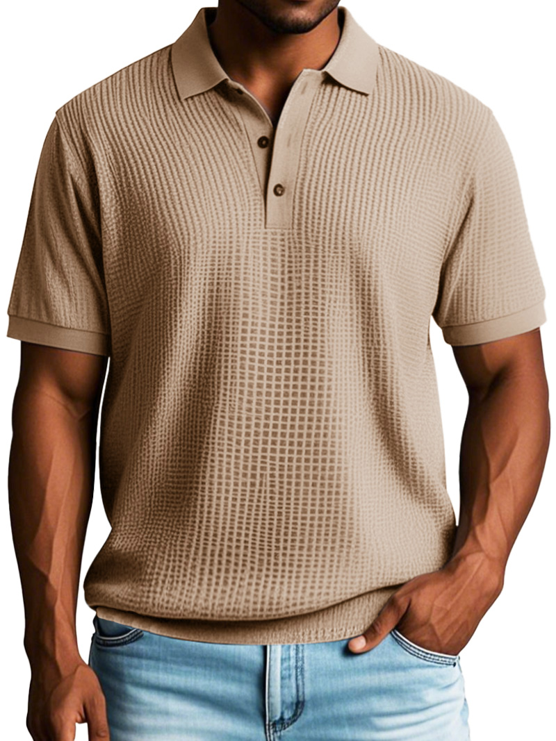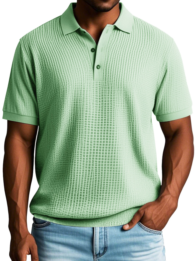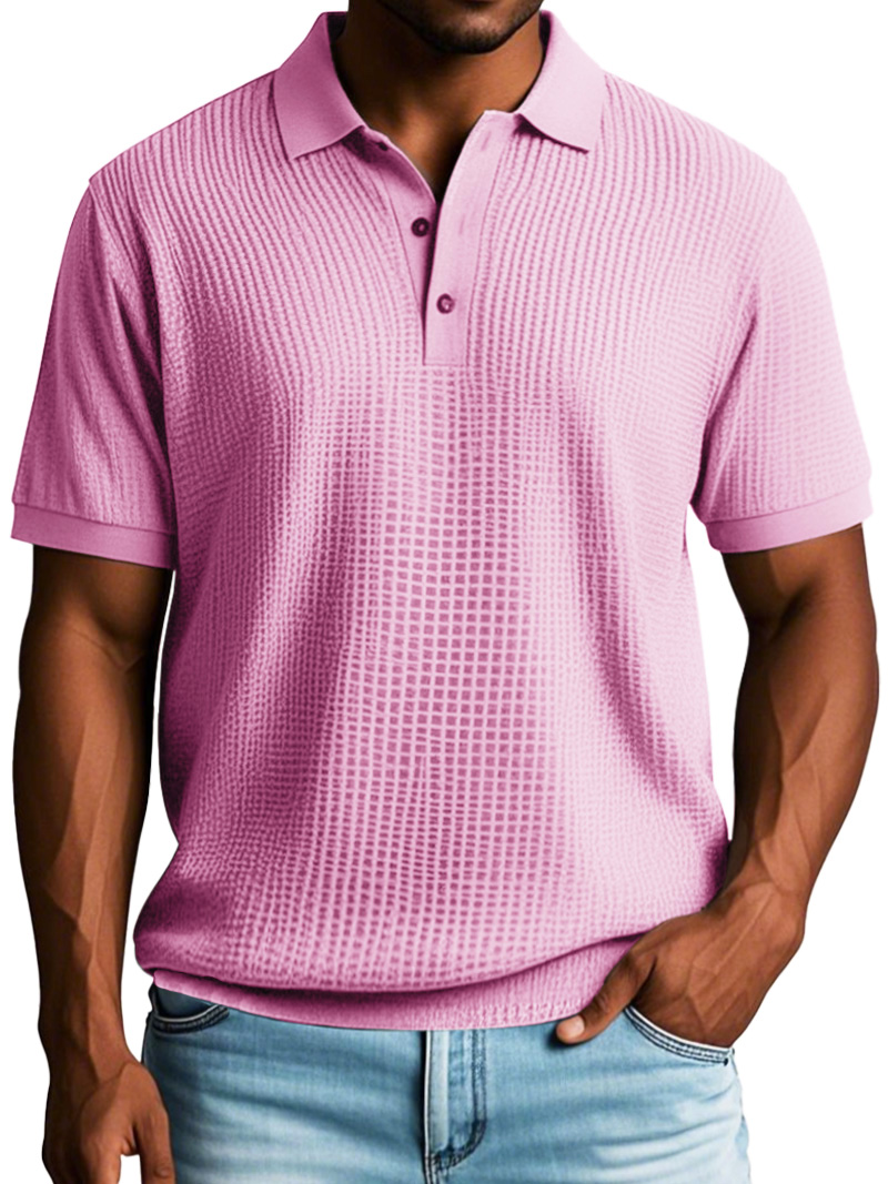 Men's Fashion Casual Waffle Fabric Short Sleeve Polo Shirt�