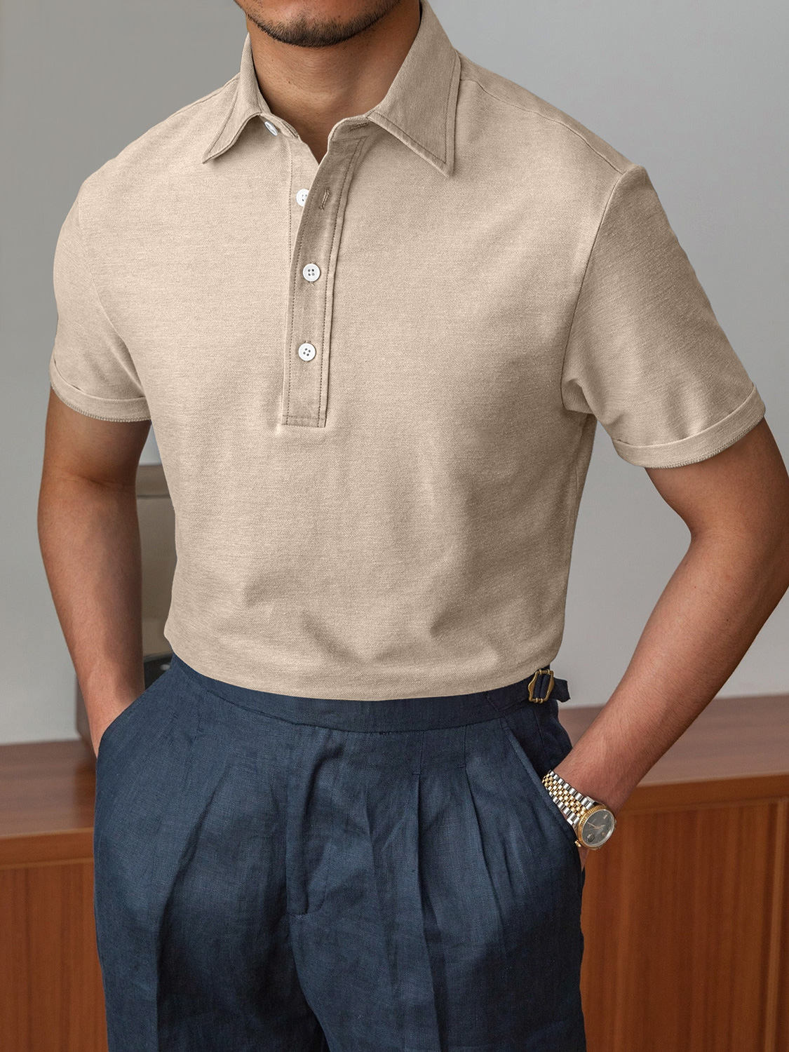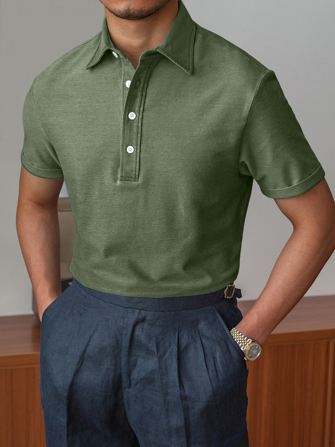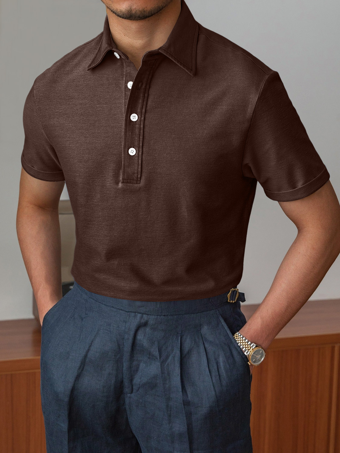 Men's Fashion Lapel Button Casual Solid Color Short Sleeve POLO Shirt