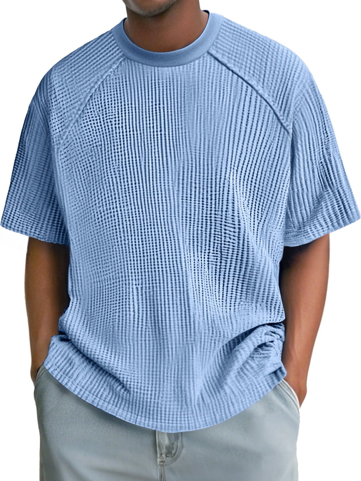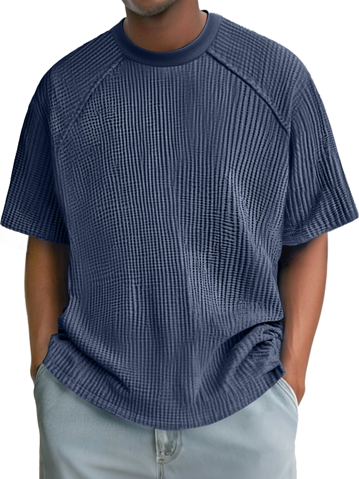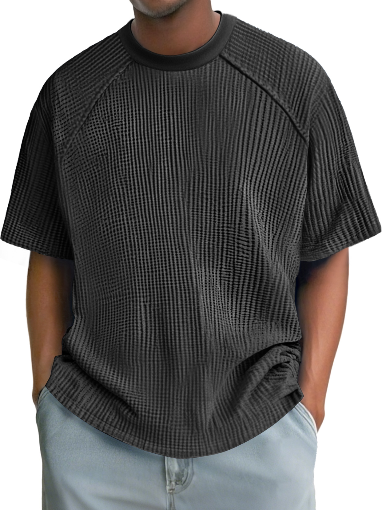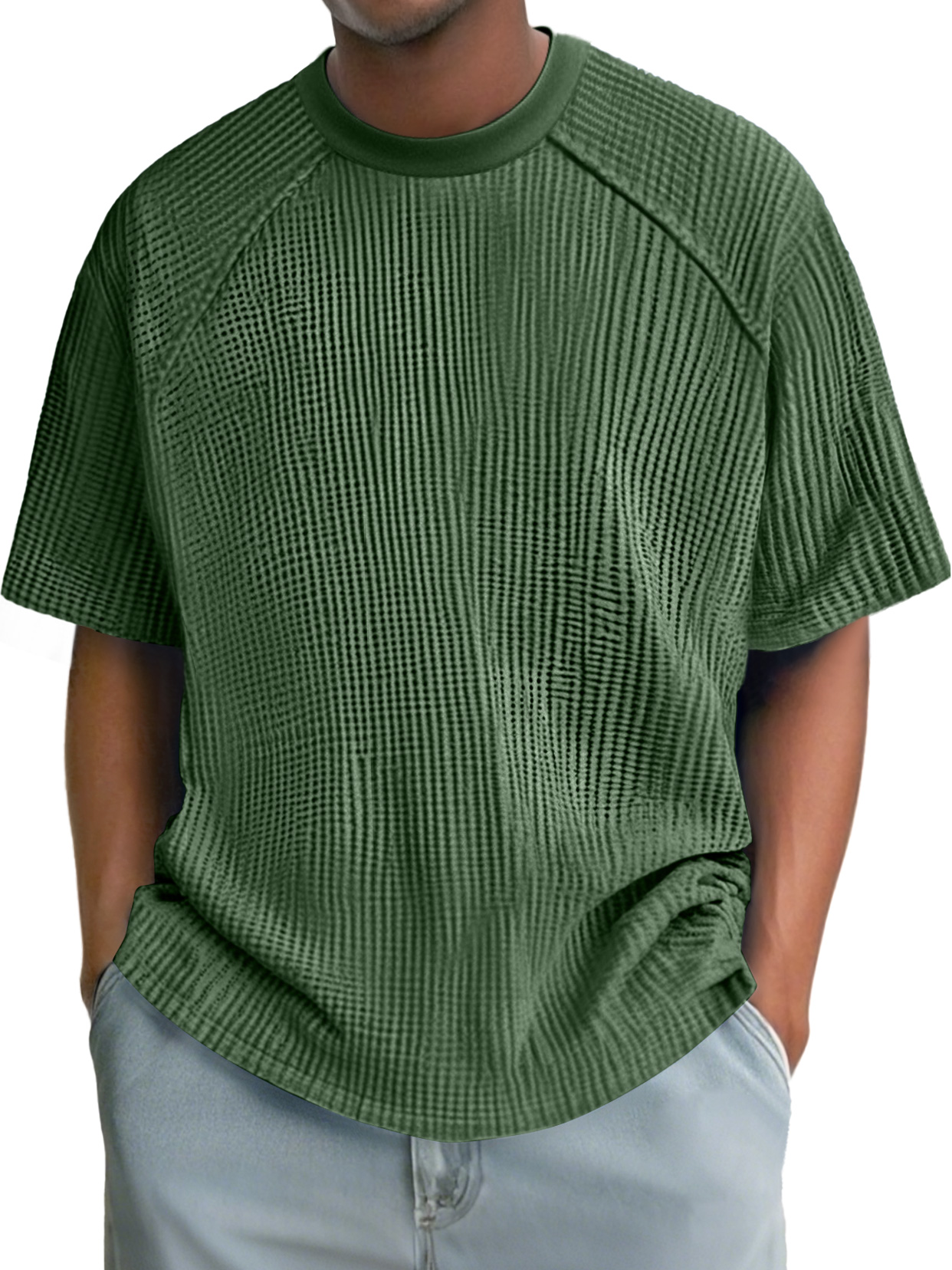 Men's Fashion Waffle Raglan Round Neck Comfortable Short Sleeve T-Shirt