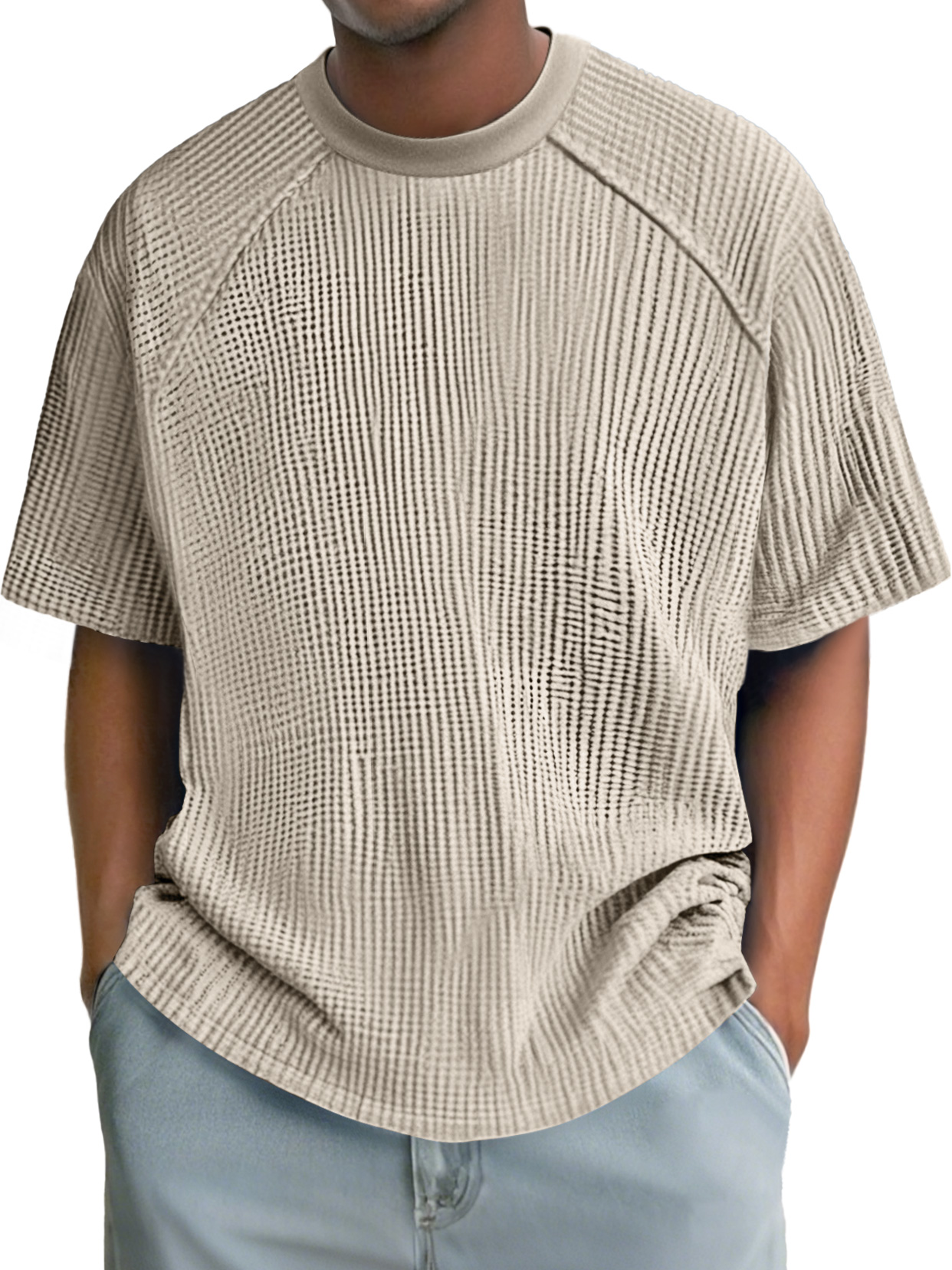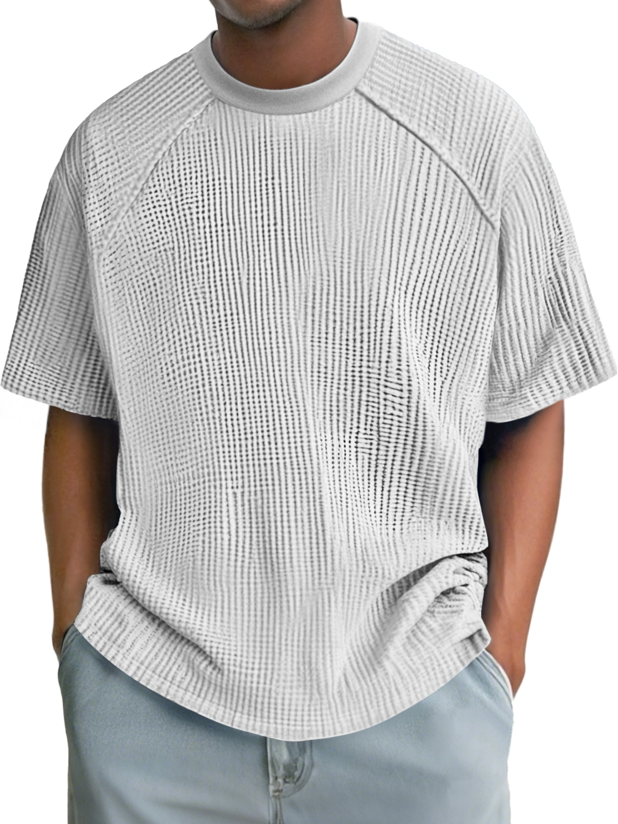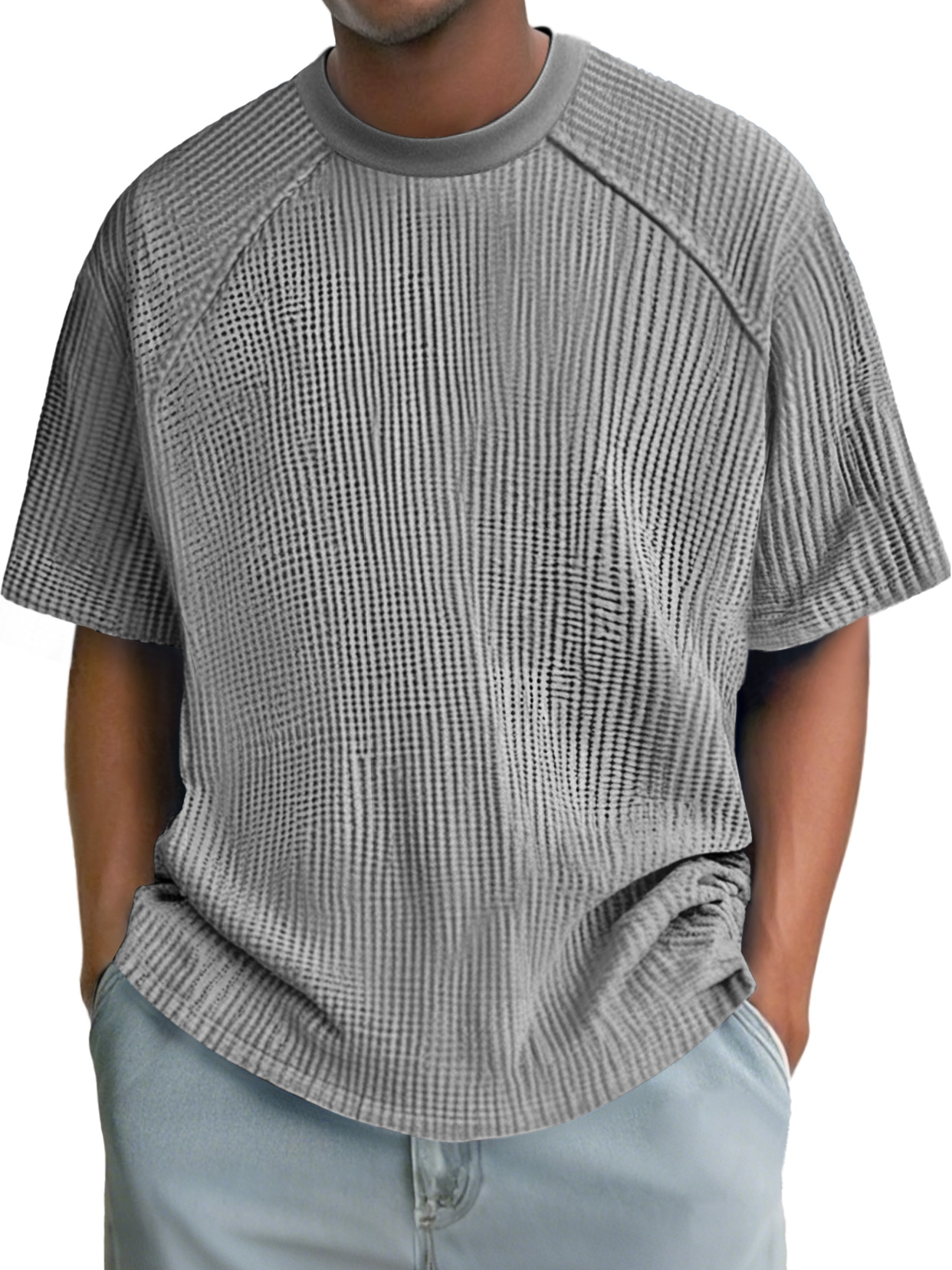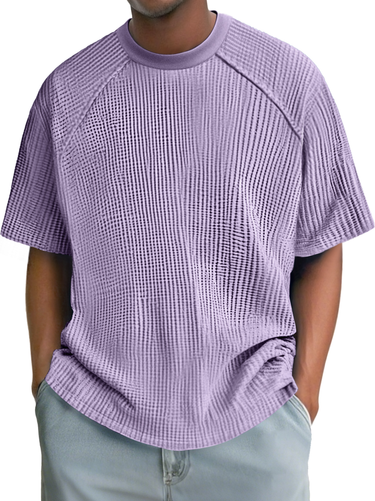 Men's Fashion Waffle Raglan Round Neck Comfortable Short Sleeve T-Shirt