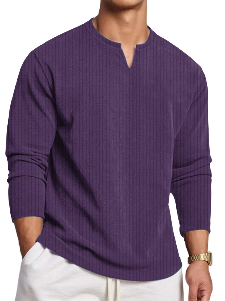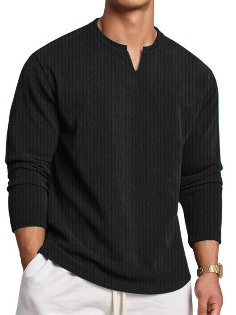 • Men's Fashionable Casual Trench Fabric V-neck Long-Sleeved T-shirt