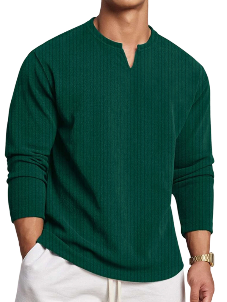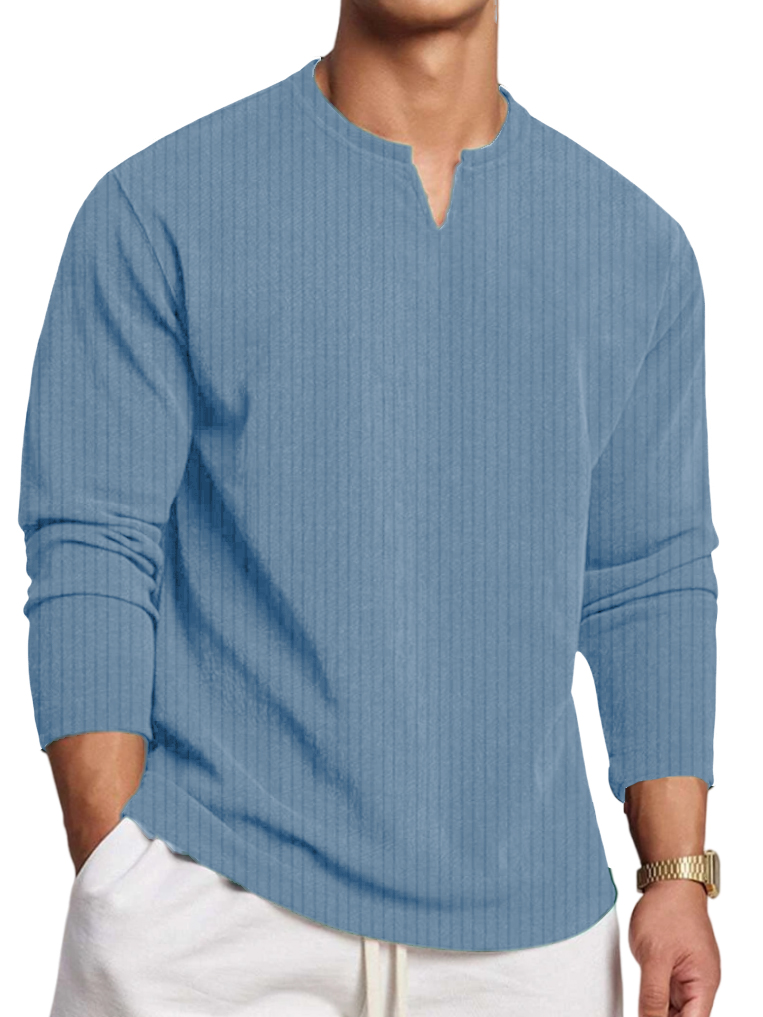 Men's Fashionable Casual Trench Fabric V-neck Long-Sleeved T-shirt
