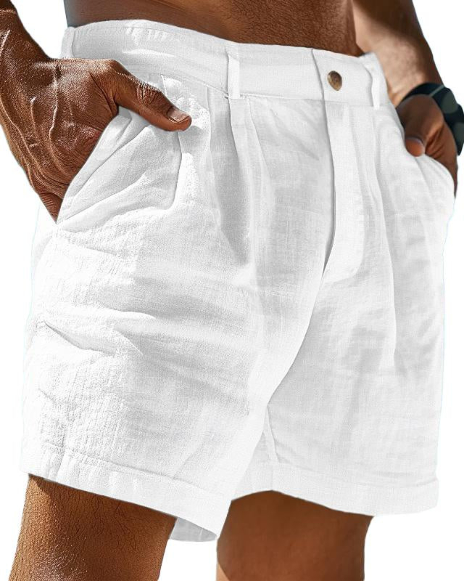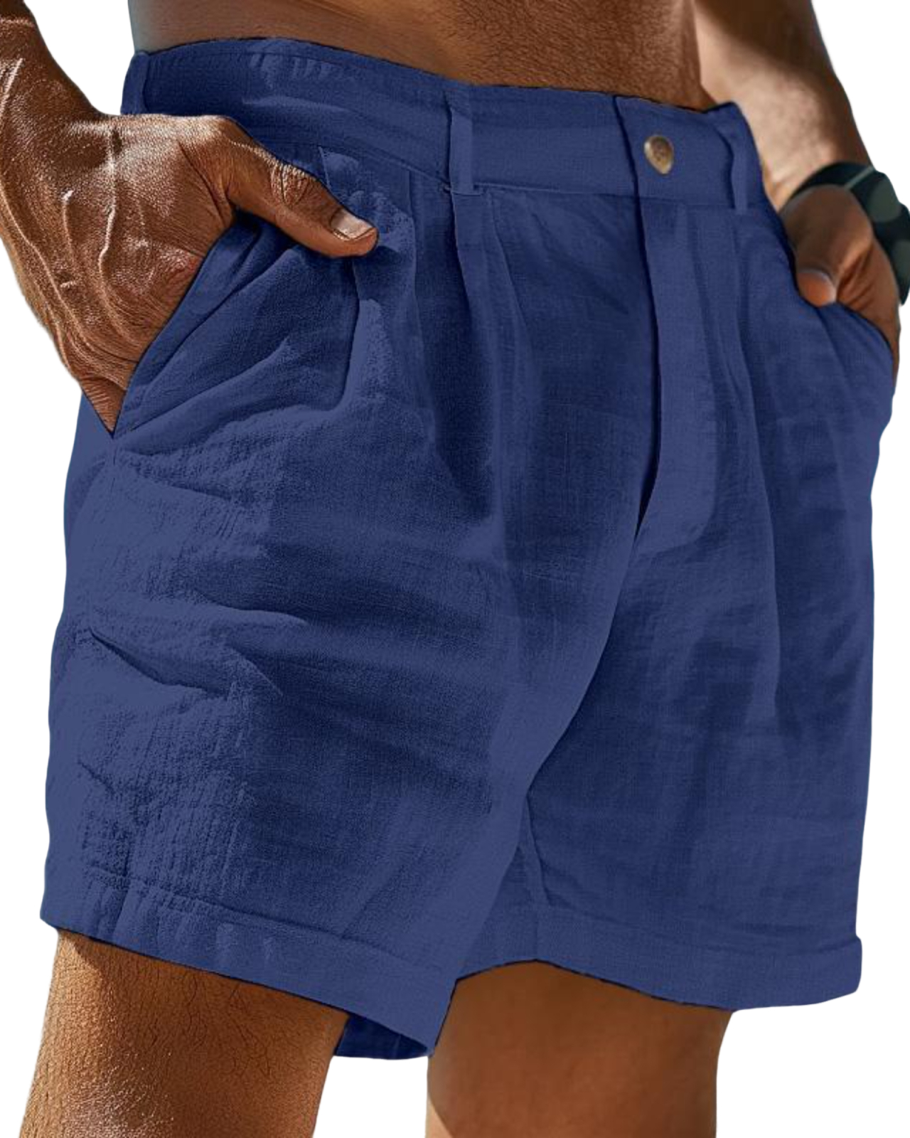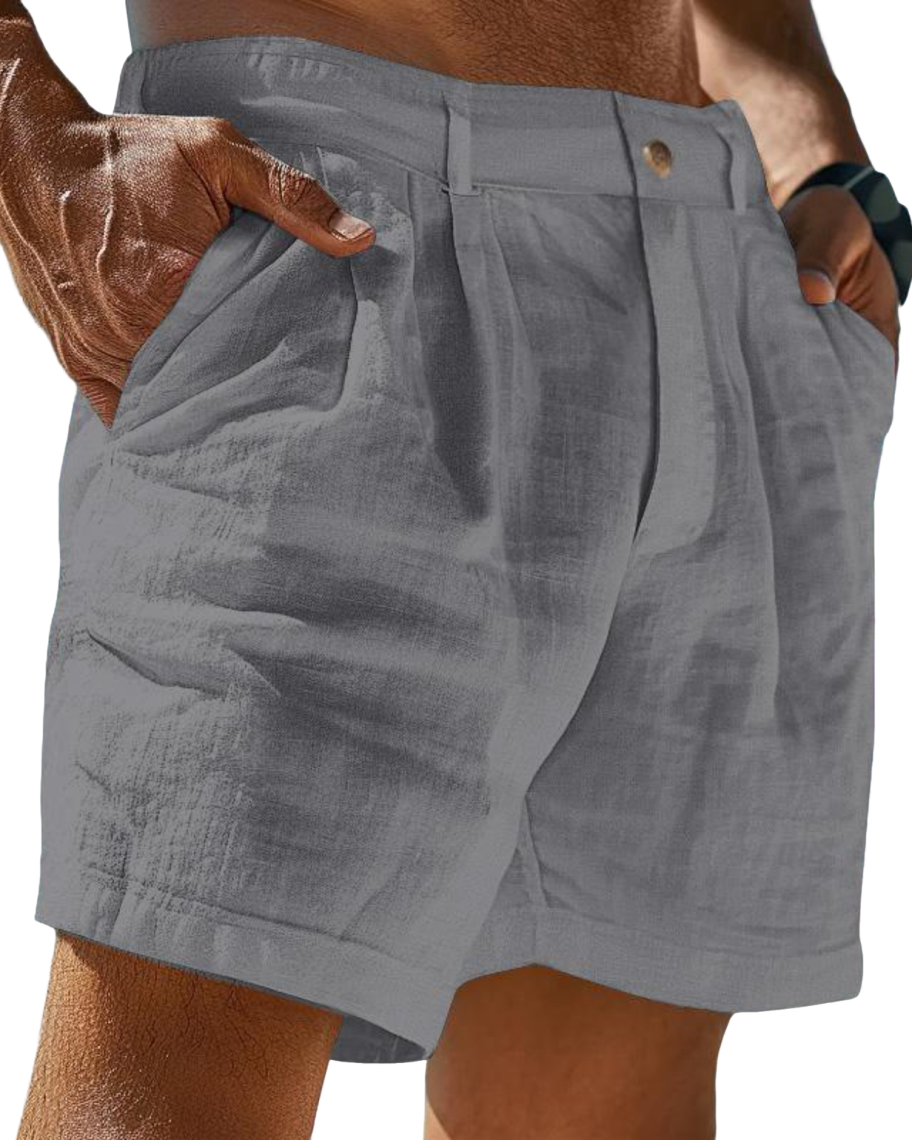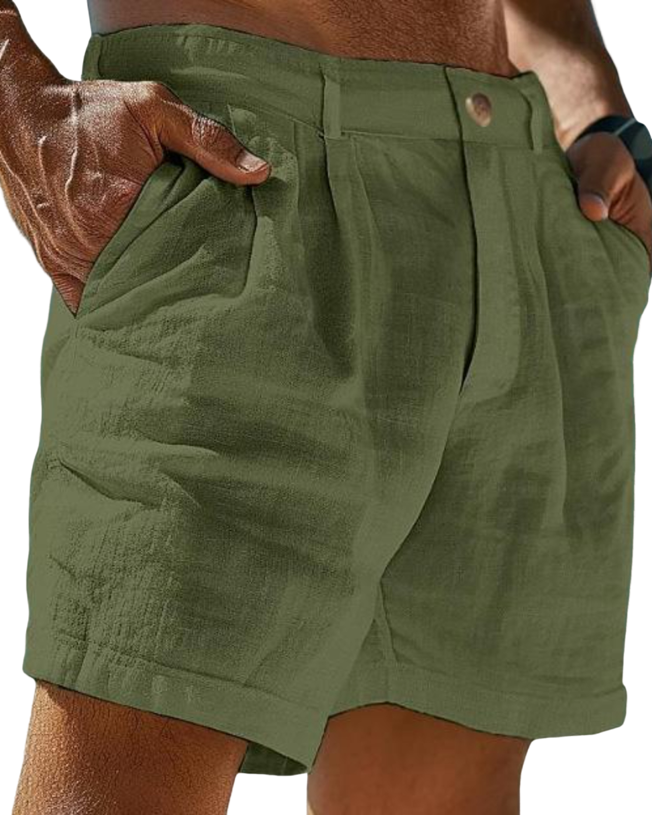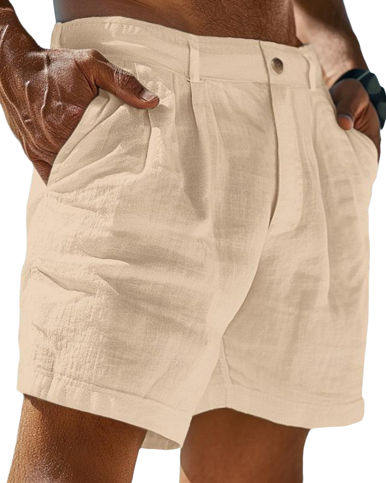 • Men's Linen Beach Button Pocket Comfort Holiday Cotton Shorts