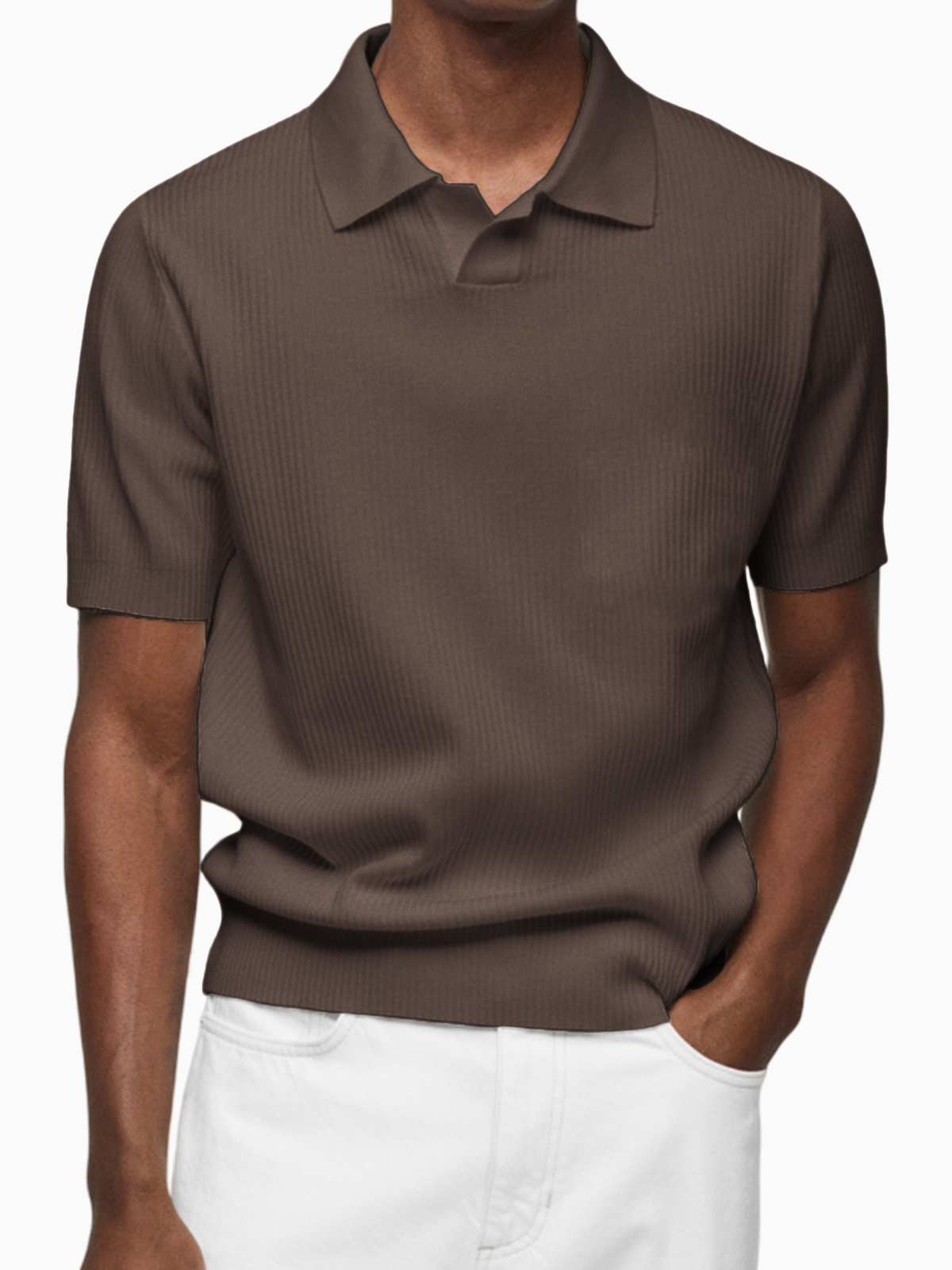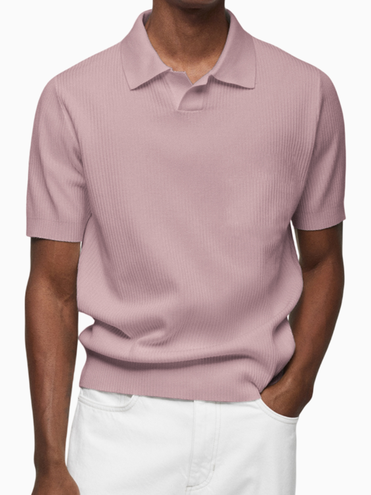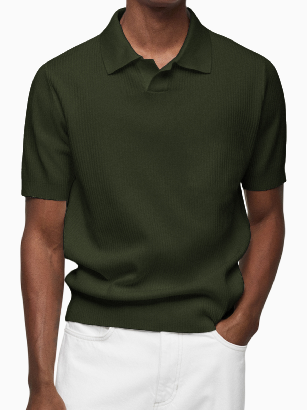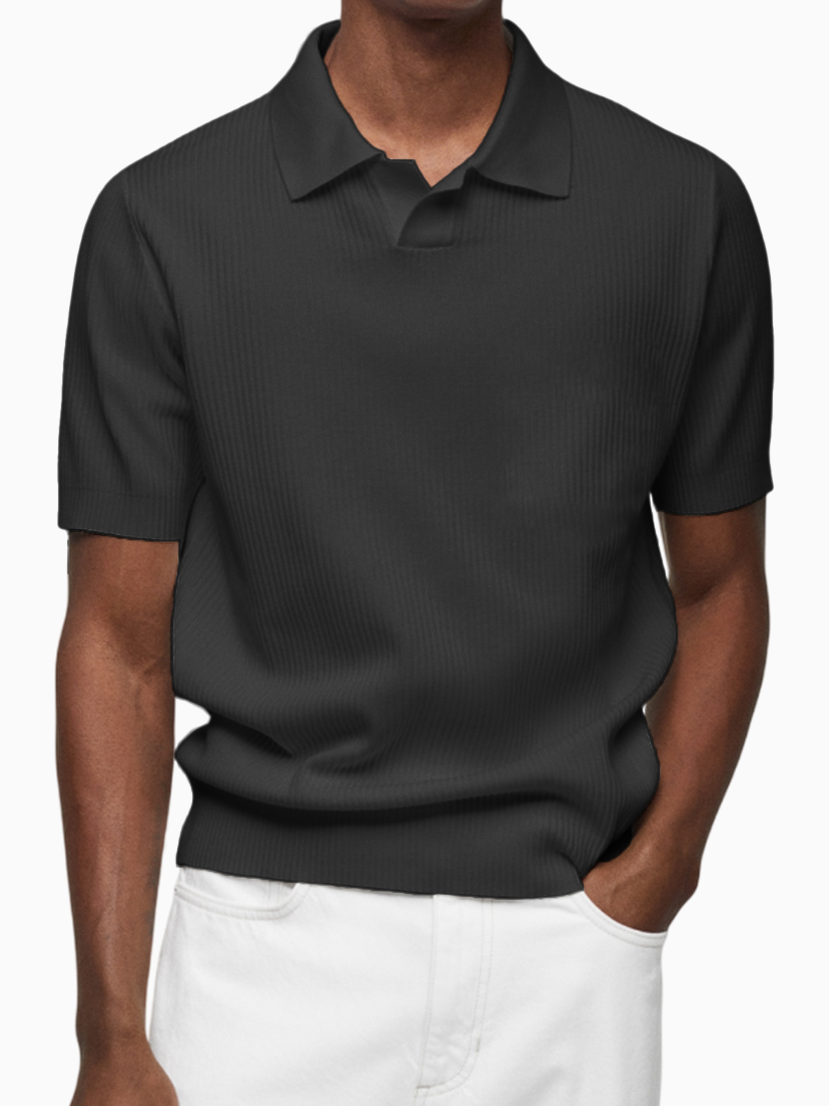 Men's Pleated Small V-Neck Short Sleeve Polo Lapel Top