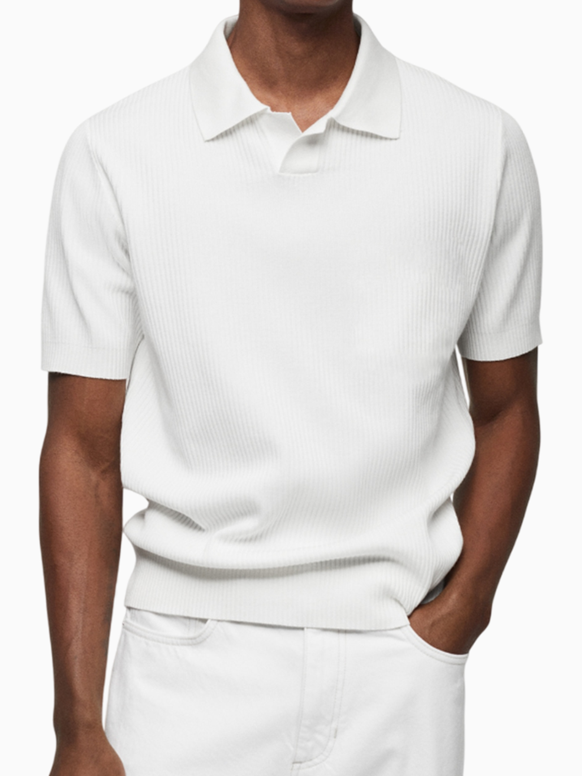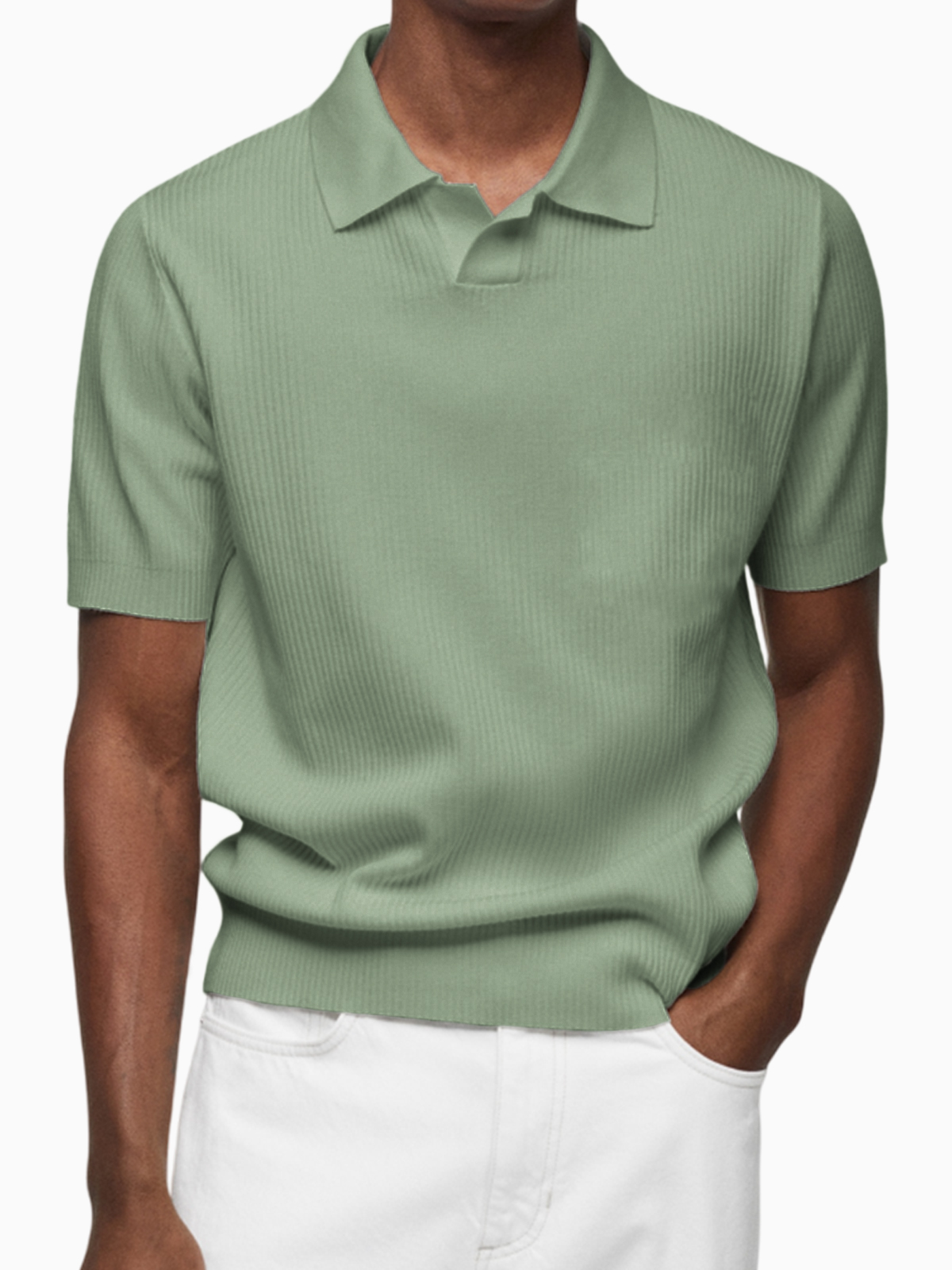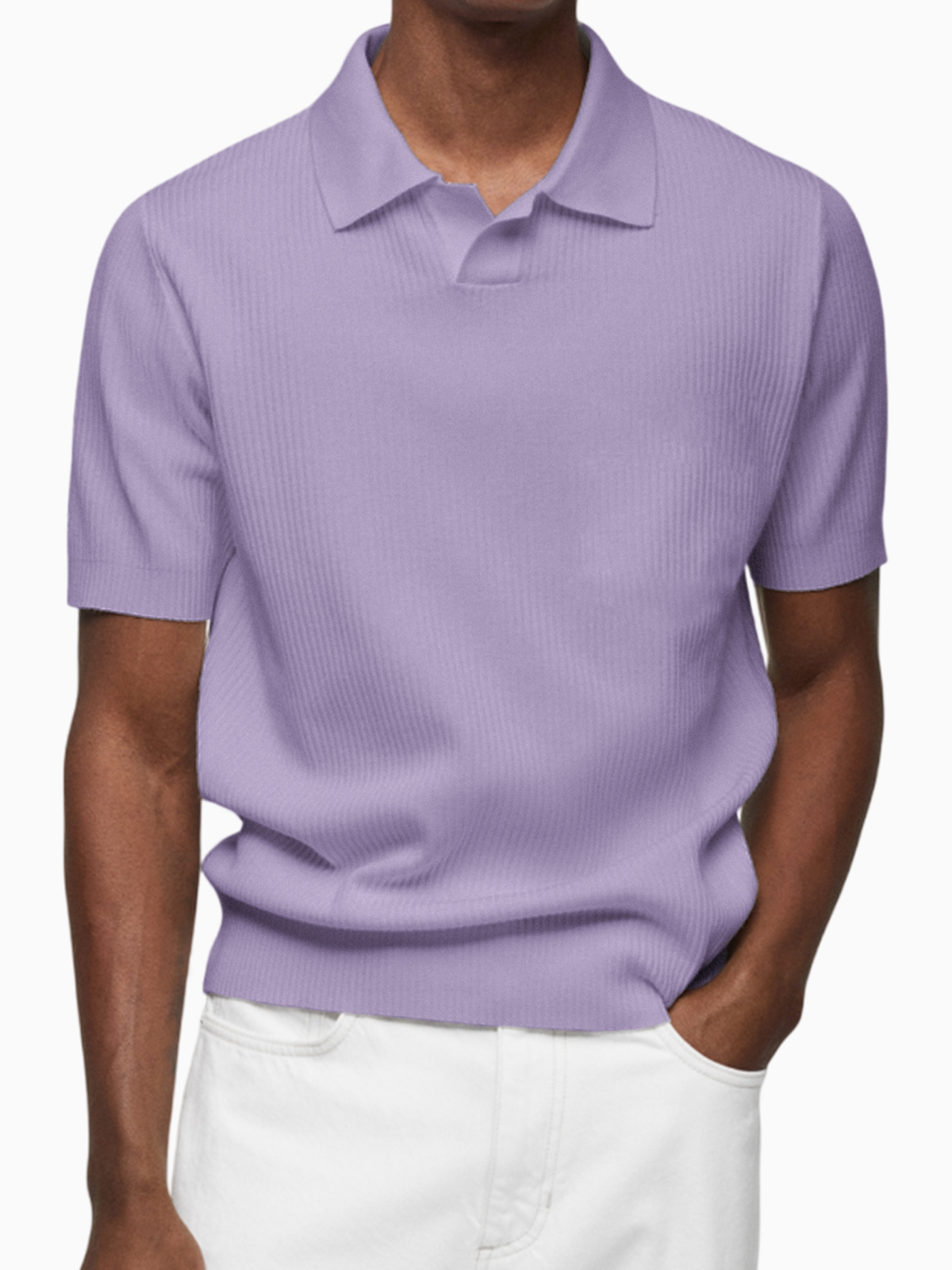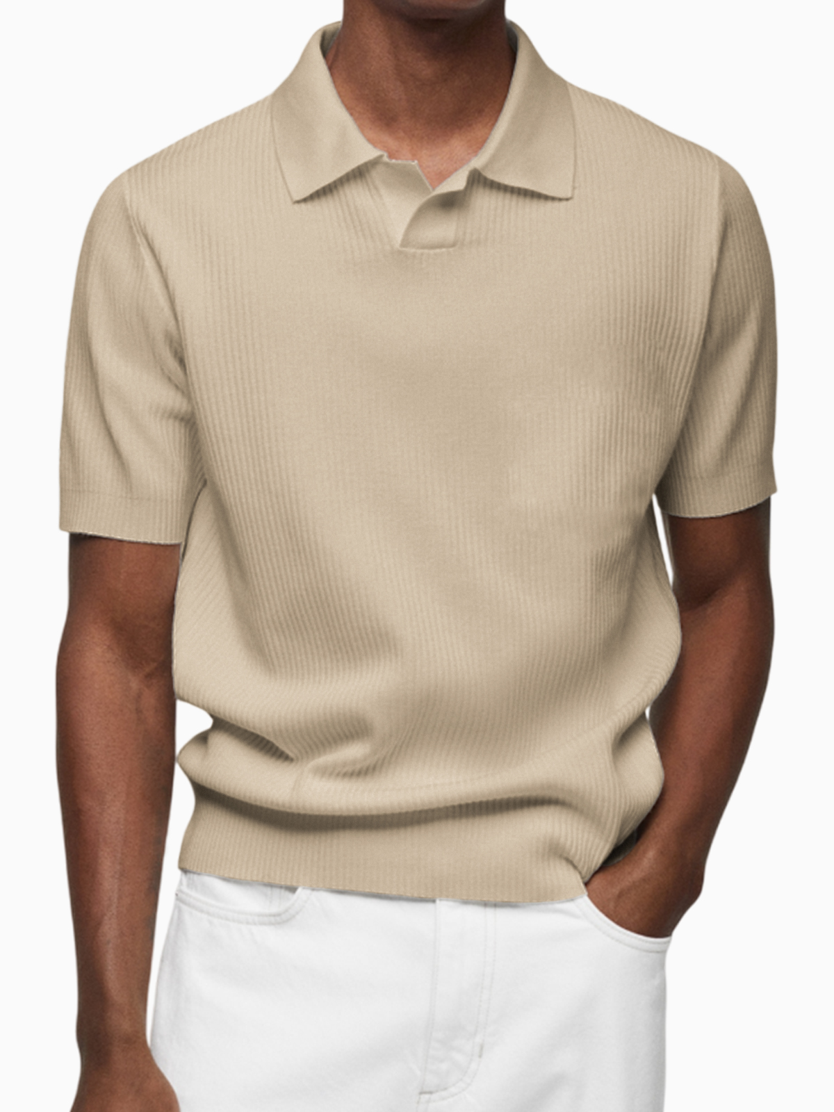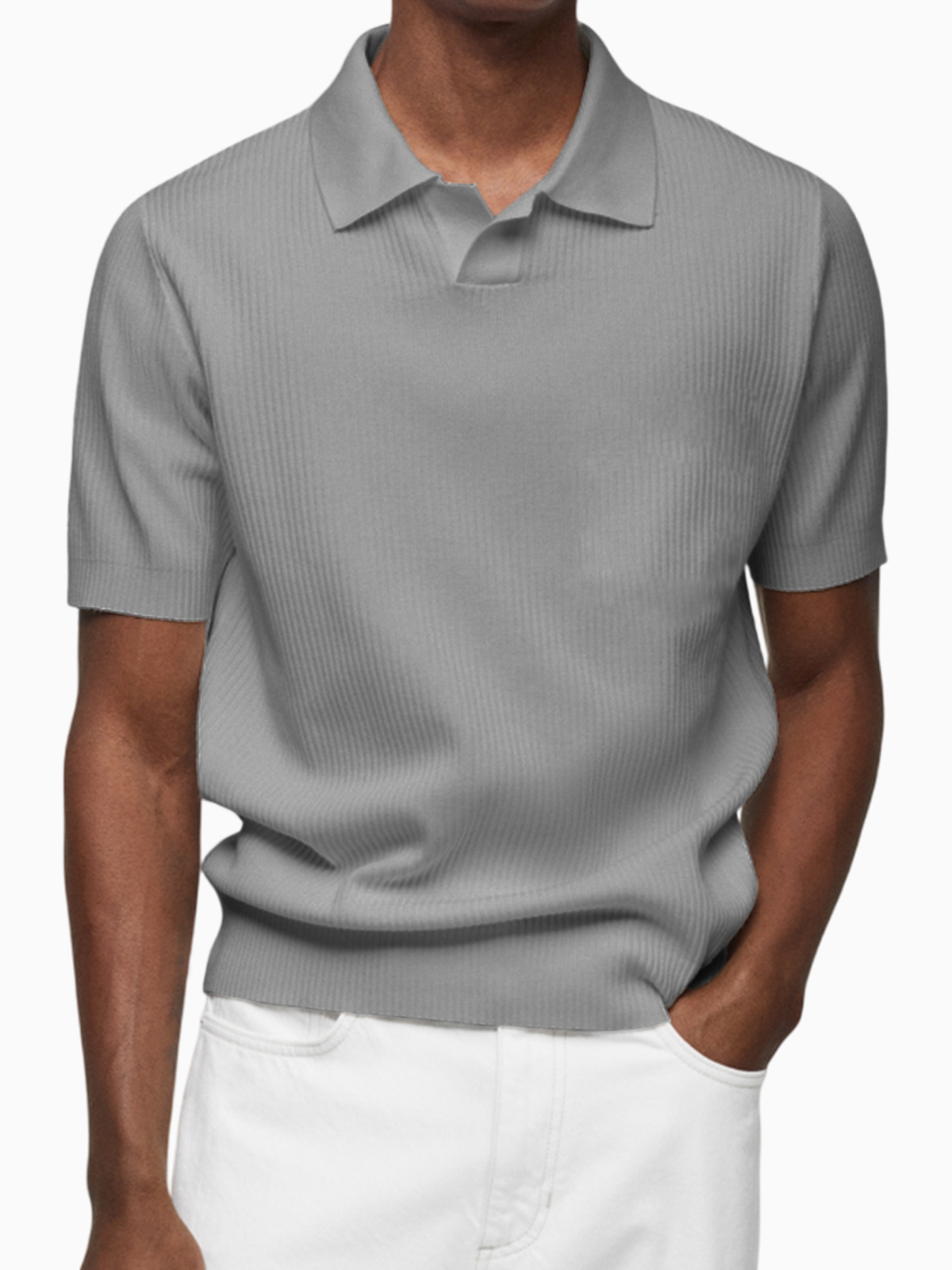 Men's Pleated Small V-Neck Short Sleeve Polo Lapel Top