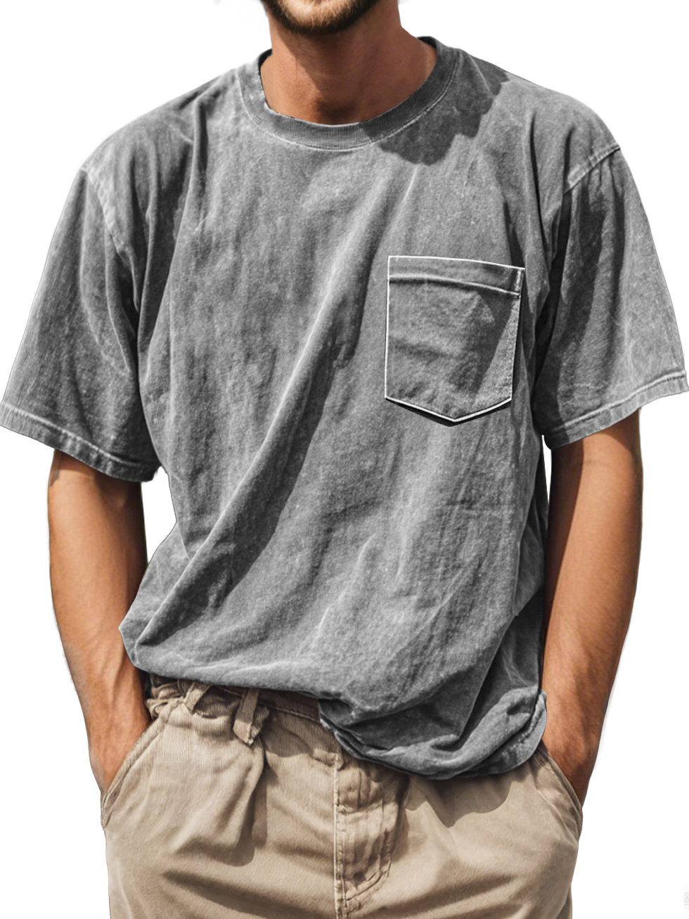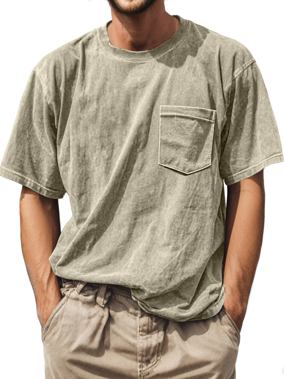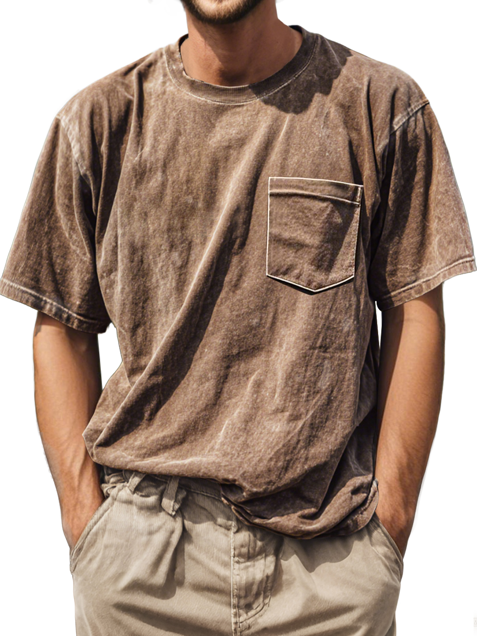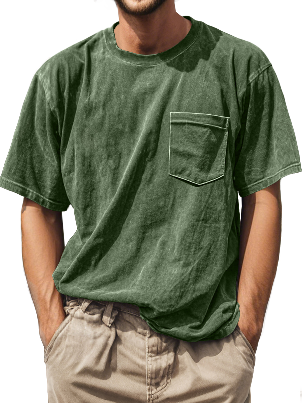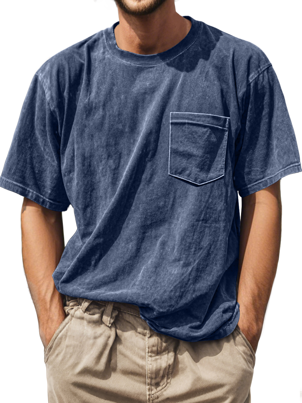 Men's Retro Daily Casual Round Neck Pocket Comfortable Short Sleeve T-shirt