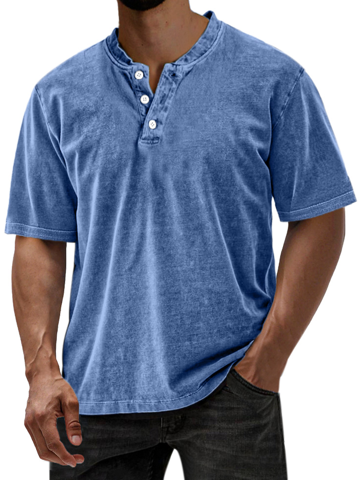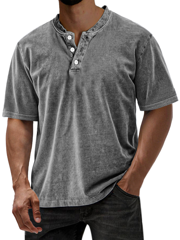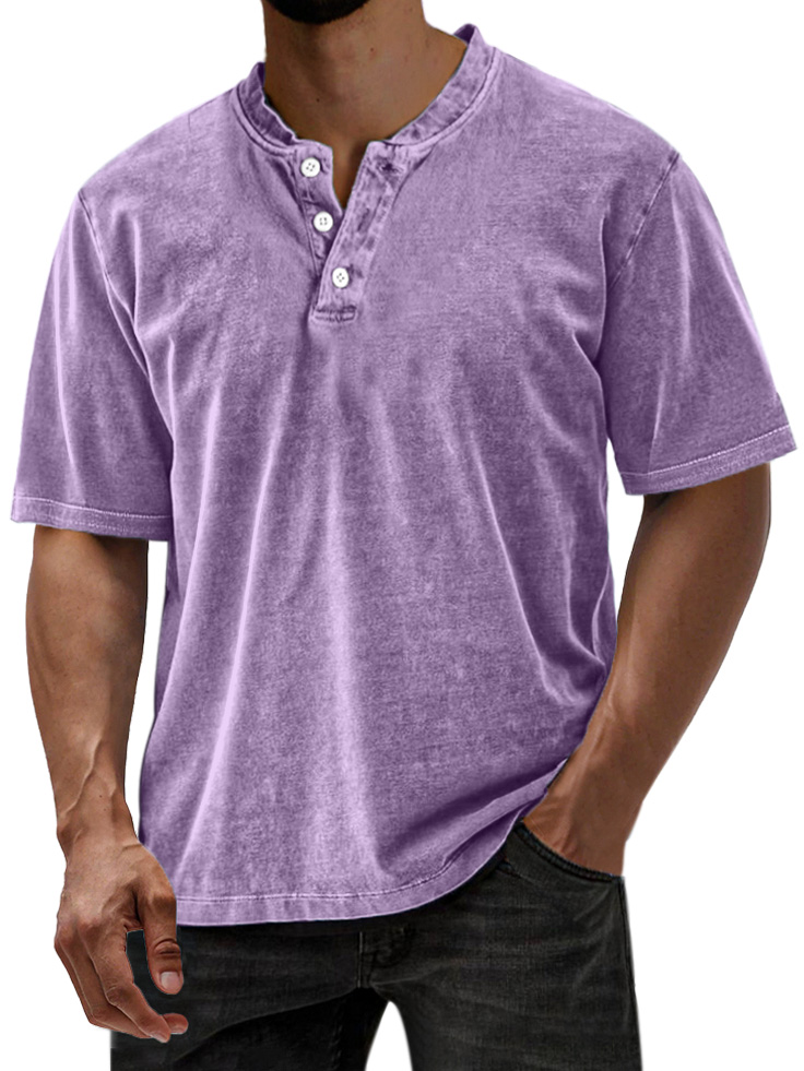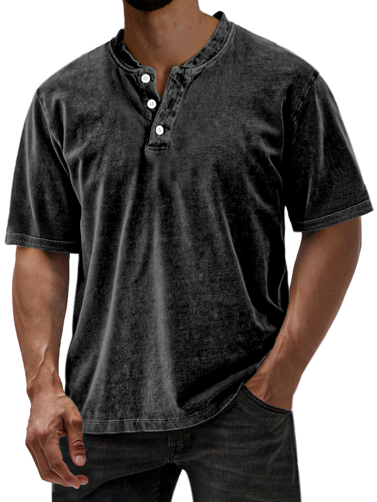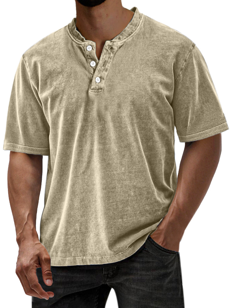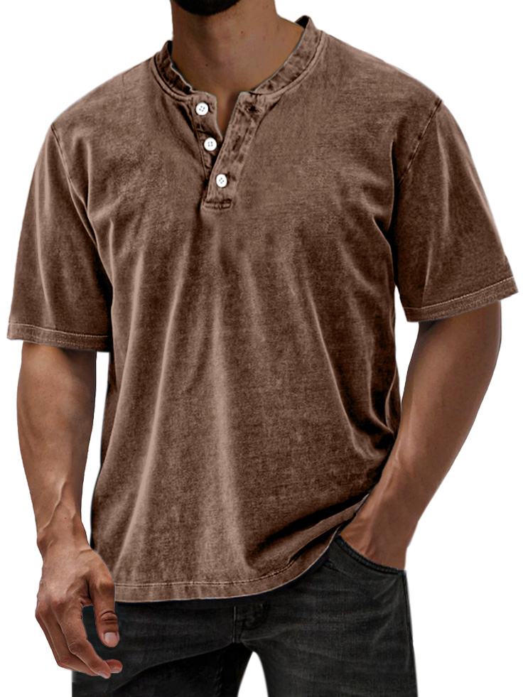 Men's Retro Simple Solid Color Short Sleeve Henley Shirt