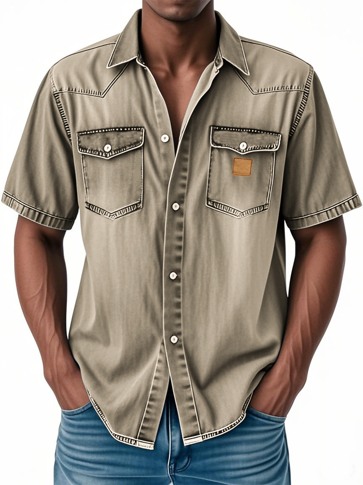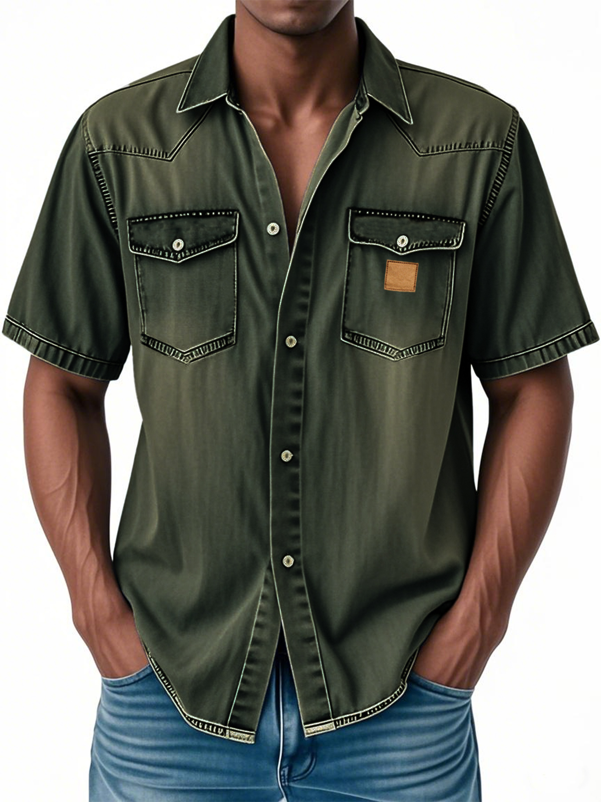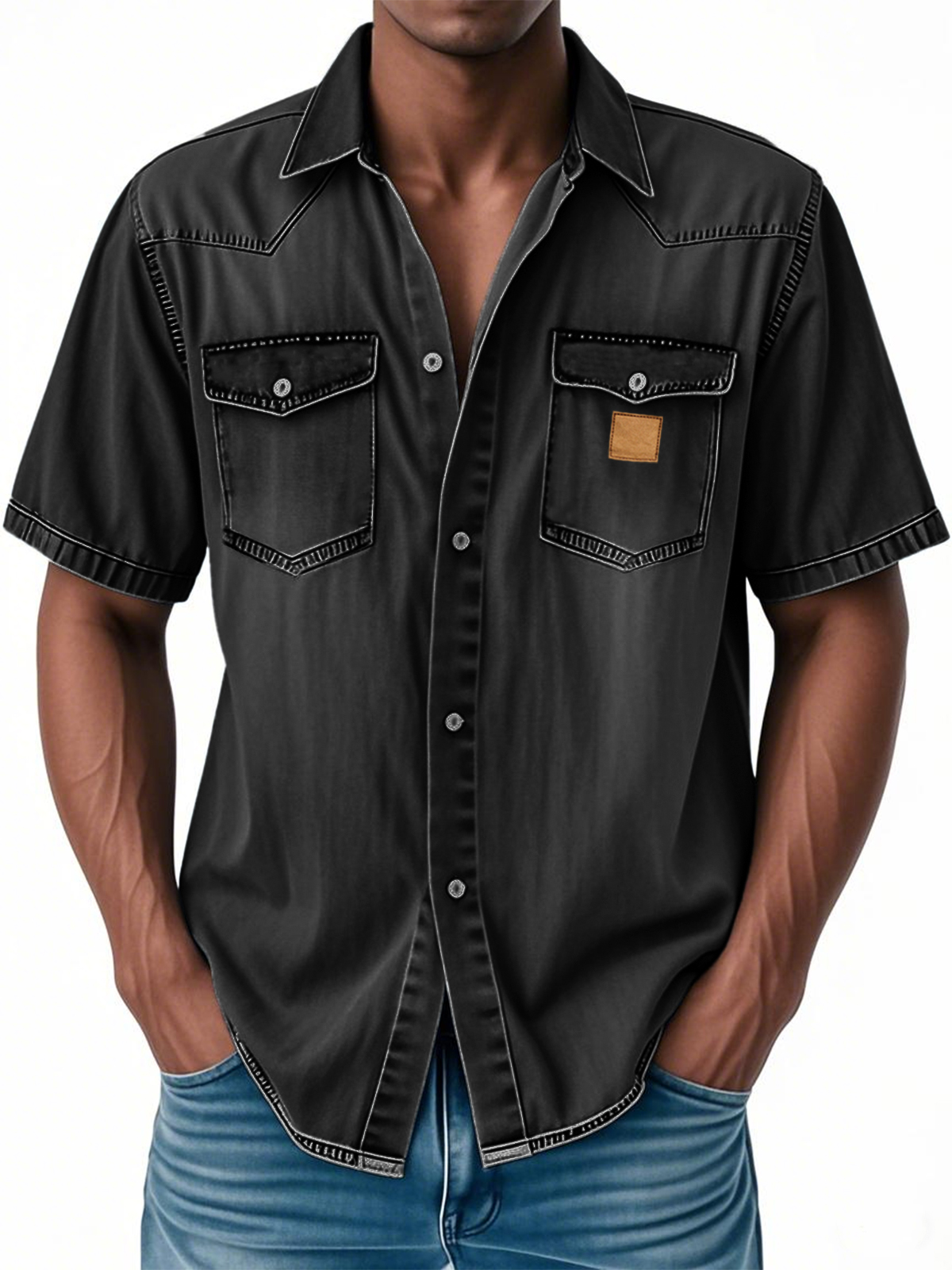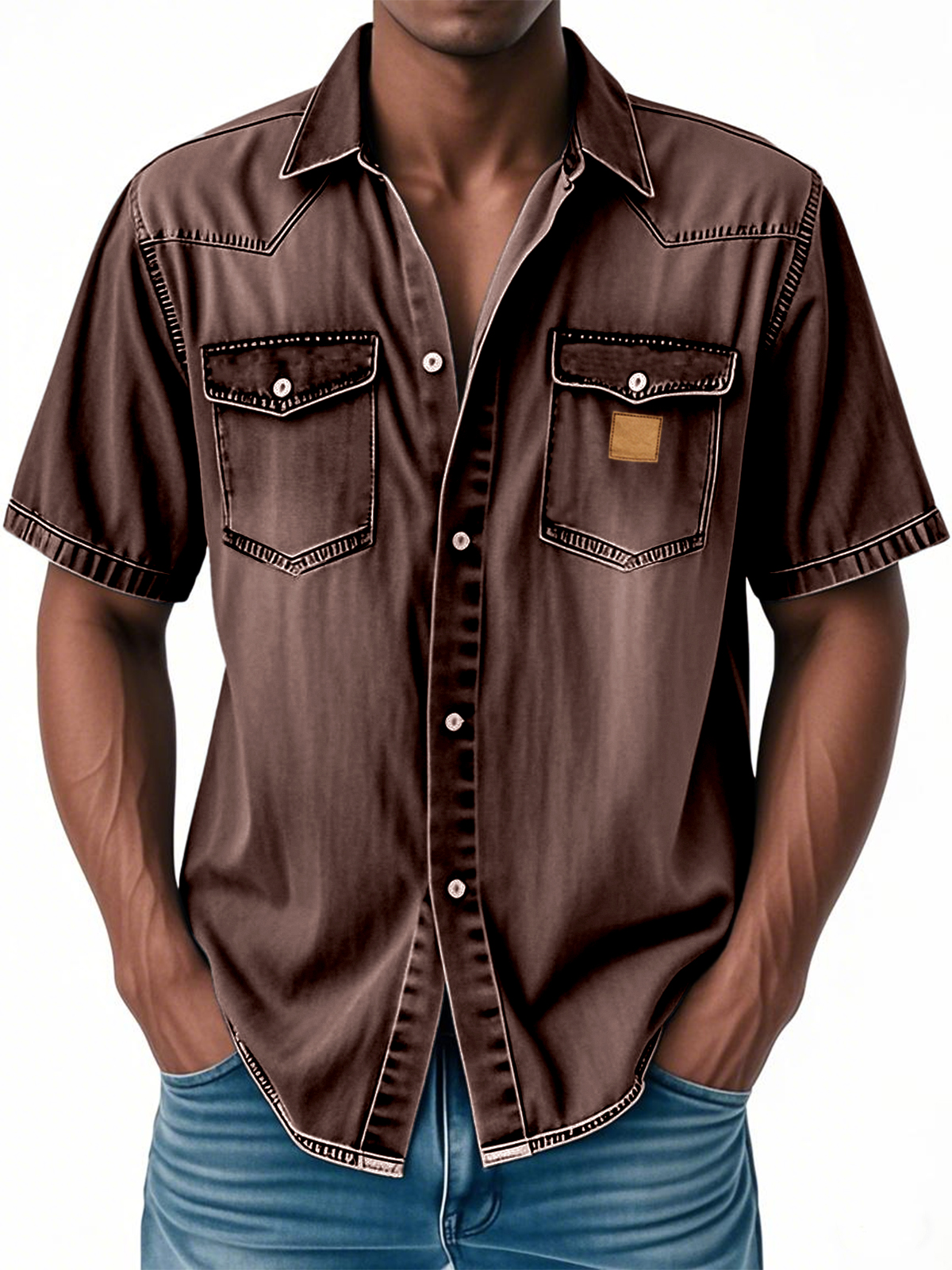 Men's Retro Western Embroidered Multi-Pocket Button Casual Short Sleeve Shirt
