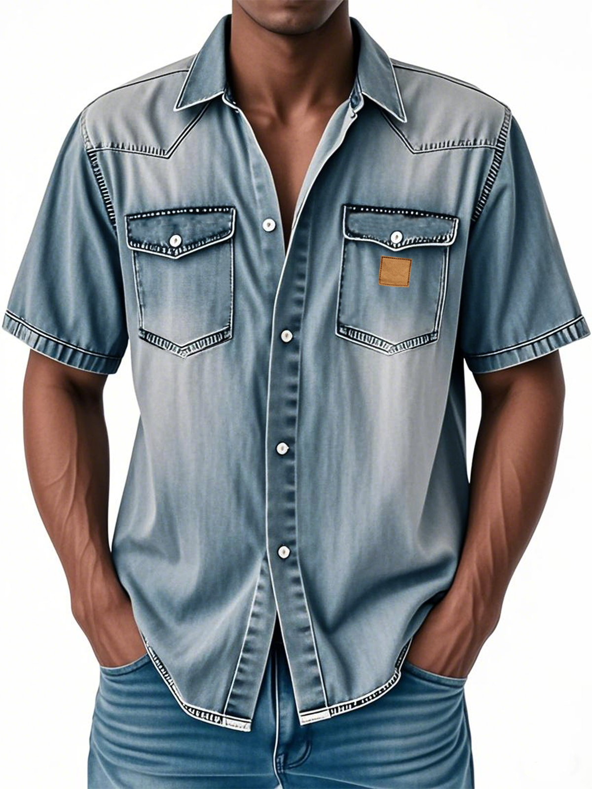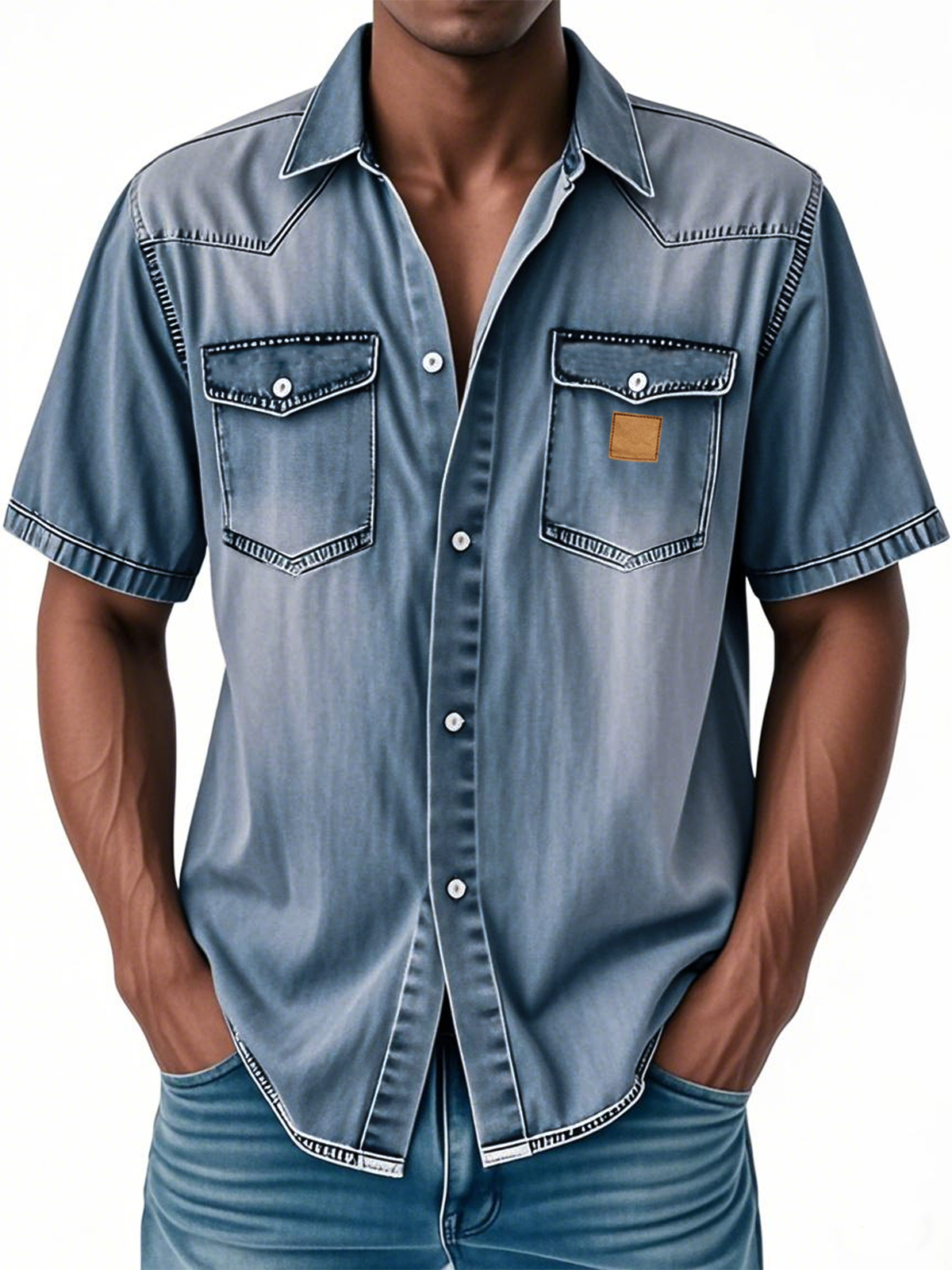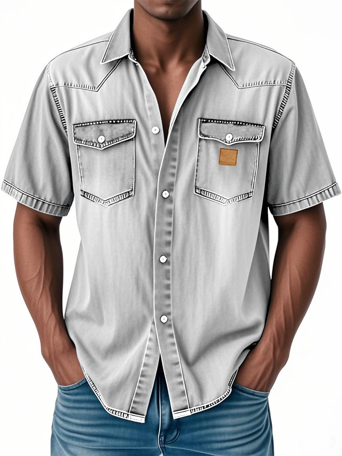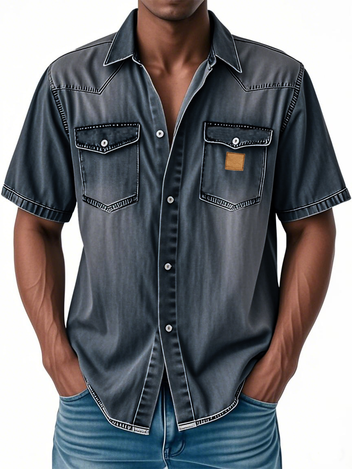 Men's Retro Western Embroidered Multi-Pocket Button Casual Short Sleeve Shirt