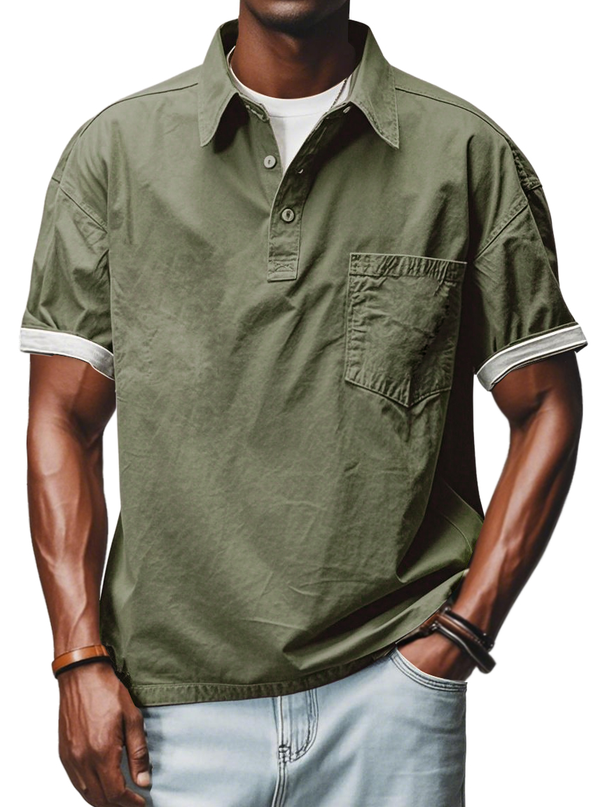 Men's Retro Workwear Pocket Short-sleeved Polo Shirt