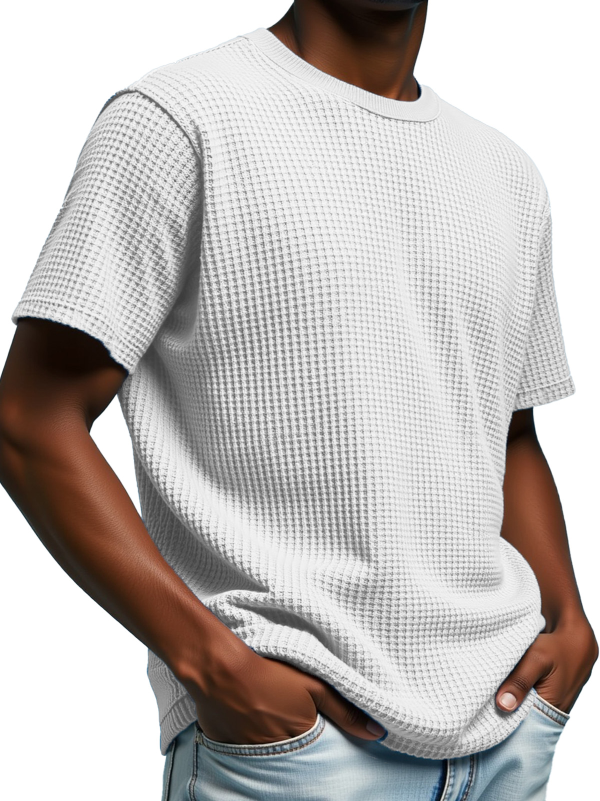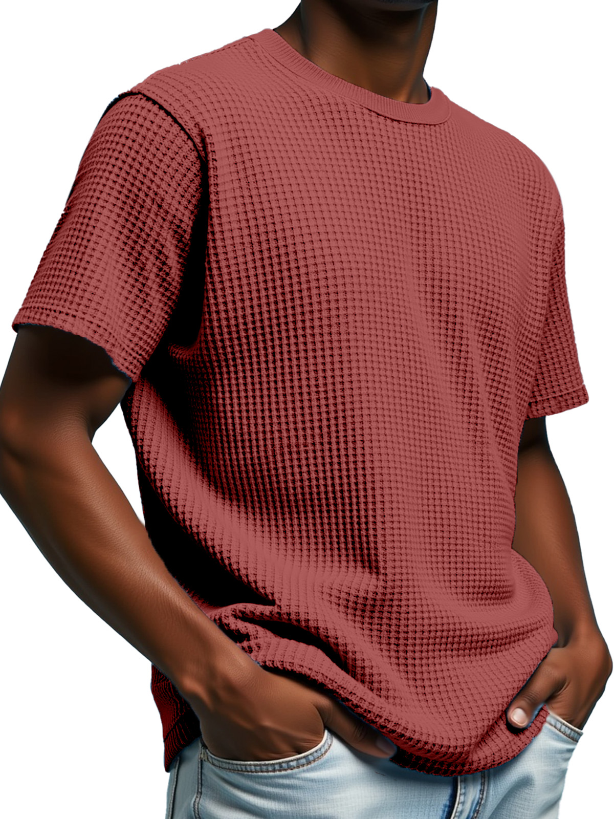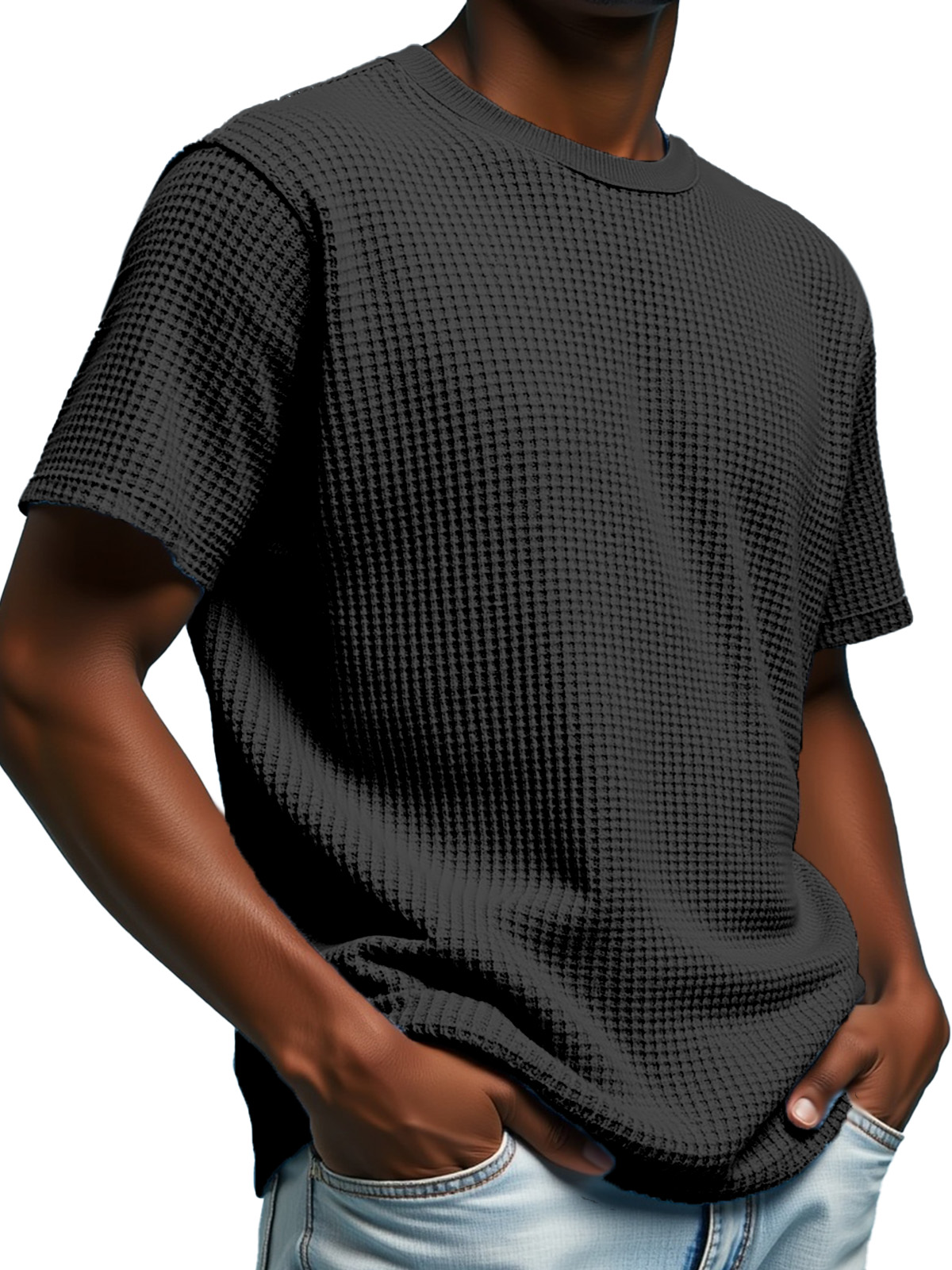 Men's Simple Solid Color Waffle Texture Short-sleeved Round Neck T-shirt