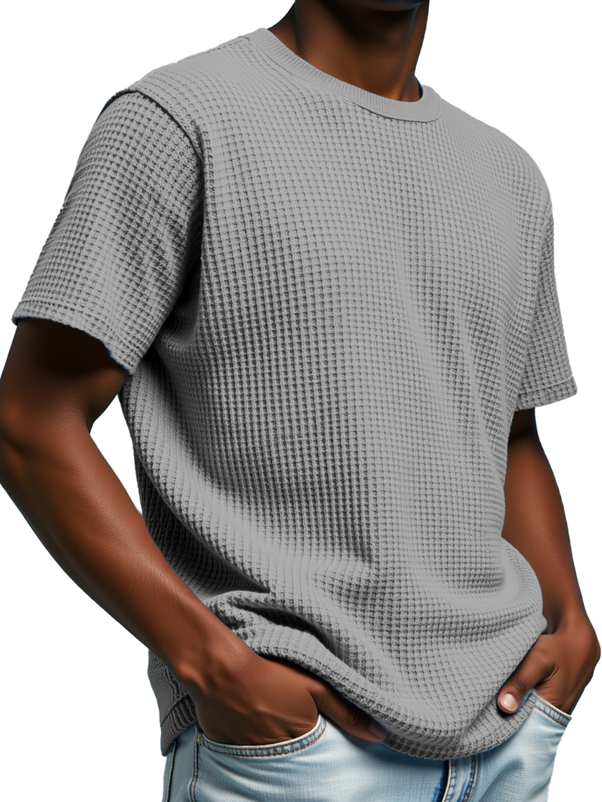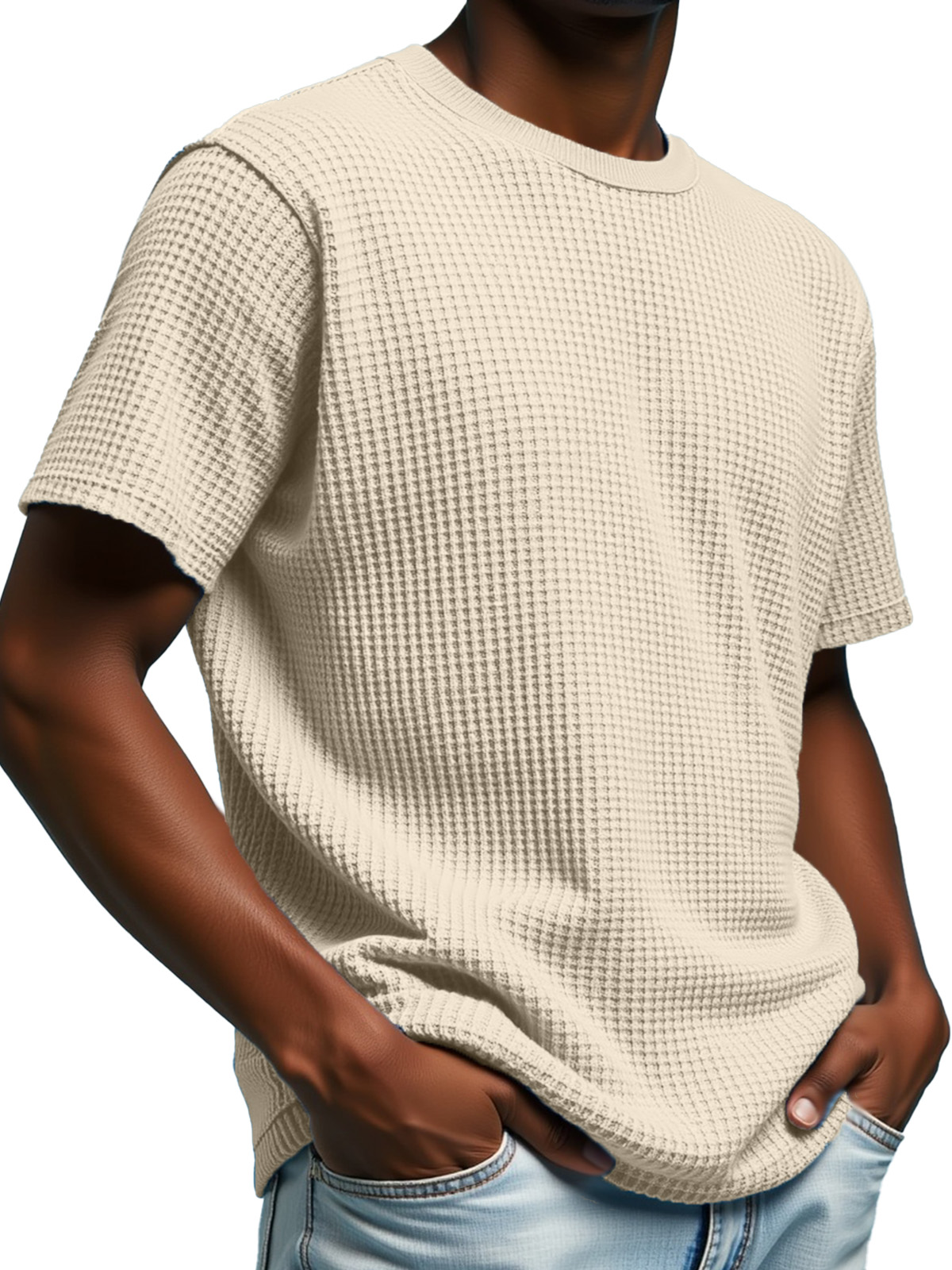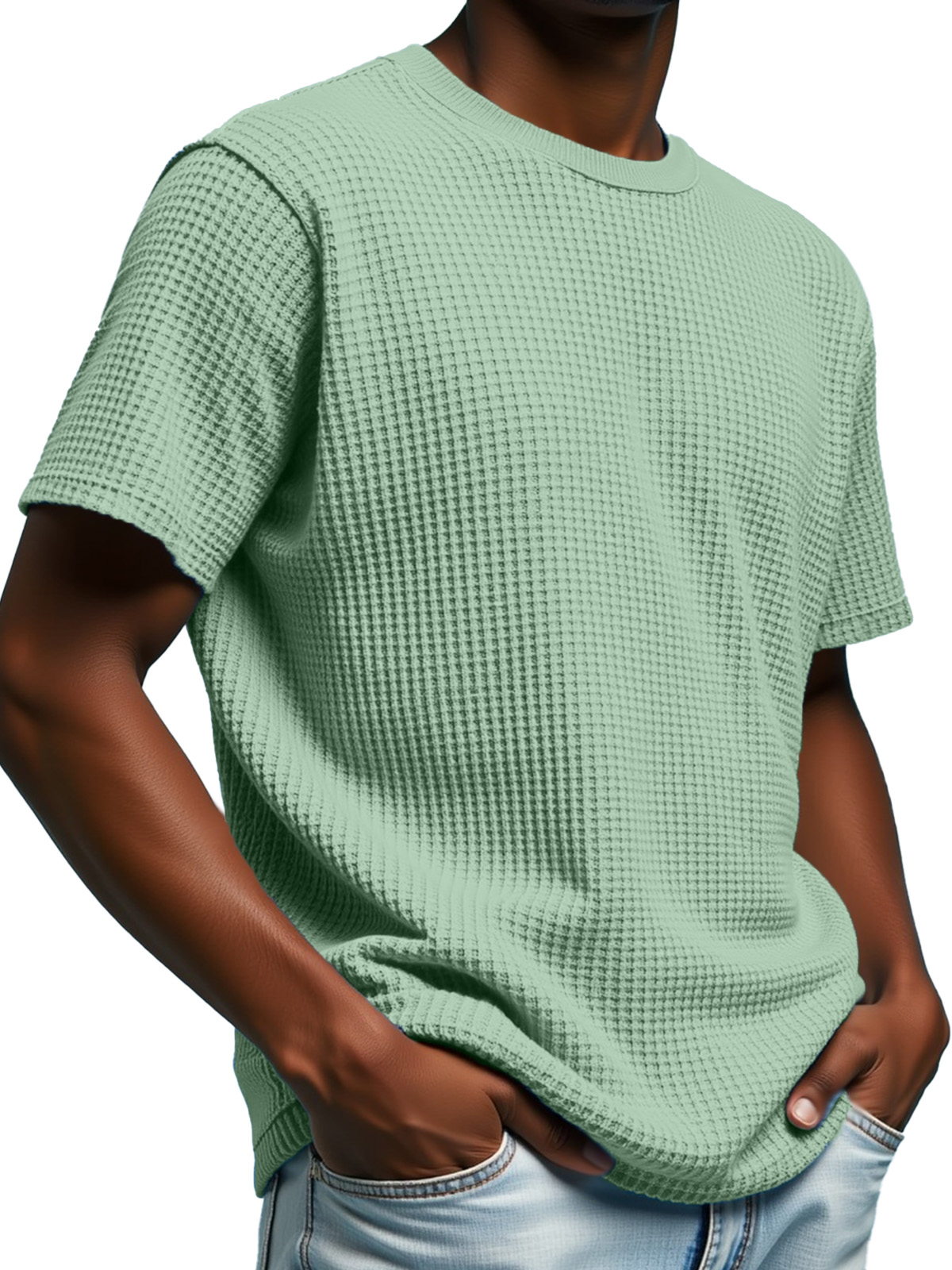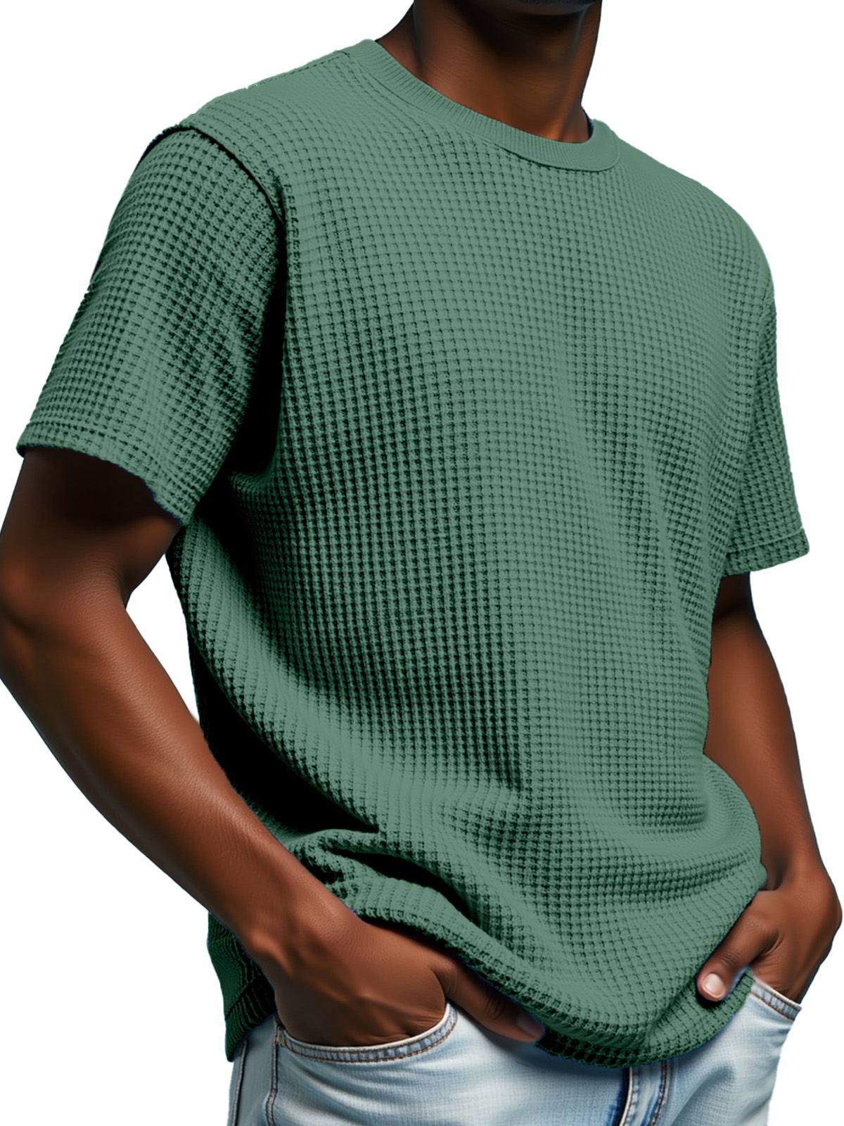 Men's Simple Solid Color Waffle Texture Short-sleeved Round Neck T-shirt
