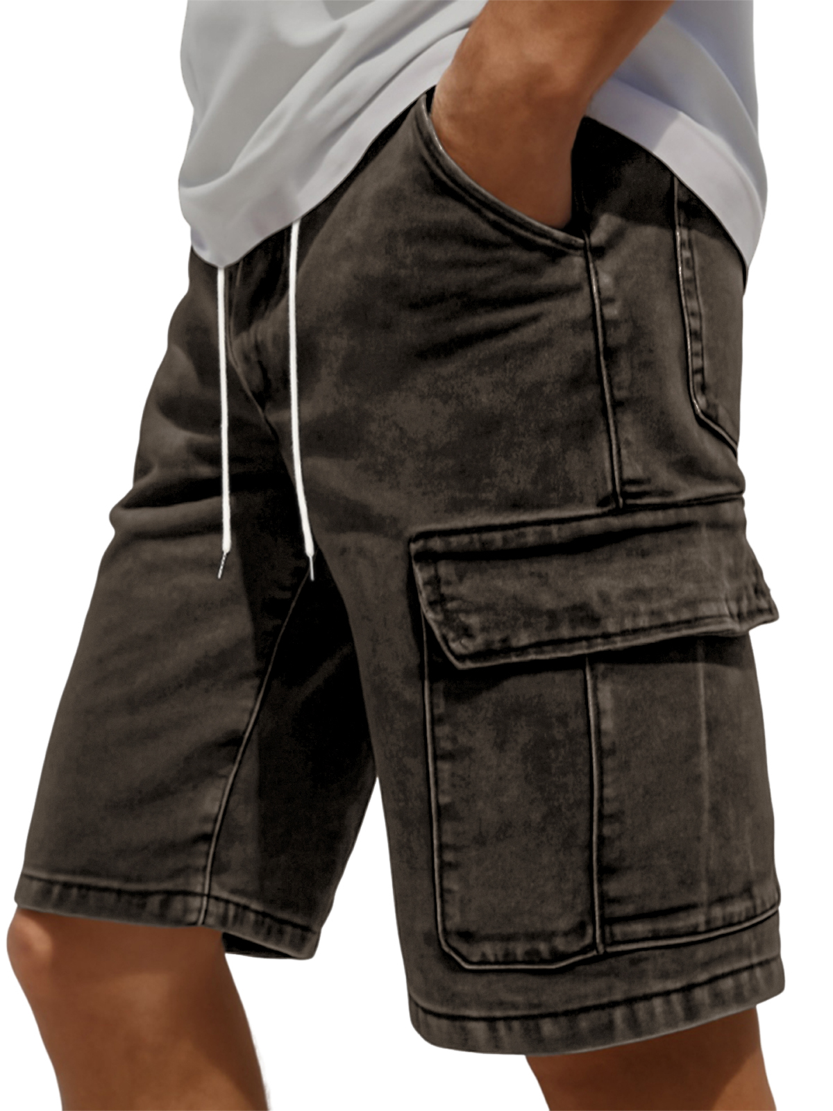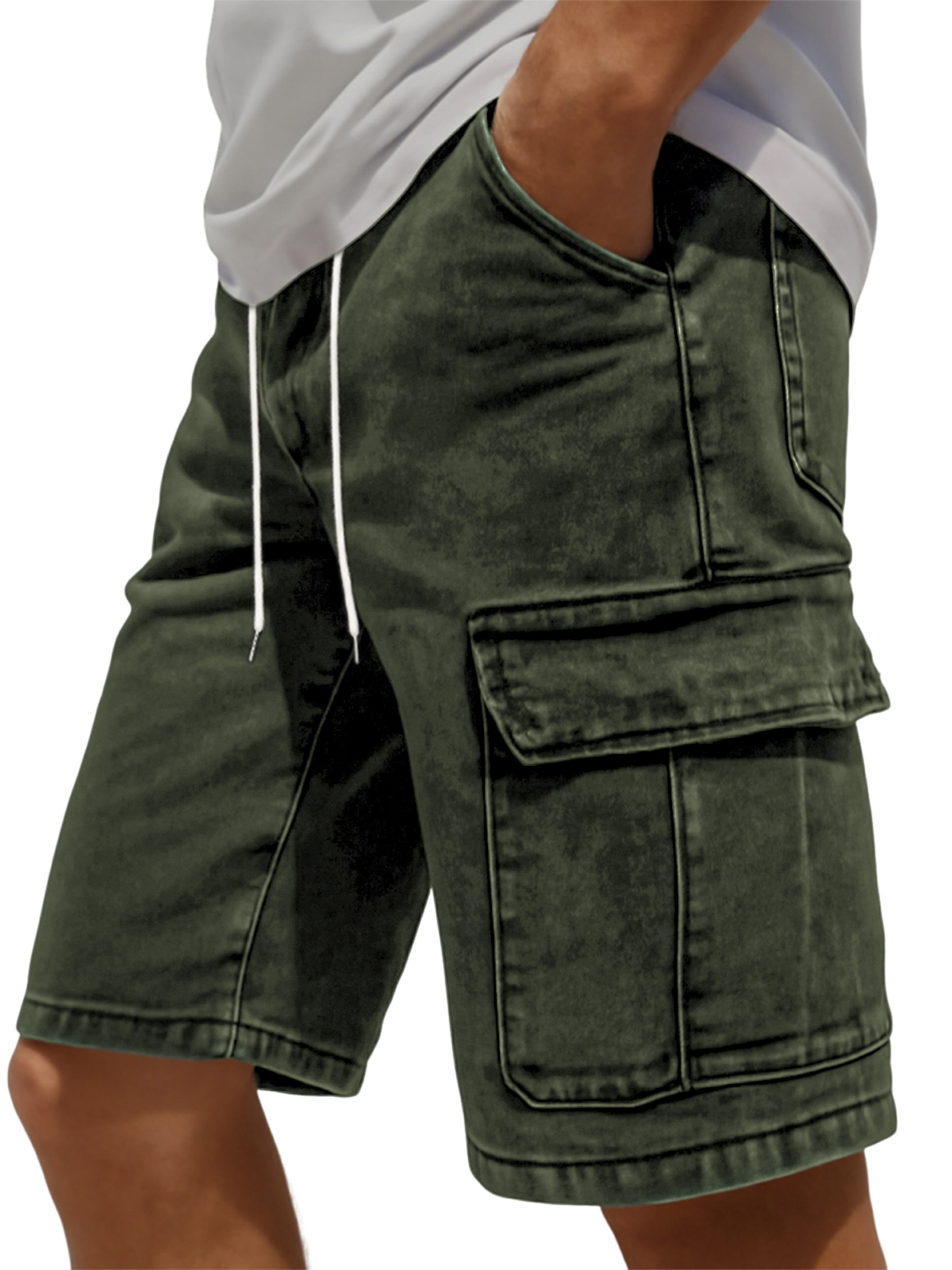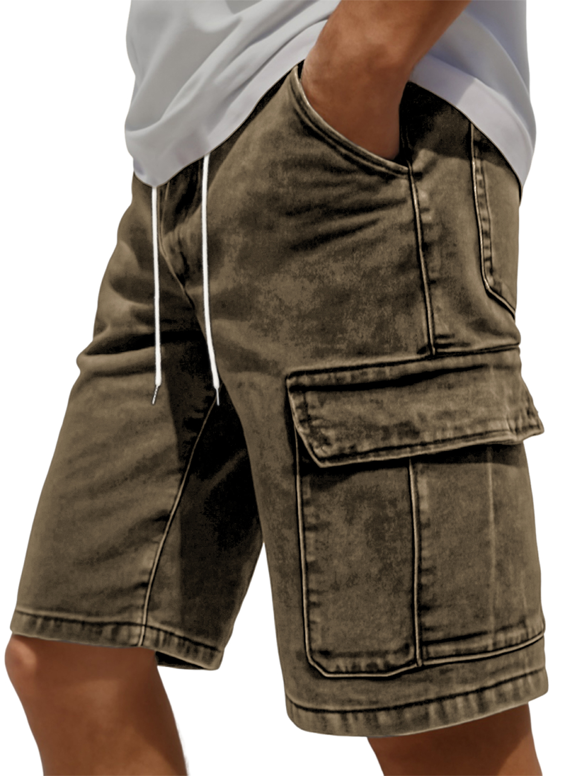 Men's Stylish Retro Cargo Shorts with Multiple Pockets and Lace-up Casual Shorts